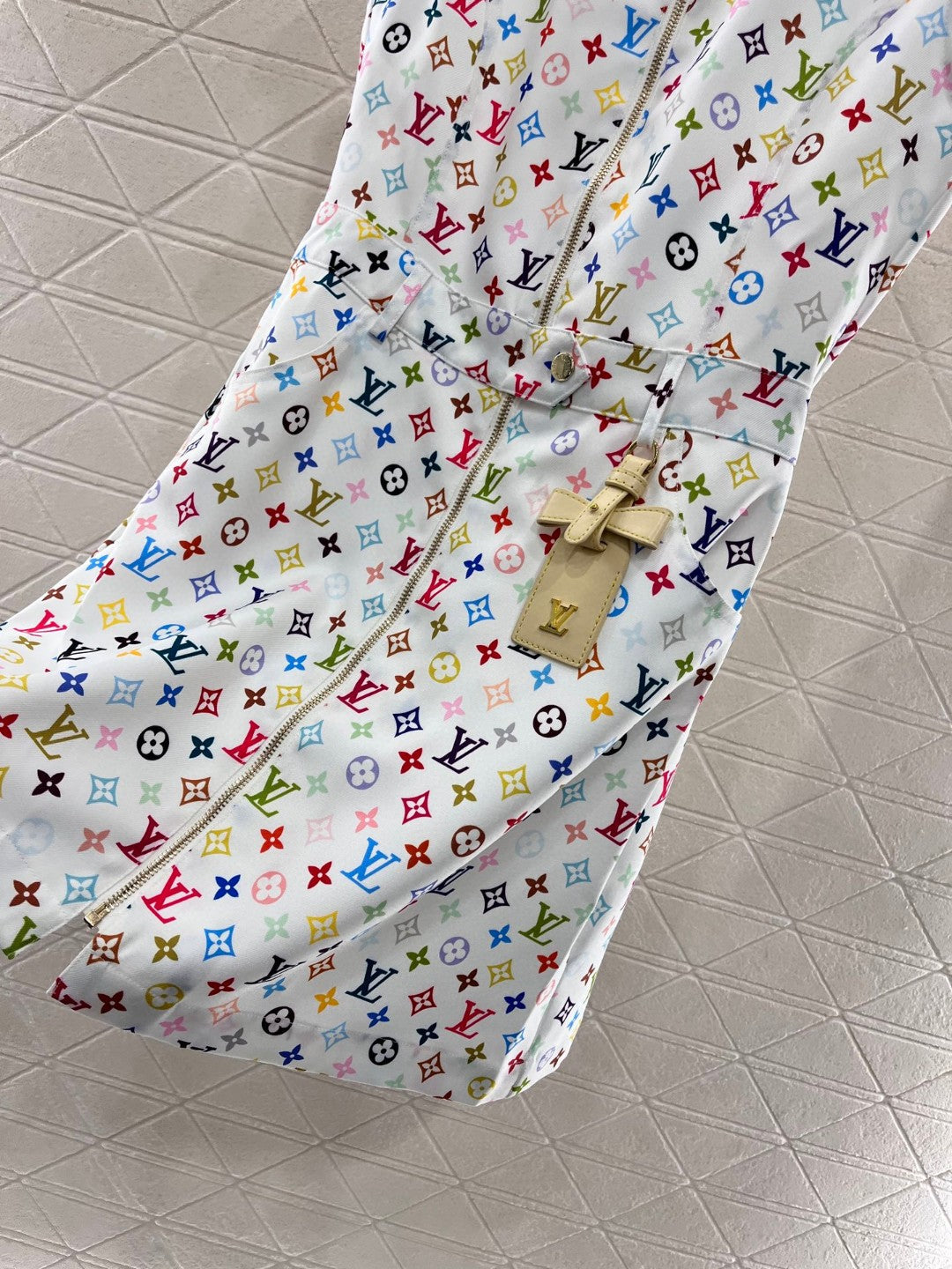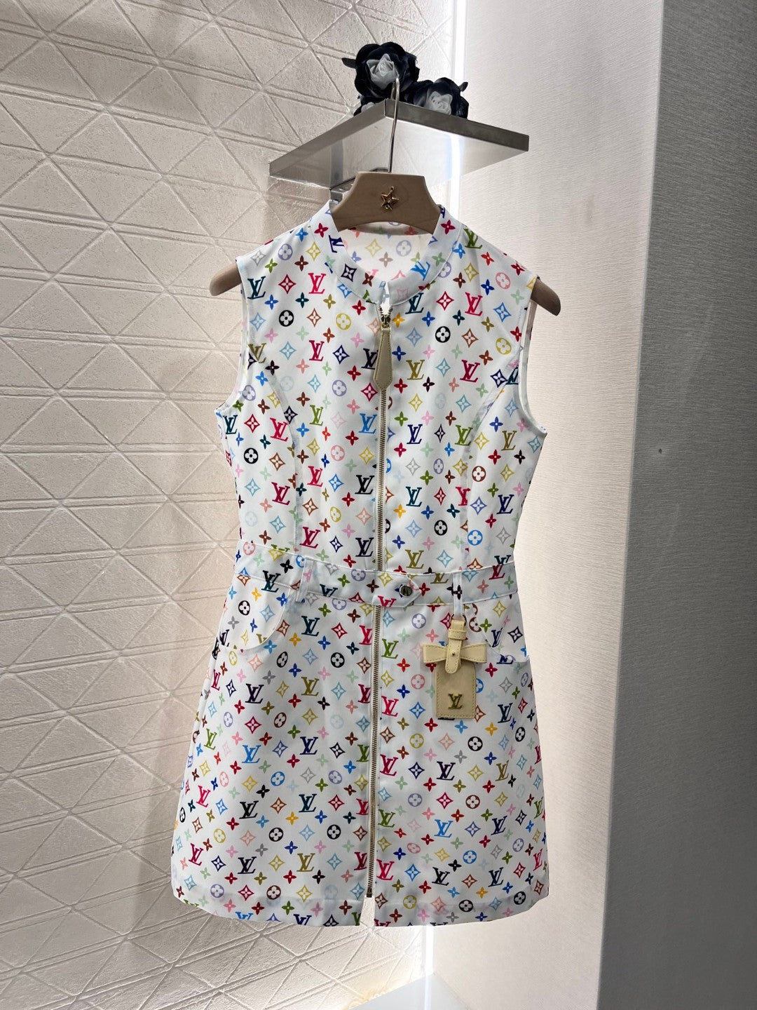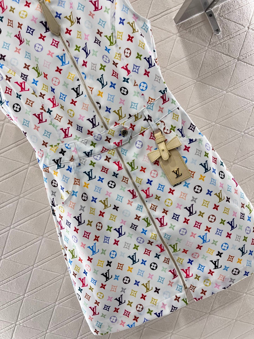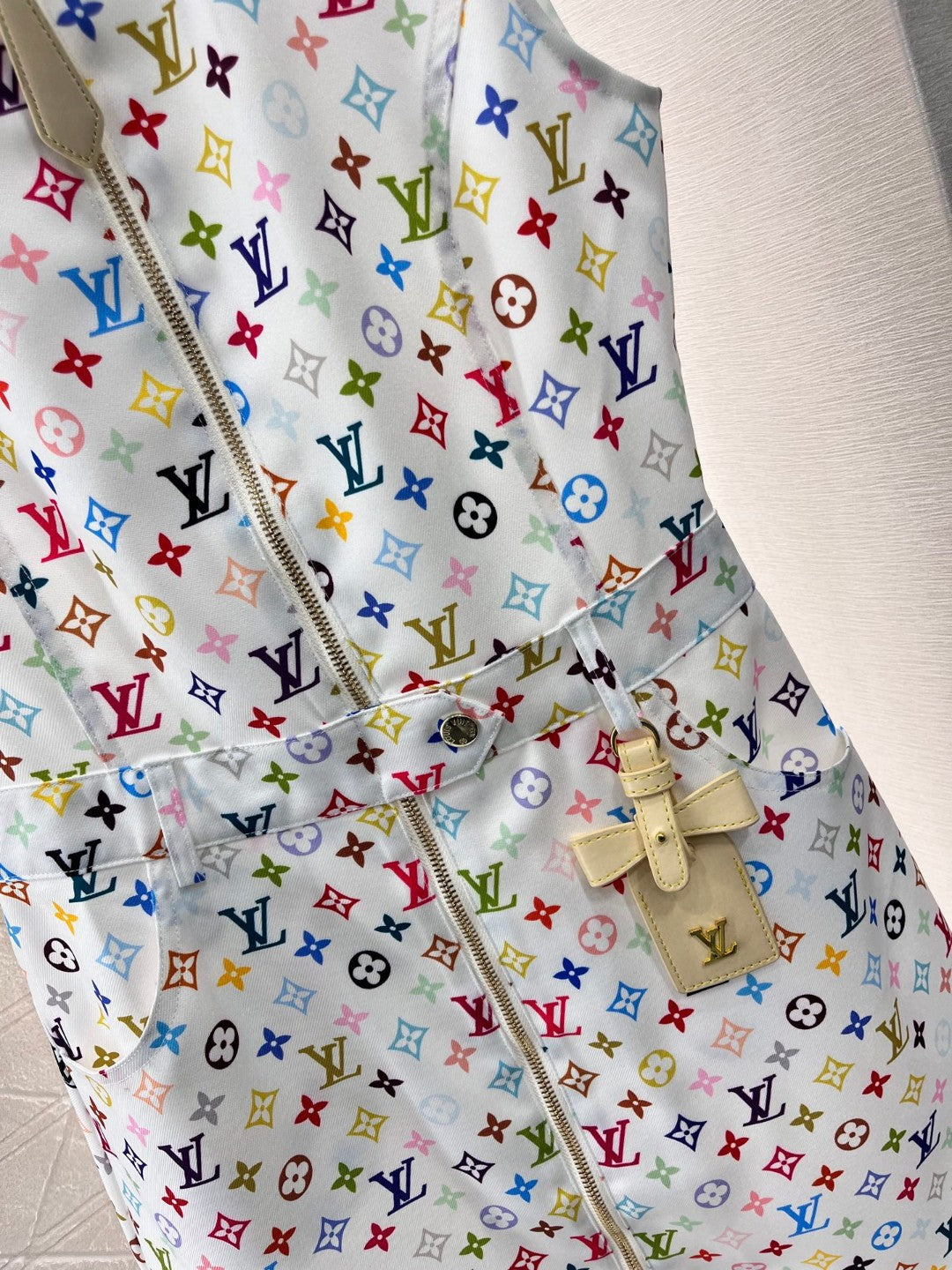 LV ZIP FRONT MONOGRAM SLEEVELESS DRESS IN MULTICOLOR COTTON