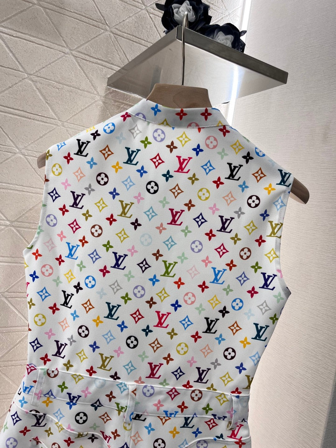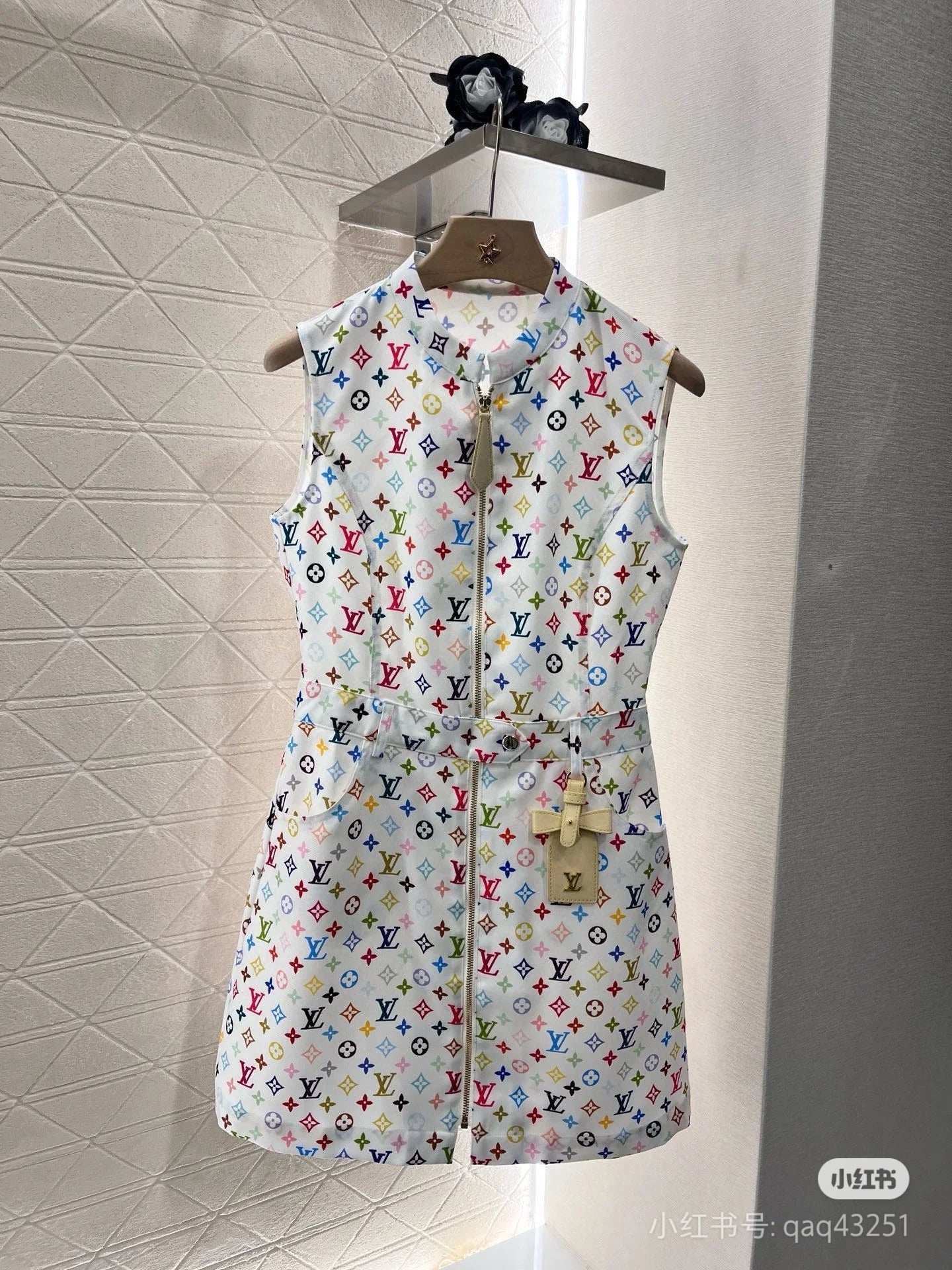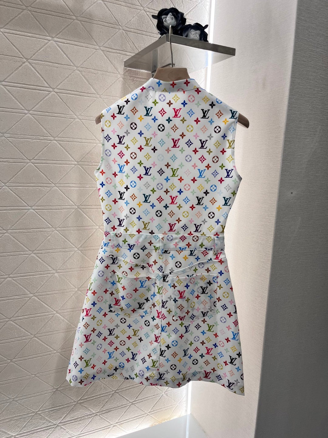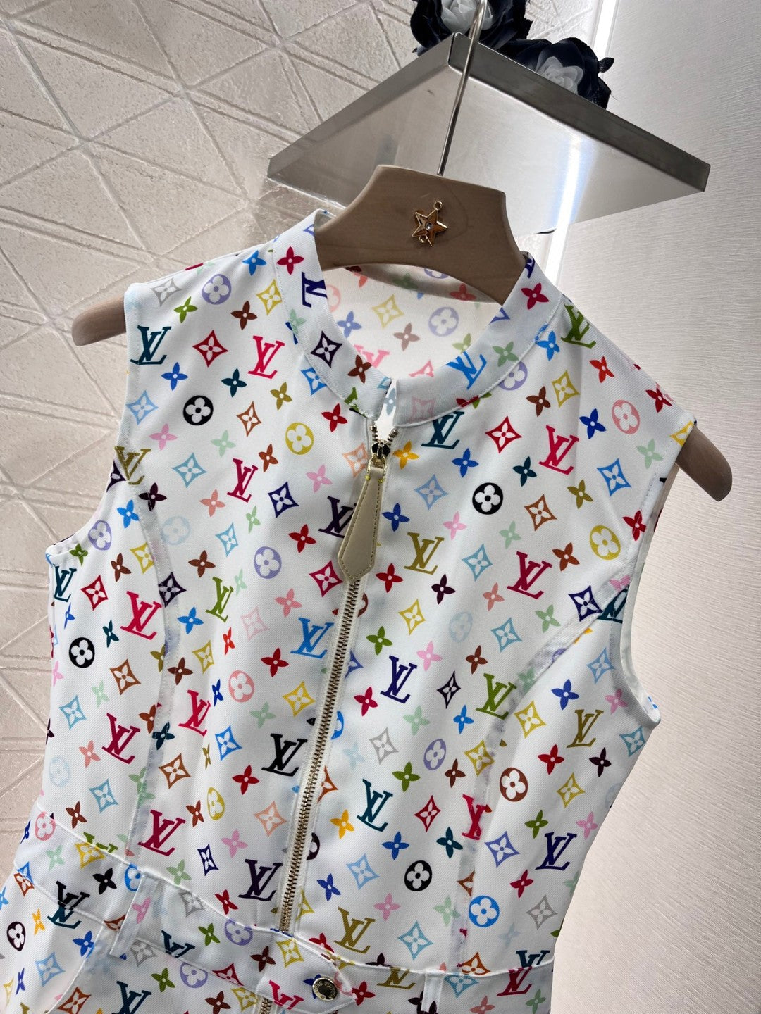 LV ZIP FRONT MONOGRAM SLEEVELESS DRESS IN MULTICOLOR COTTON