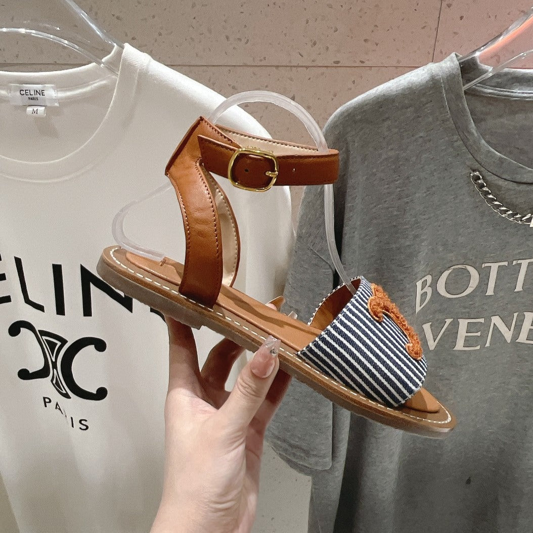 LYMPIA SANDAL IN TRIOMPHE MACCRAMÉ COTTON & CALFSKIN BRONZE BROWN/NAVY