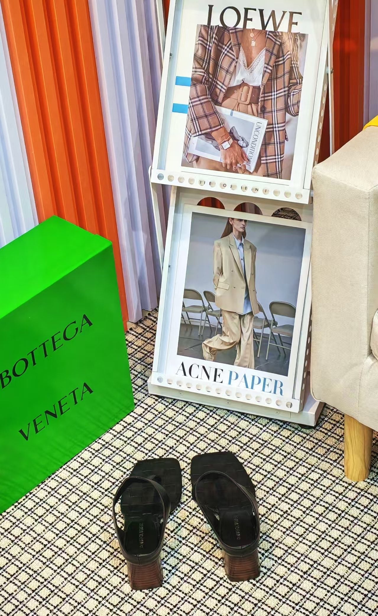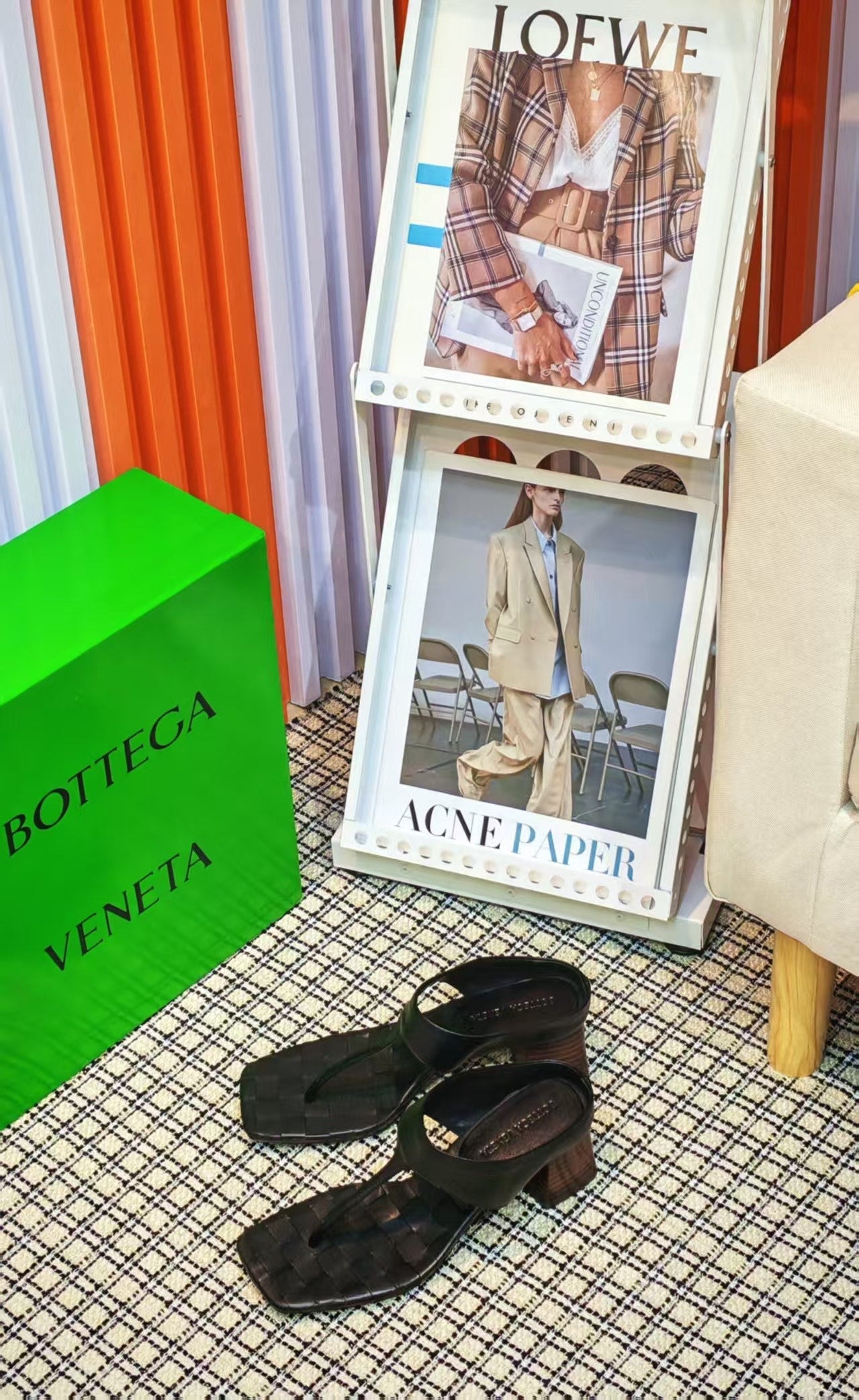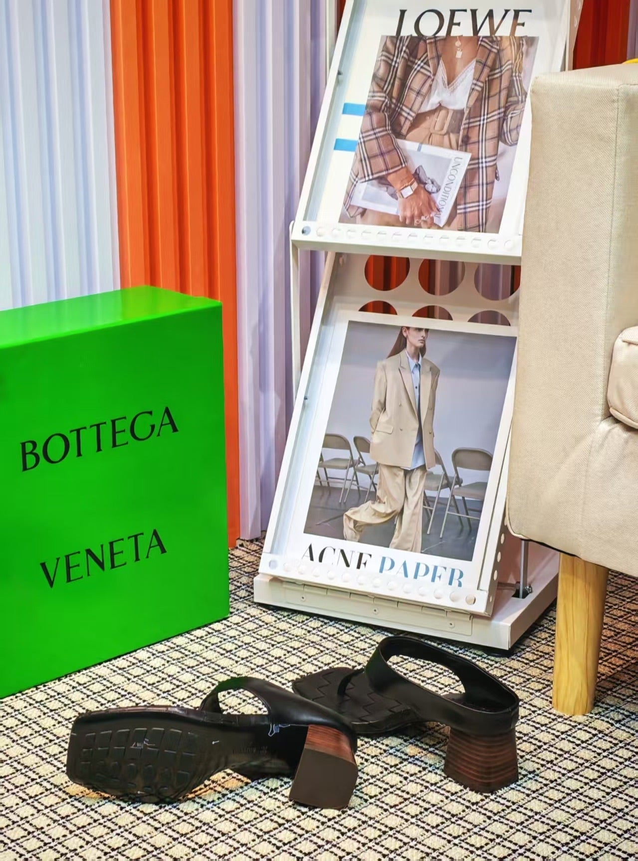 MARELLA THONG IN BLACK CALFSKIN WITH SIGNATURE INTRECCIATO INSOLE
