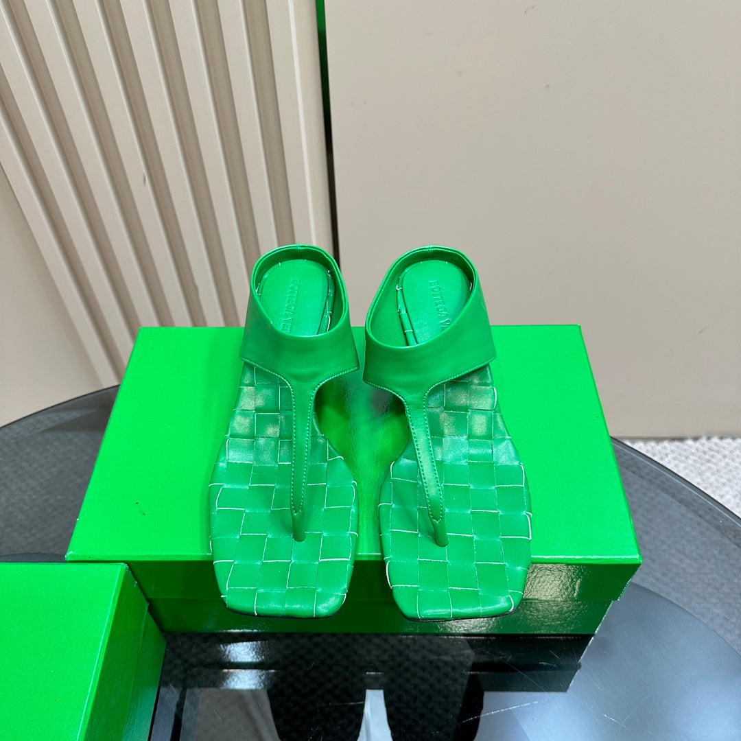 MARELLA THONG IN SHAMROCK GREEN LEATHER WITH SIGNATURE INTRECCIATO INSOLE 55 MM