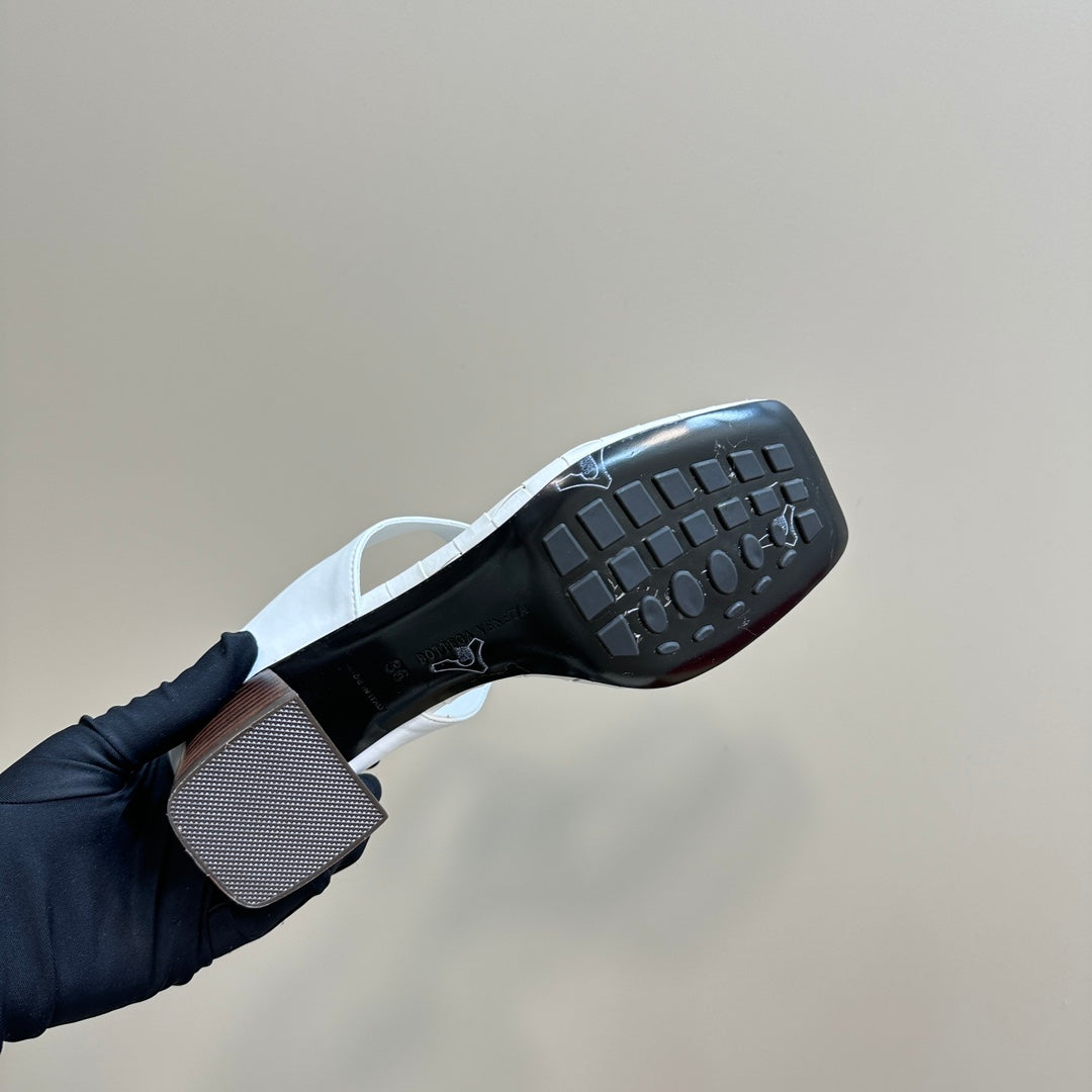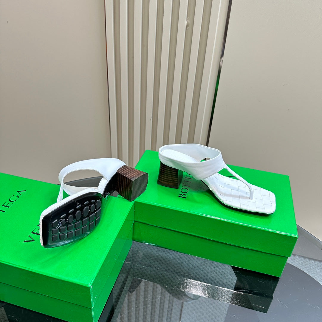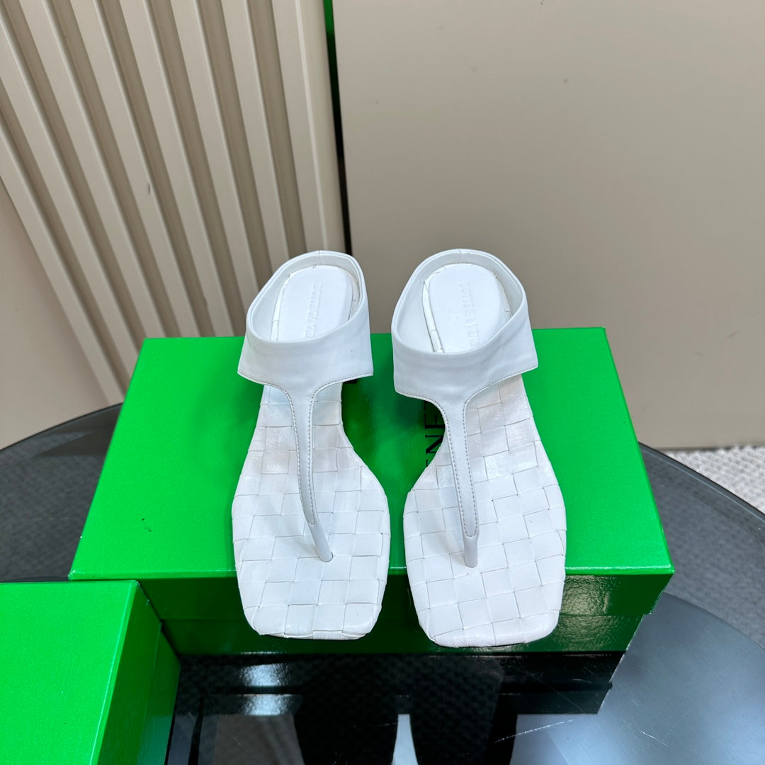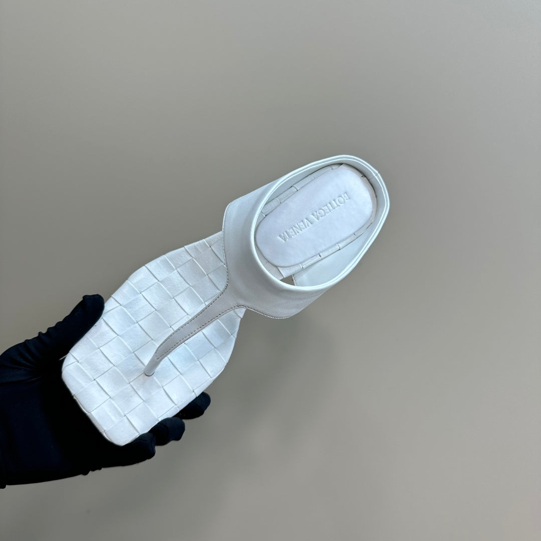 MARELLA THONG IN WHITE LEATHER WITH SIGNATURE INTRECCIATO INSOLE 55 MM