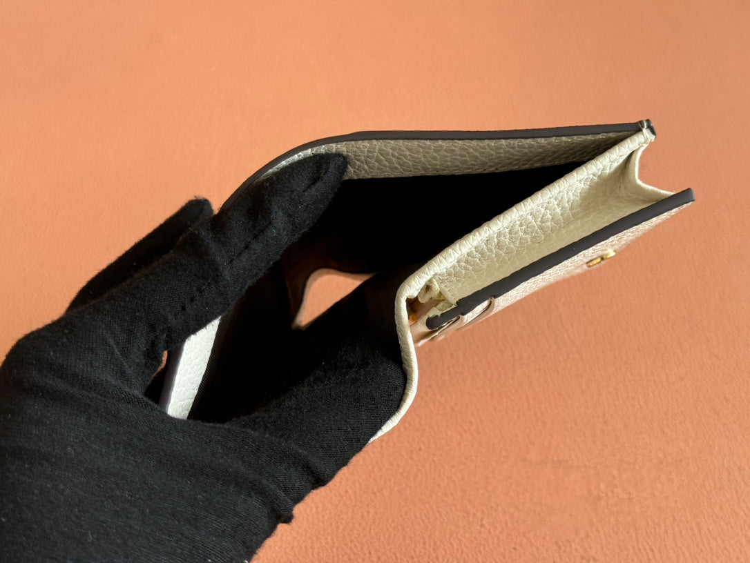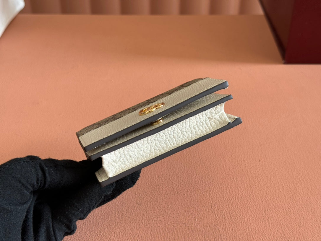 MARMONT BI-COLOUR CARD CASE WALLET 11 IN BEIGE EBONY GG CANVAS WHITE CALFSKIN