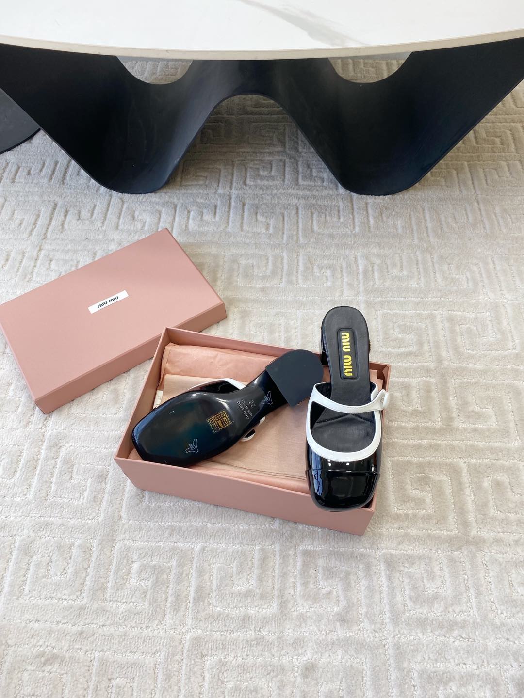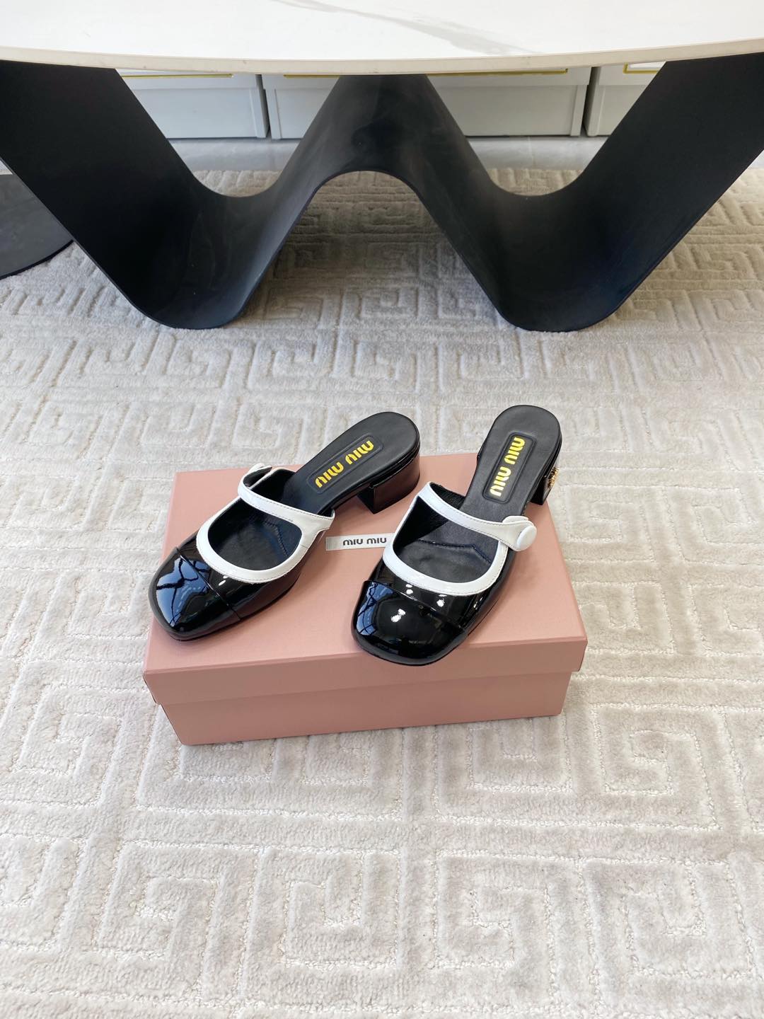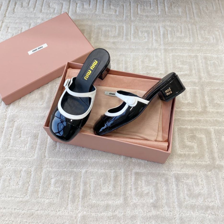 MARY JANE MULE PUMPS IN BLACK GLOSSY SHEEPSKIN
