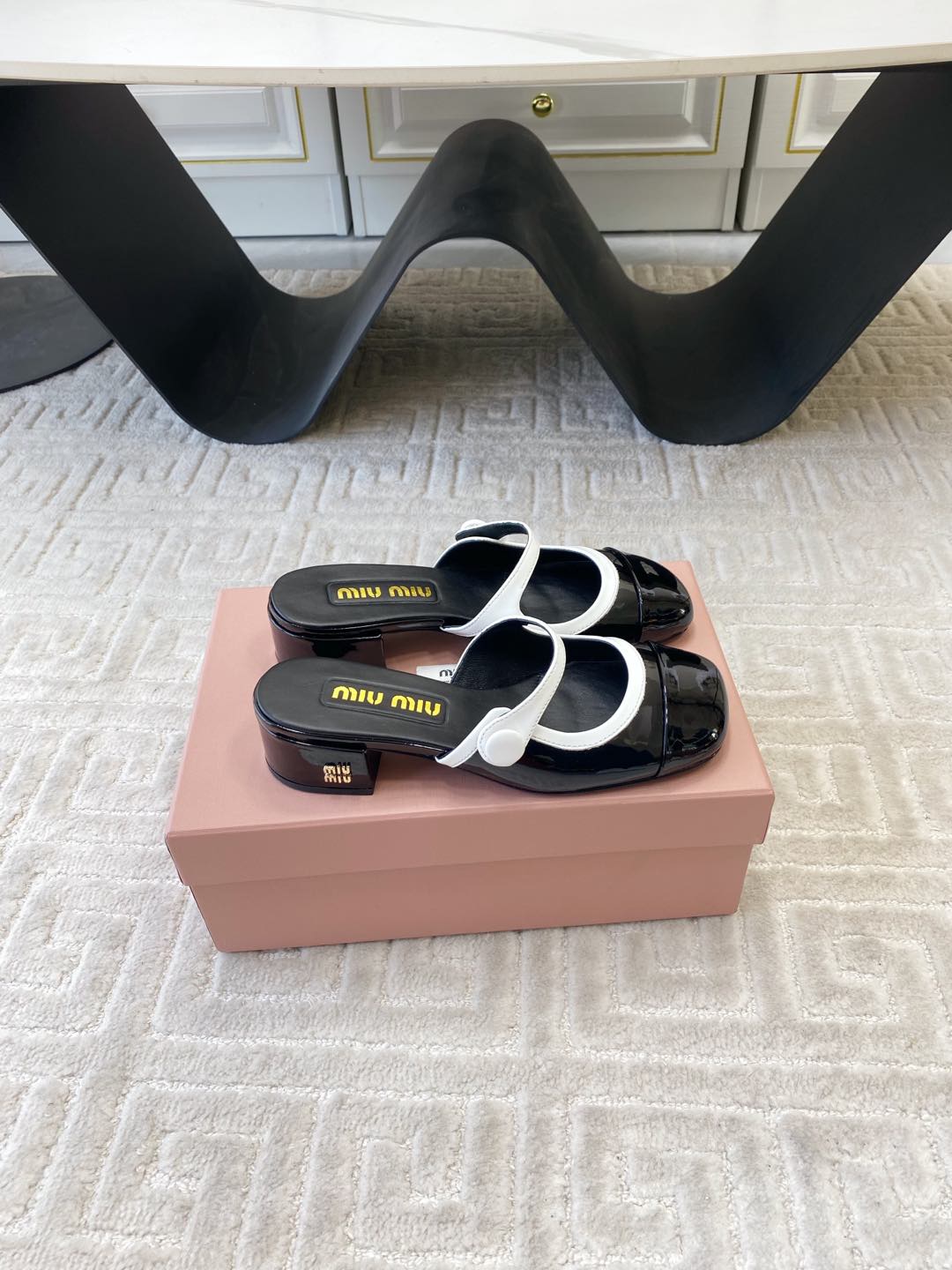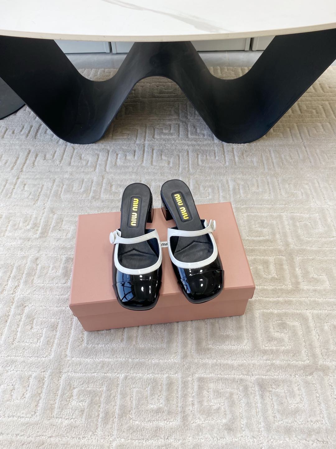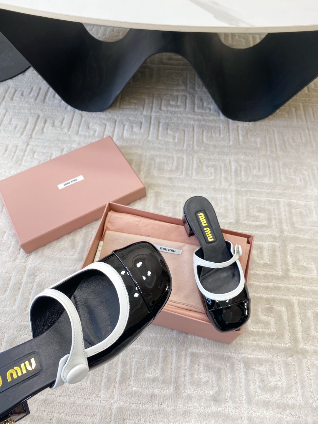 MARY JANE MULE PUMPS IN BLACK GLOSSY SHEEPSKIN