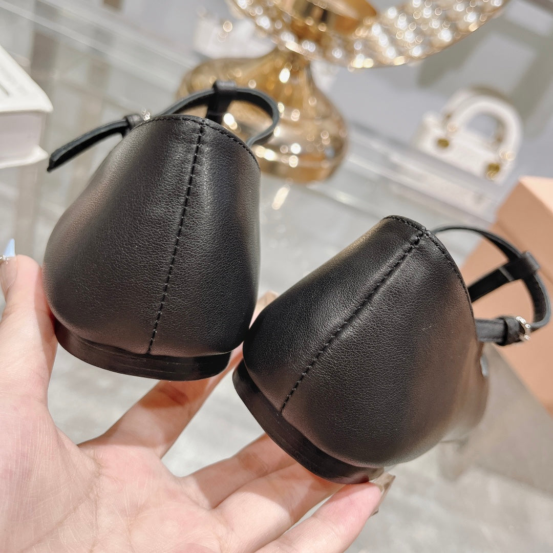 MARY JANE SANDAL BLACK WITH T - STRAP SHEEPSKIN