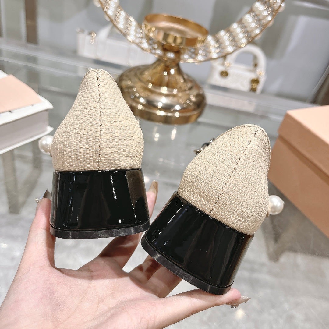 MARY JANE SANDAL CAP TOE BRIGHT CREAM SHEEPSKIN - MID HEEL
