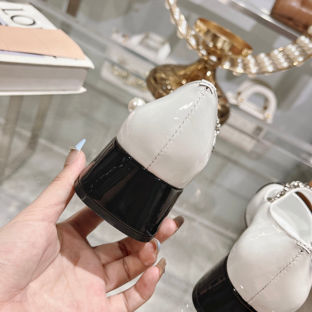 MARY JANE SANDAL CAP TOE WHITE SHEEPSKIN - MID HEEL