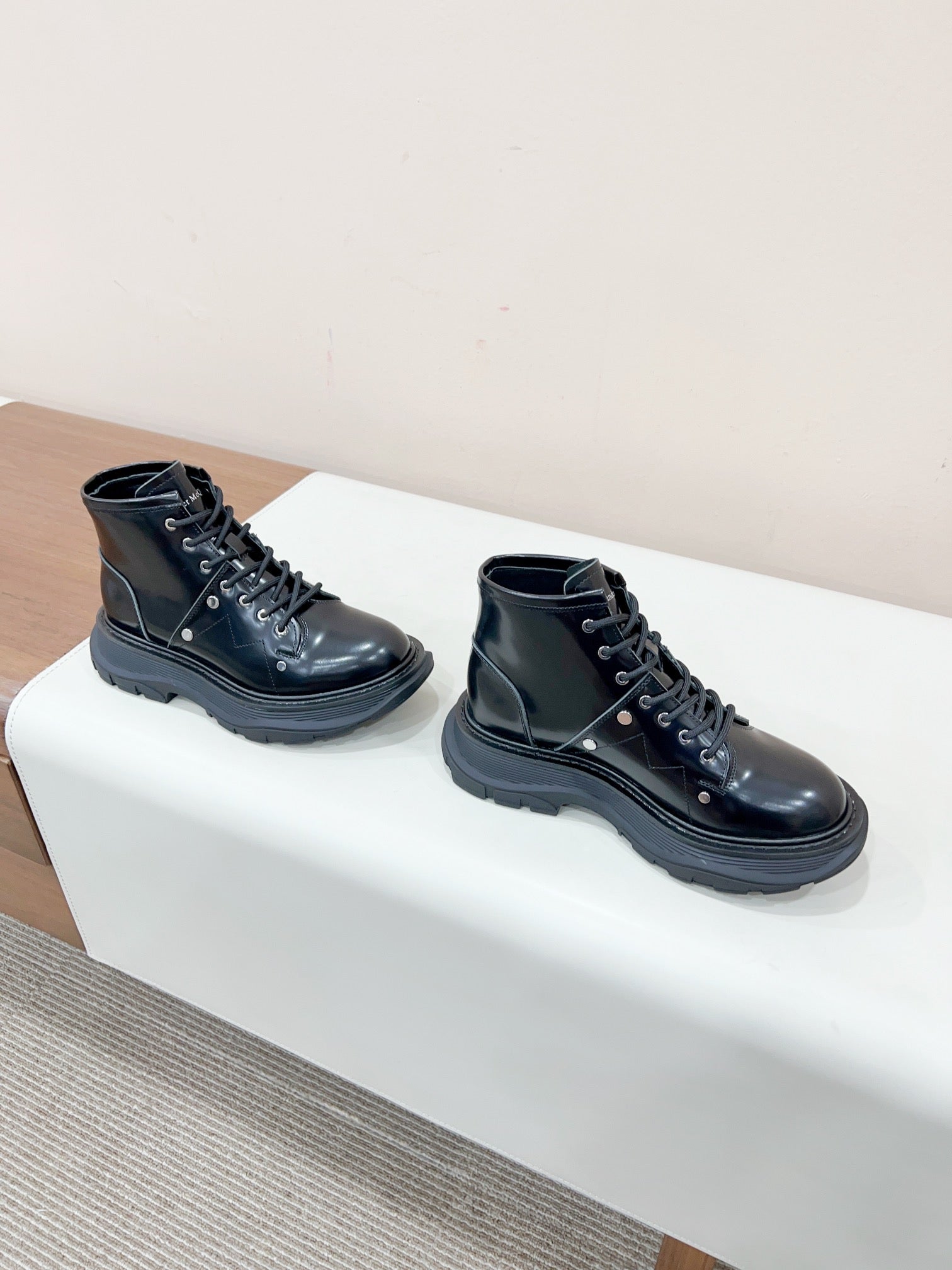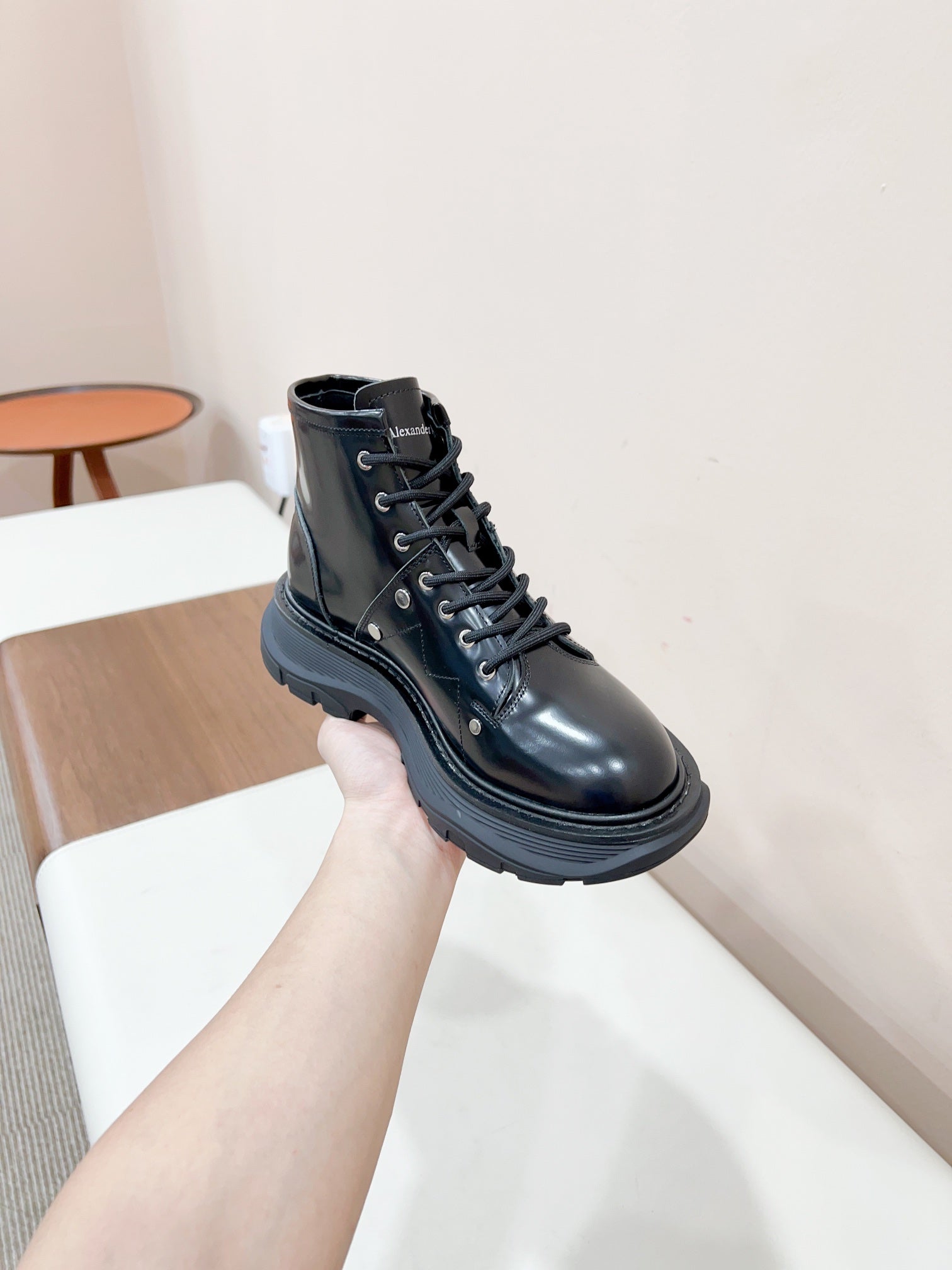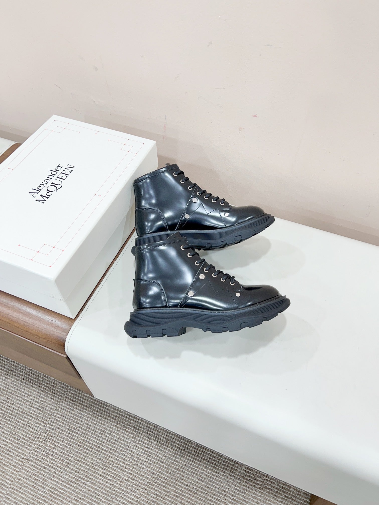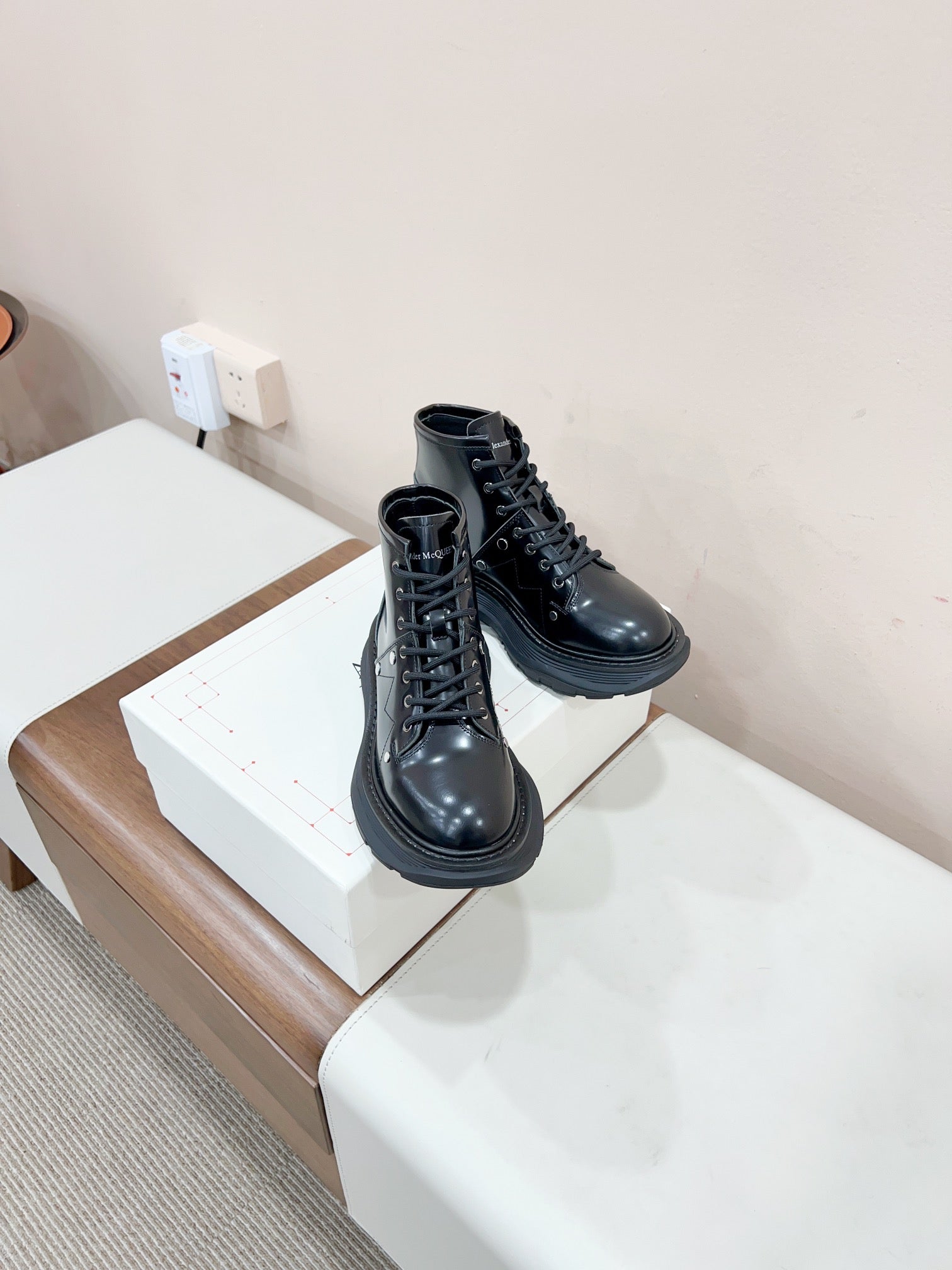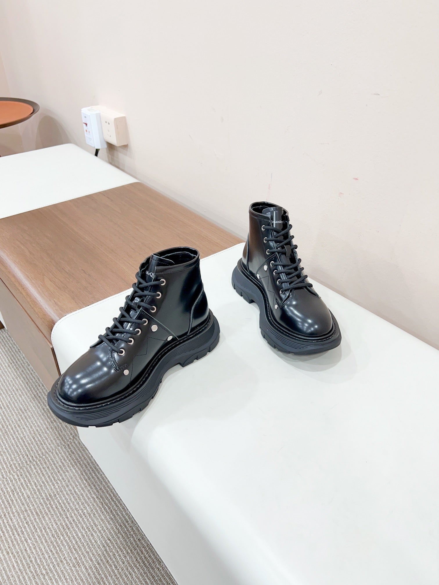 MCQUEEN LEATHER ANKLE BOOT IN BLACK LAMBSKIN