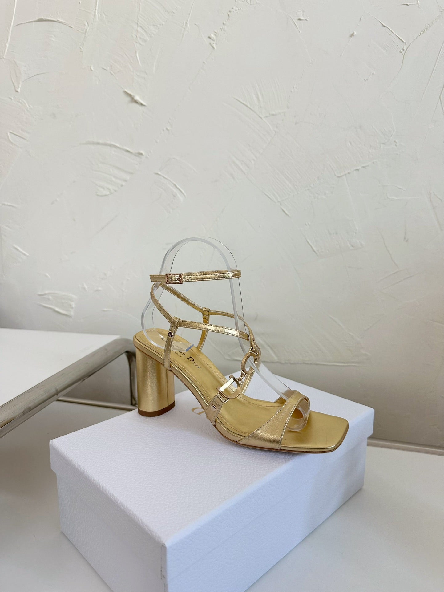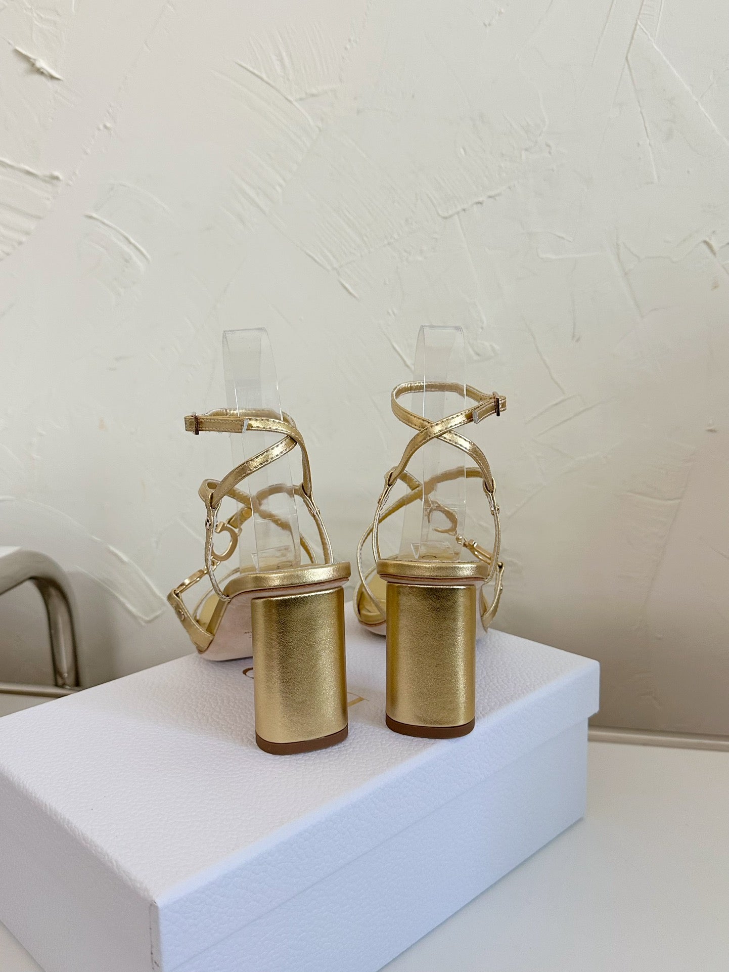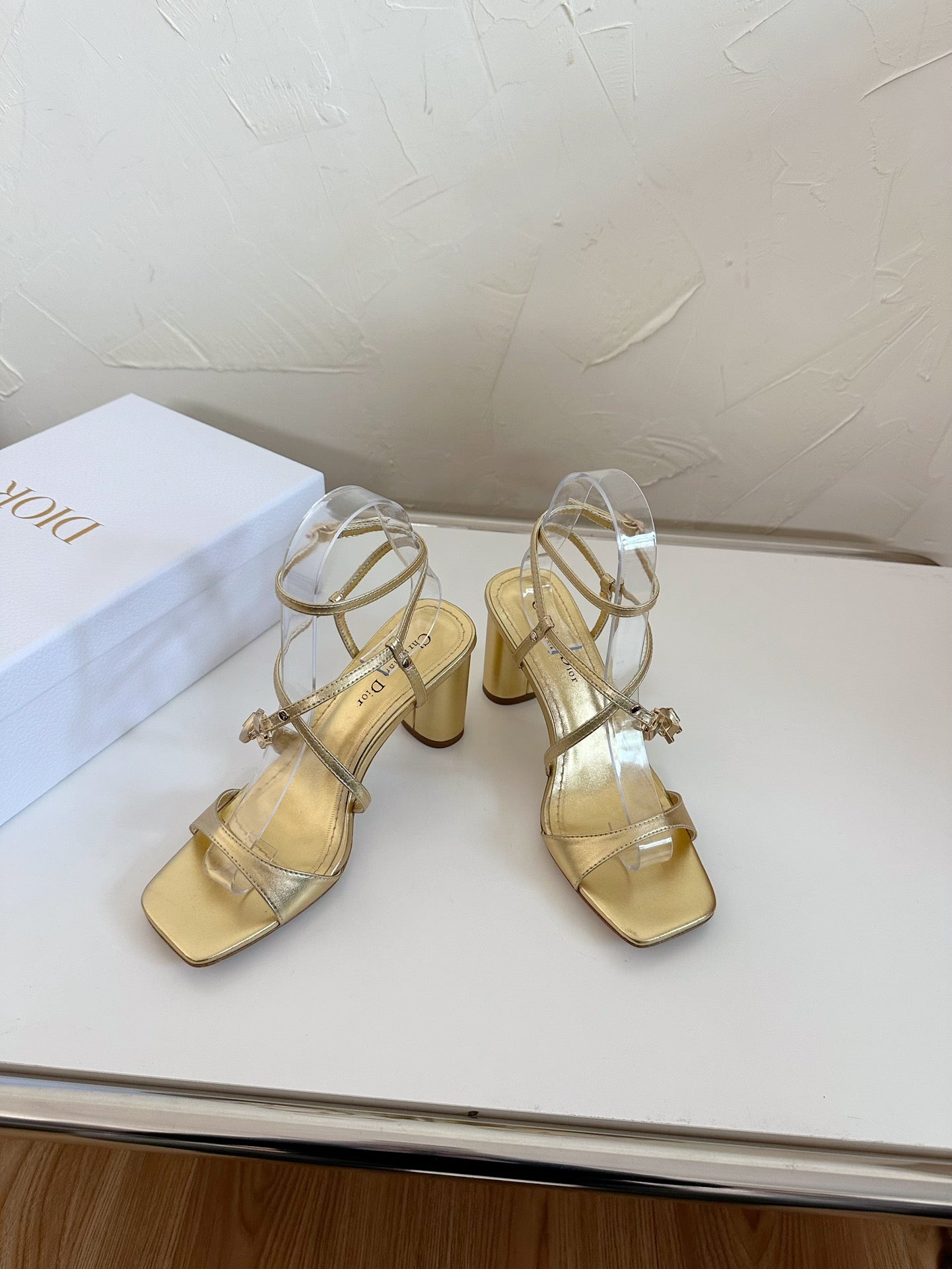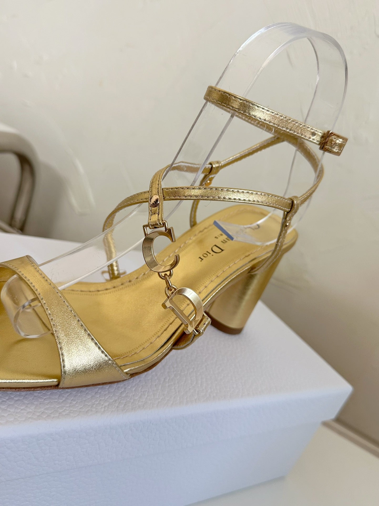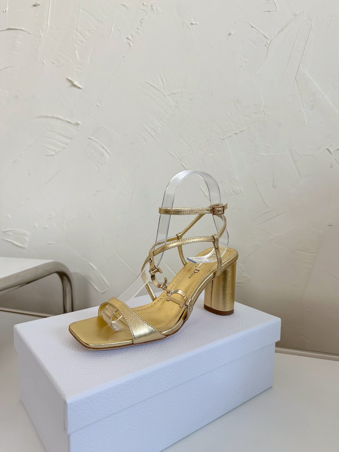 MEDIUM SQUARE HEEL SANDAL IN GOLD LAMBSKIN
