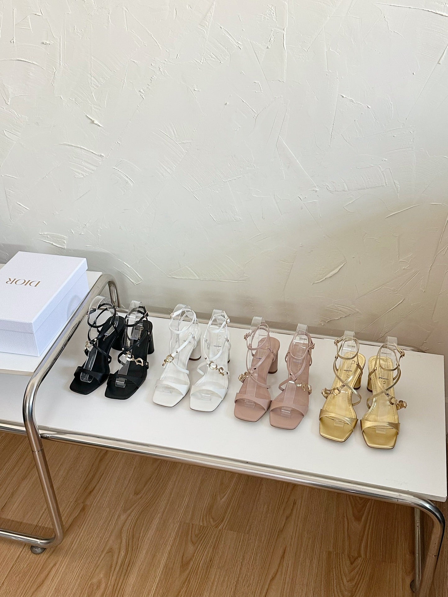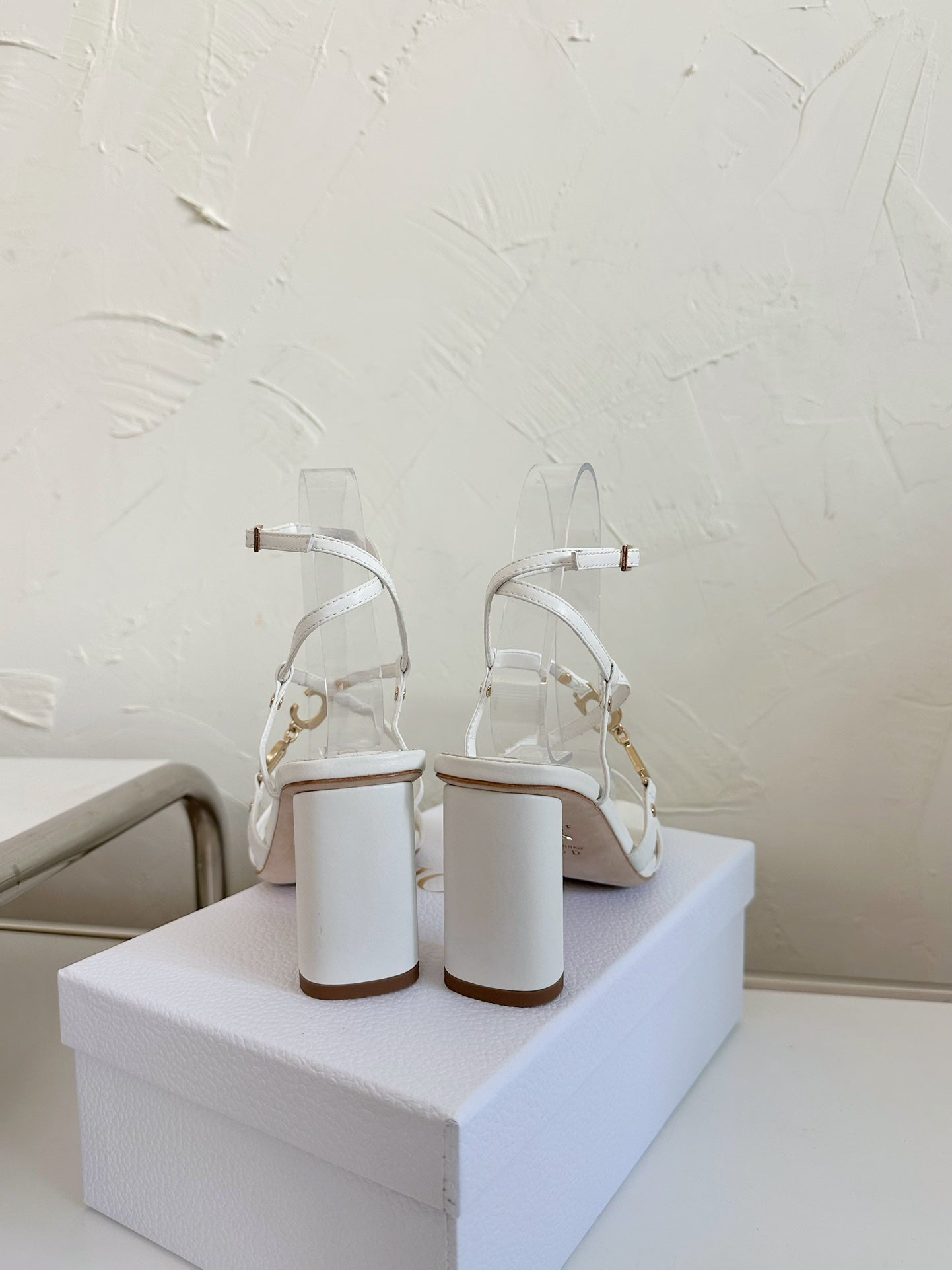 MEDIUM SQUARE HEEL SANDAL IN WHITE LAMBSKIN