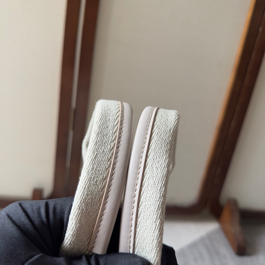 MEDIUM WOODY TOTE BAG 37 IN BEIGE LINEN CANVAS WEBBING LOGO EMBROIDER COTTON WHITE CALFSKIN