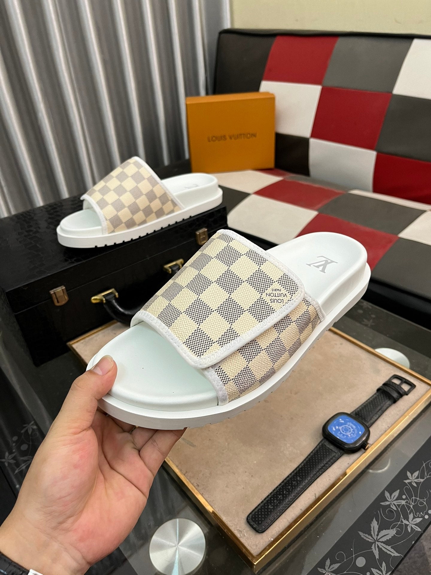 MIAMI MULE IN BEIGE CREAM DAMIER JACQUARD