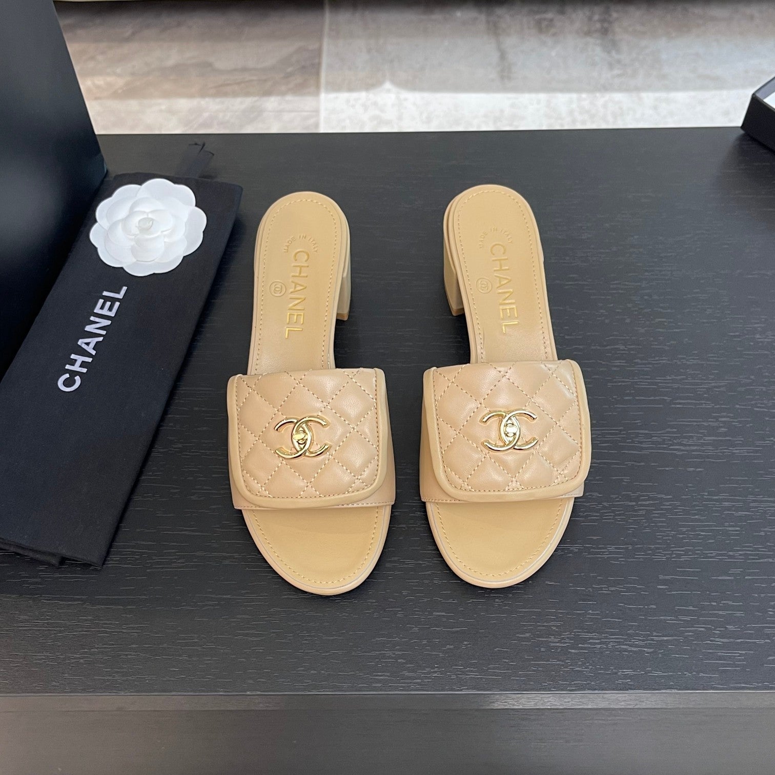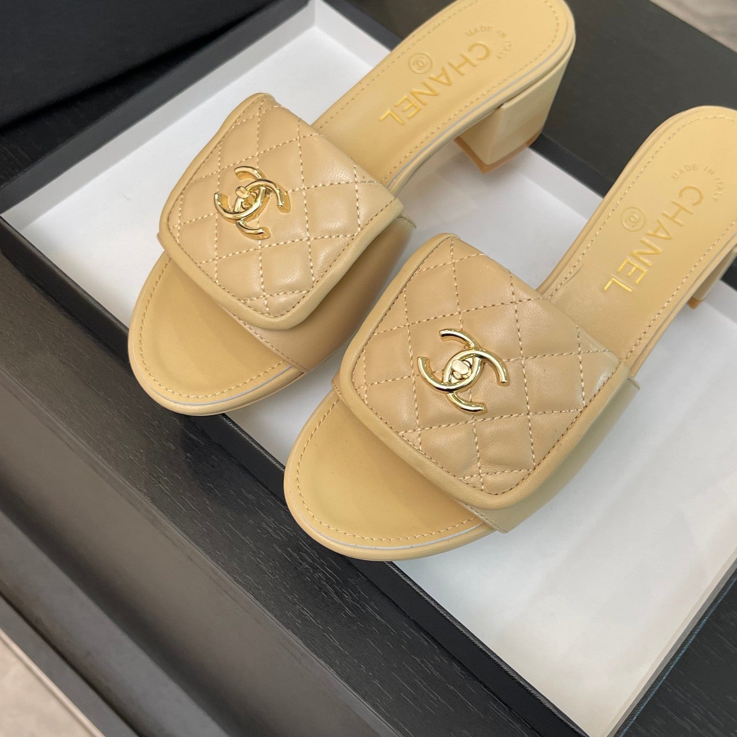 MID-HEEL 5 CM MULE IN TUSCAN BEIGE LAMBSKIN