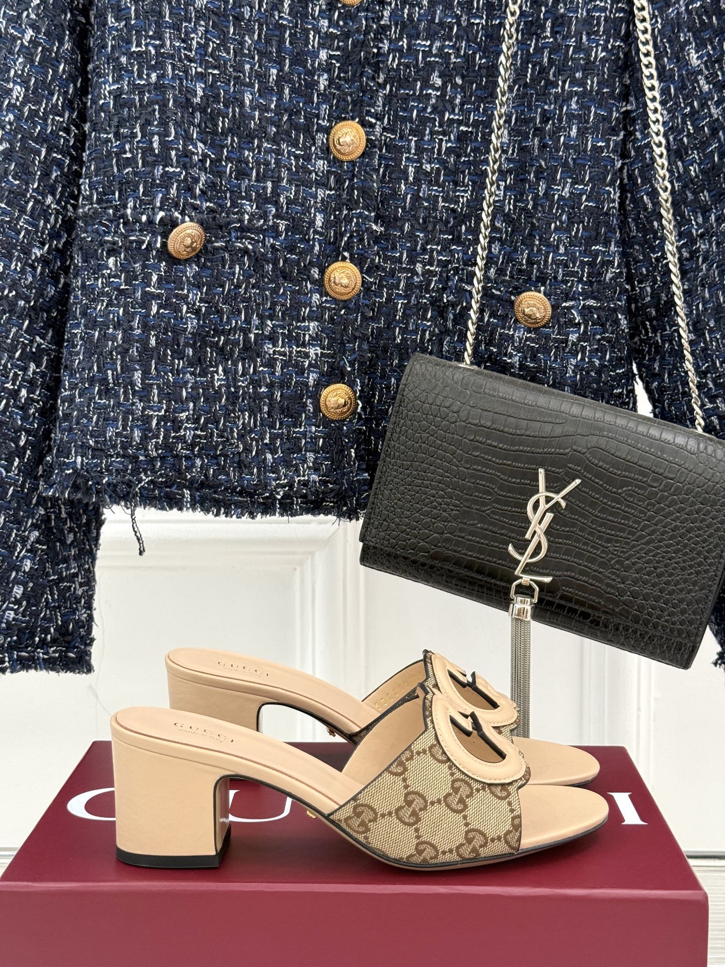 MID-HEEL MULE IN BEIGE CALFSKIN AND FABRIC