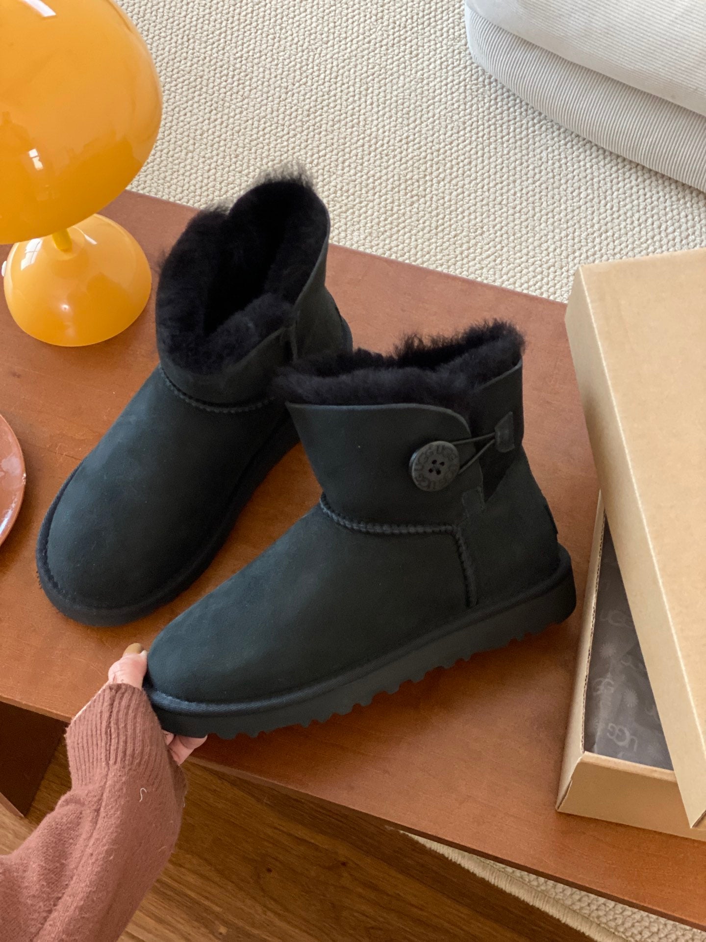 MINI BAILEY BUTTON II BOOT IN BLACK SUEDE AND SILK COTTON PADDING
