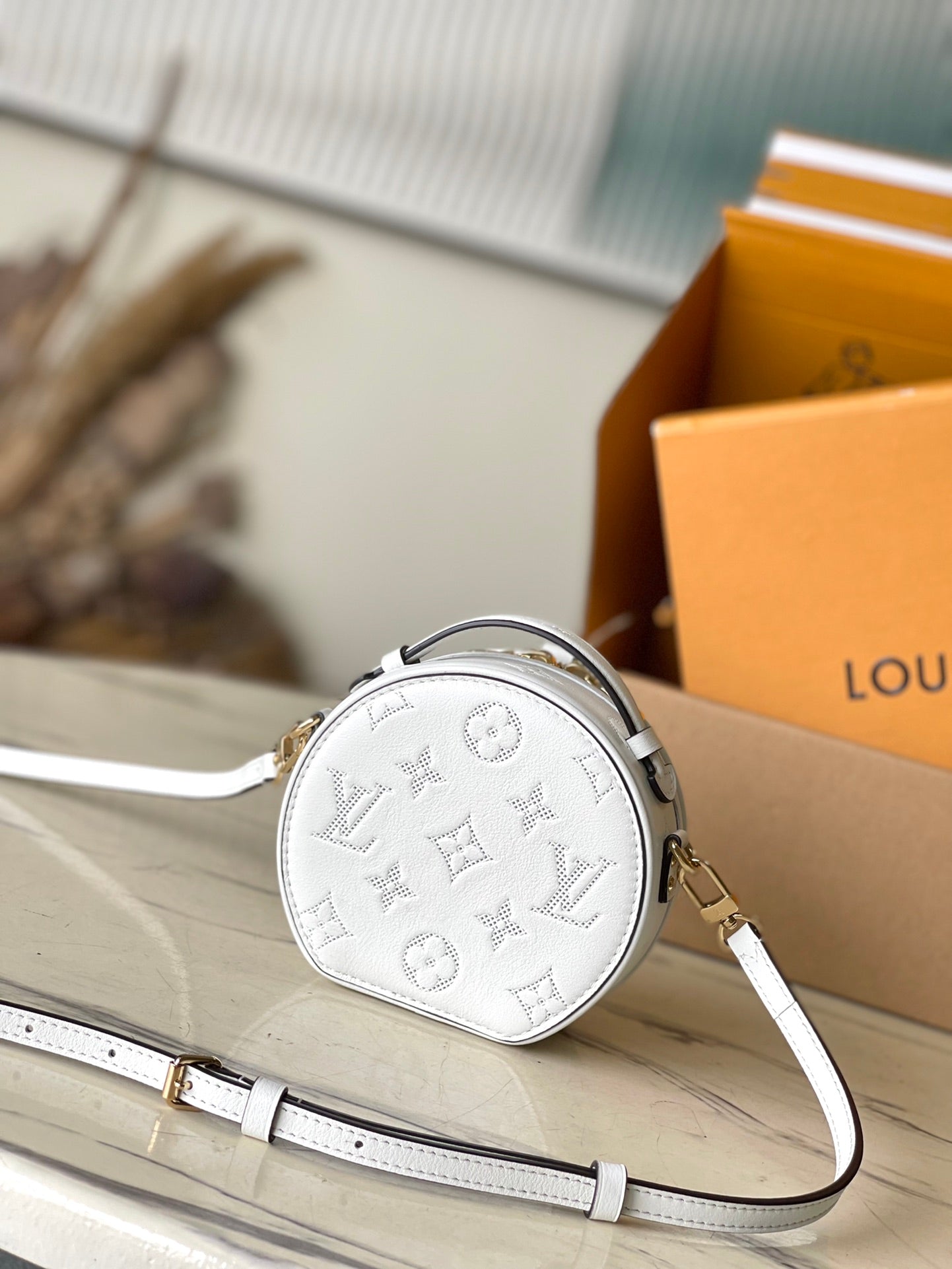 MINI BOITE CHAPEAU 13 IN WHITE MONOGRAM PERFORATED CALFSKIN