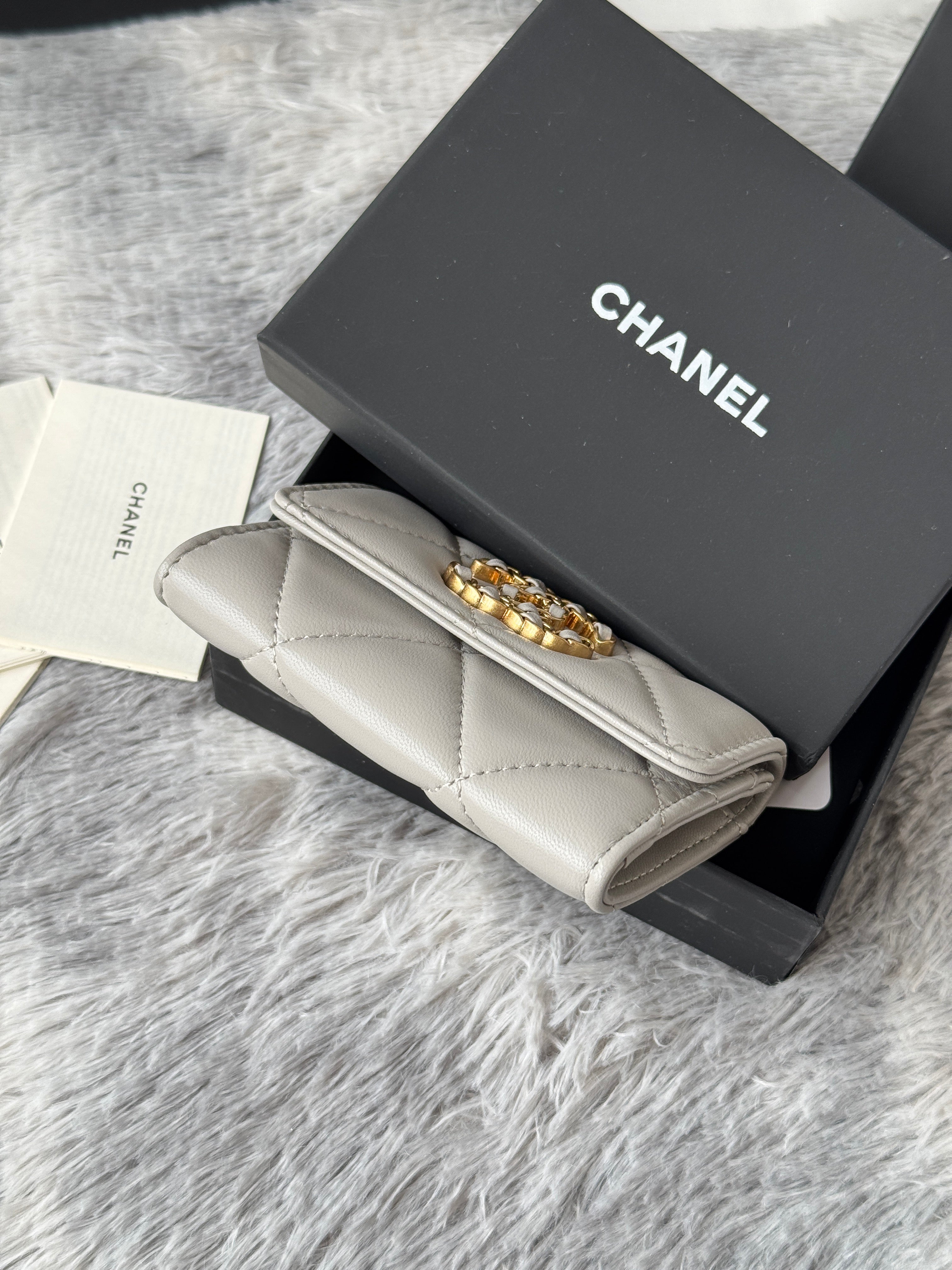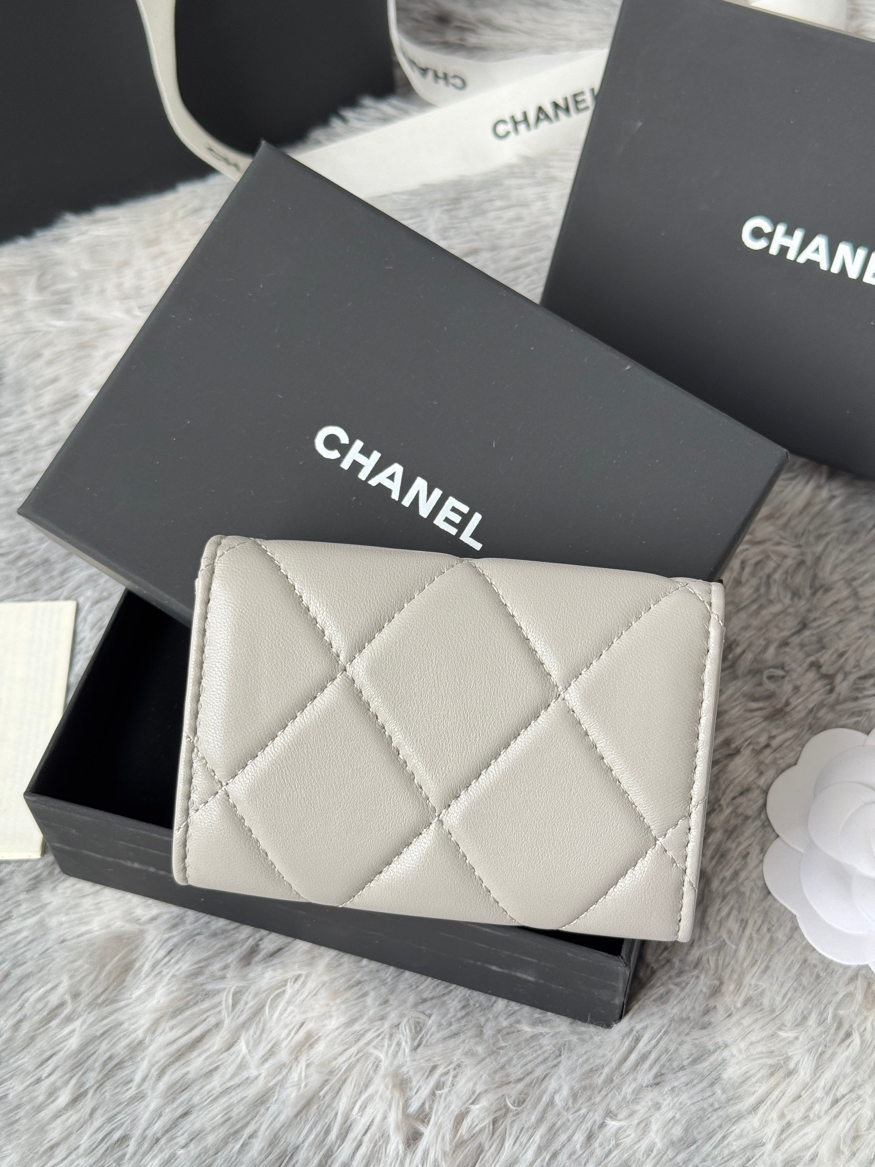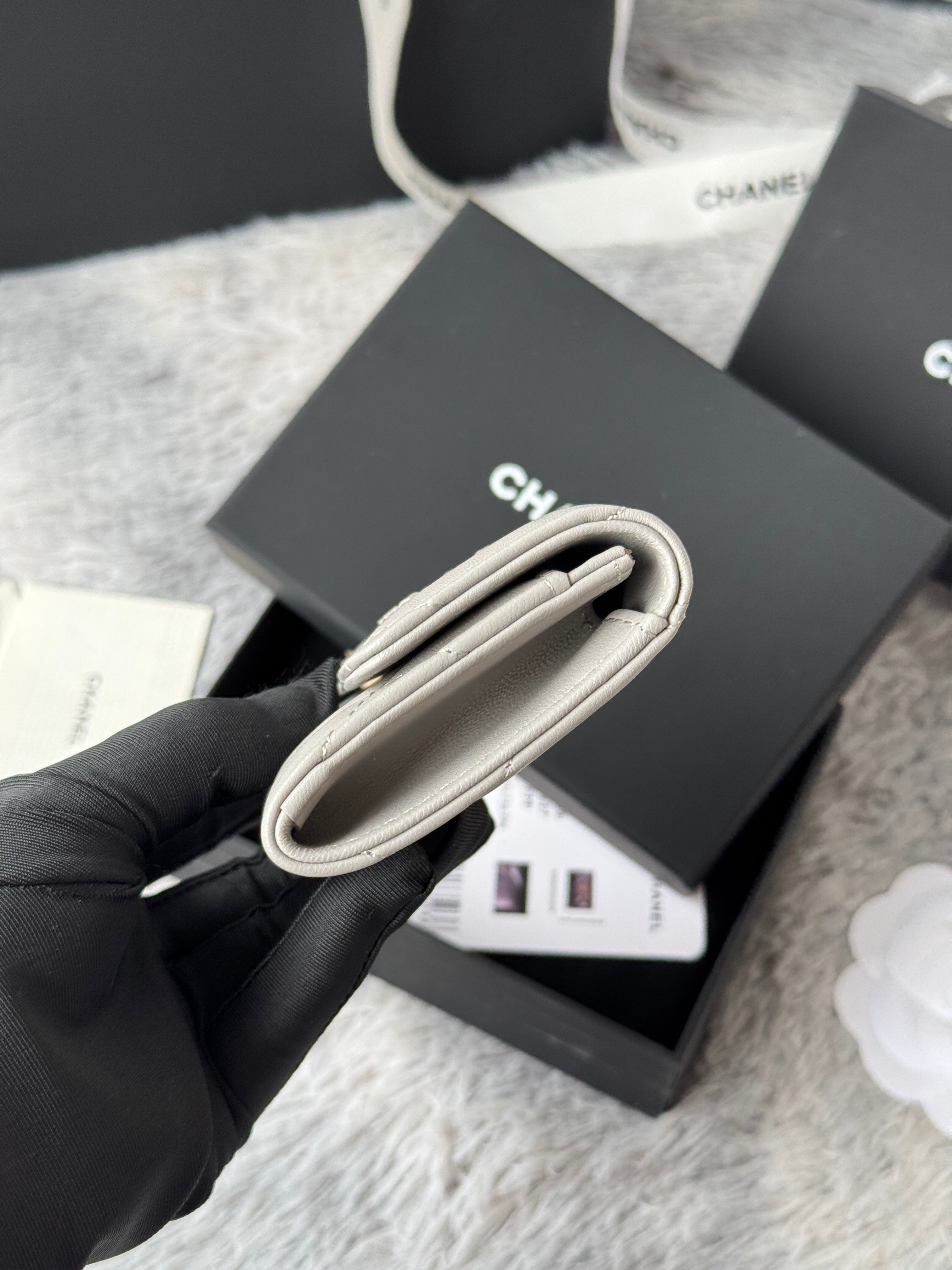 MINI FLAP CARD HOLDER 11 IN GREY LAMBSKIN GOLD-TONE METALLIC