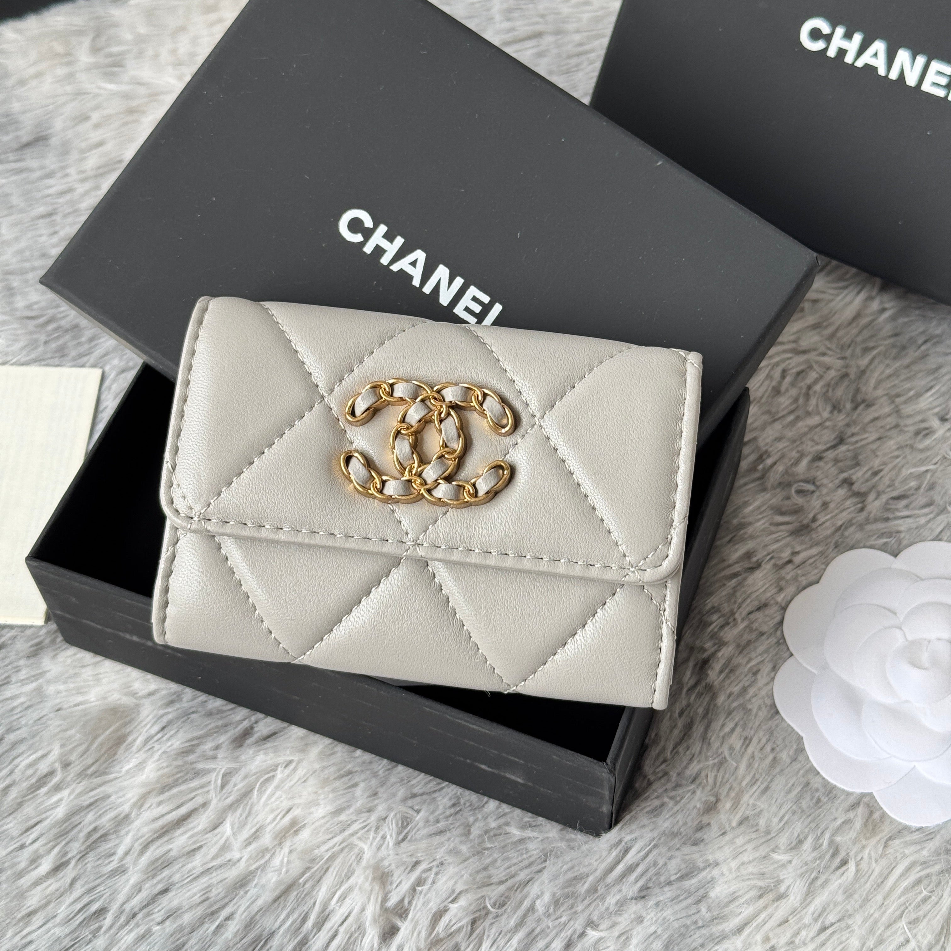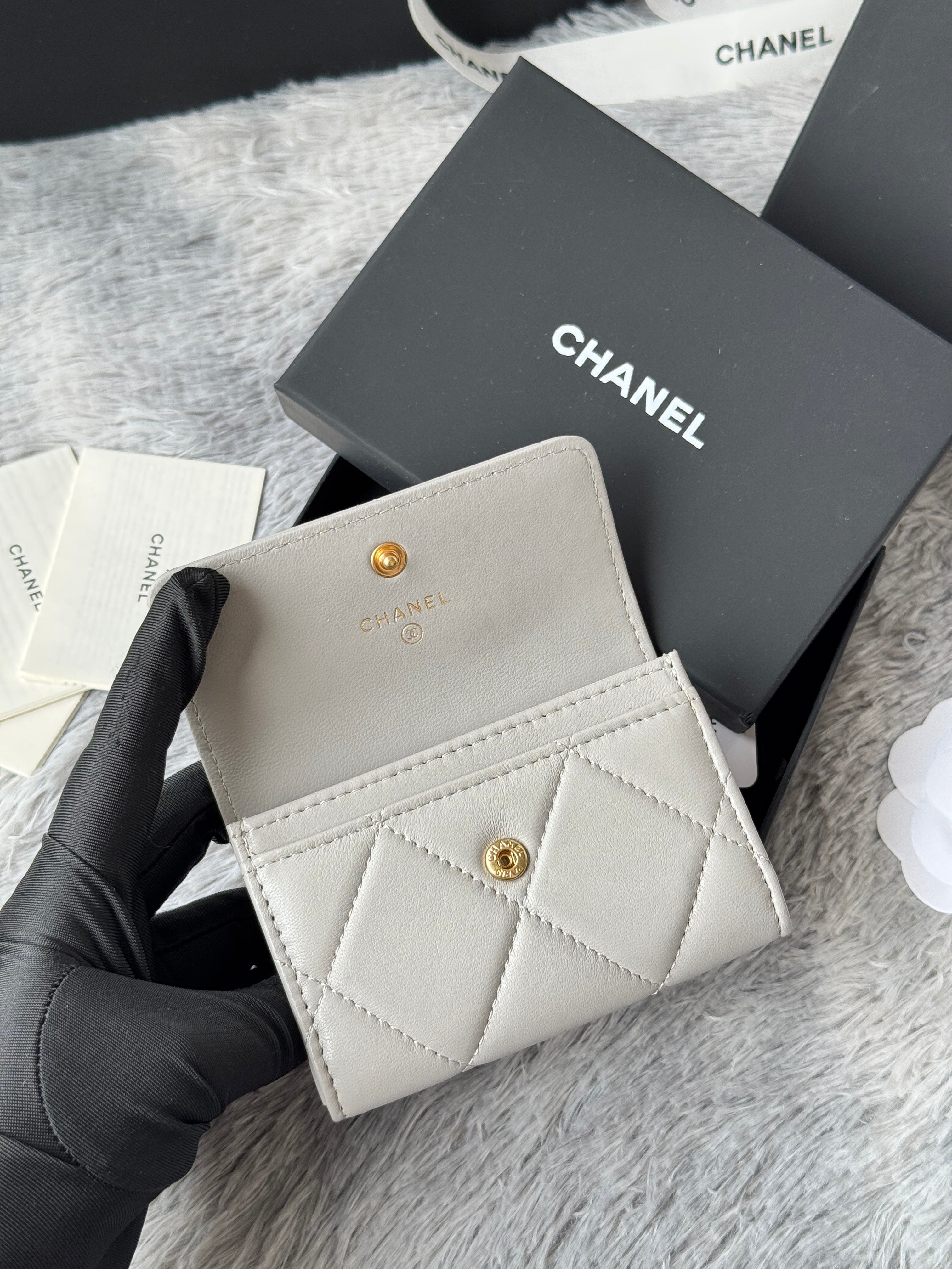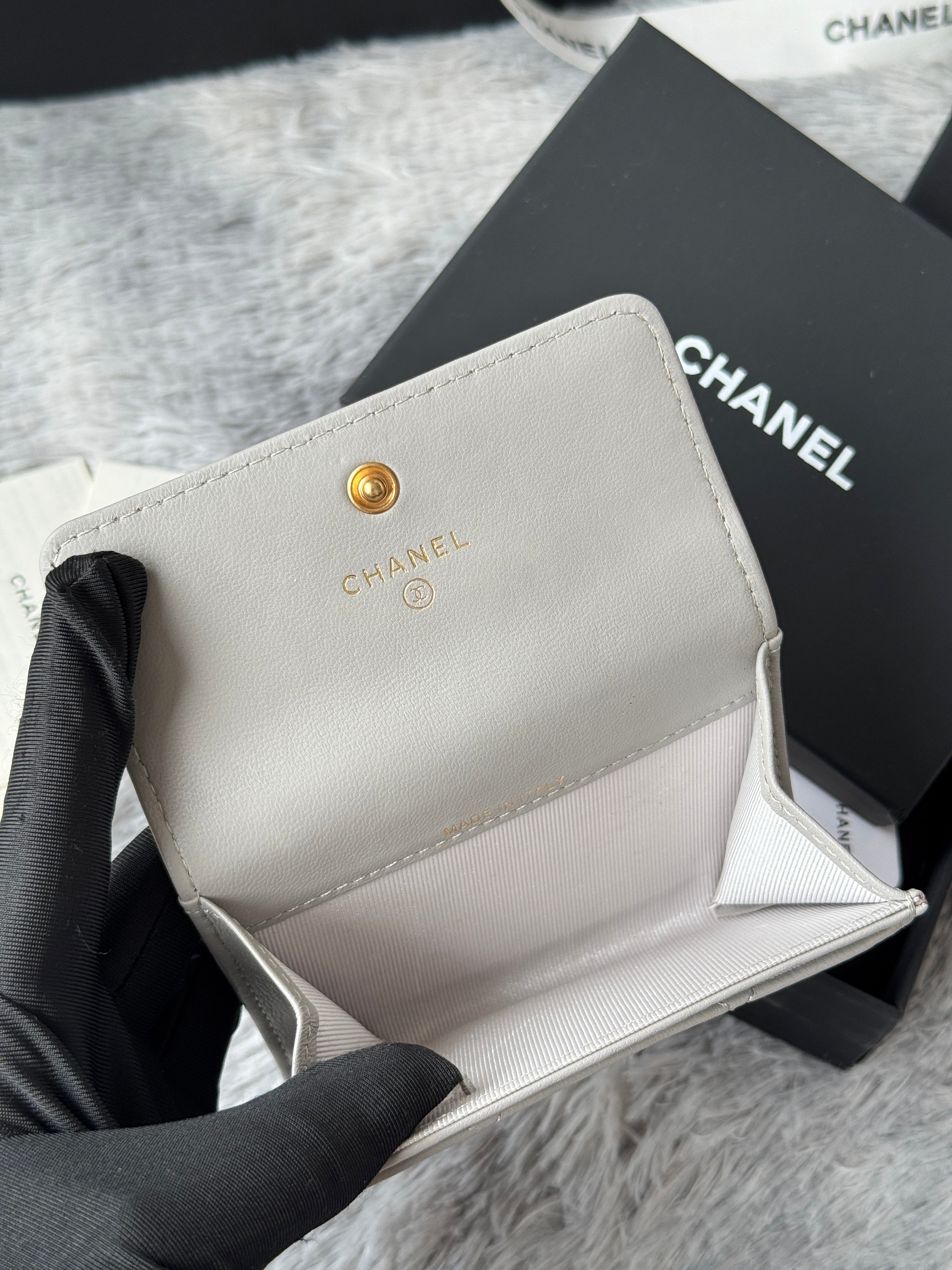 MINI FLAP CARD HOLDER 11 IN GREY LAMBSKIN GOLD-TONE METALLIC