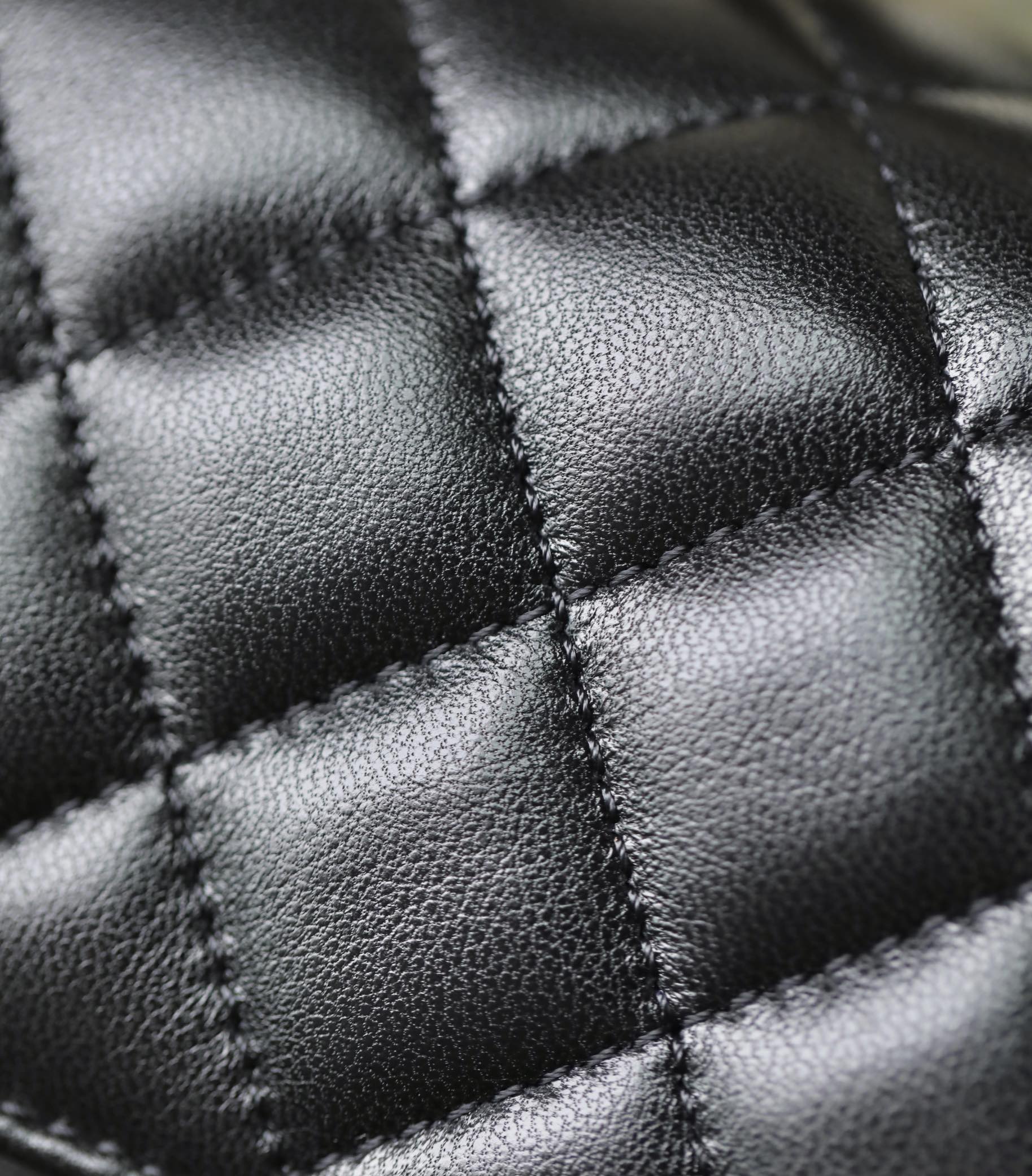 MINI RECTANGLE FLAP BAG TOP HANDLE 20CM BLACK LAMBSKIN SILVER HARDWARE