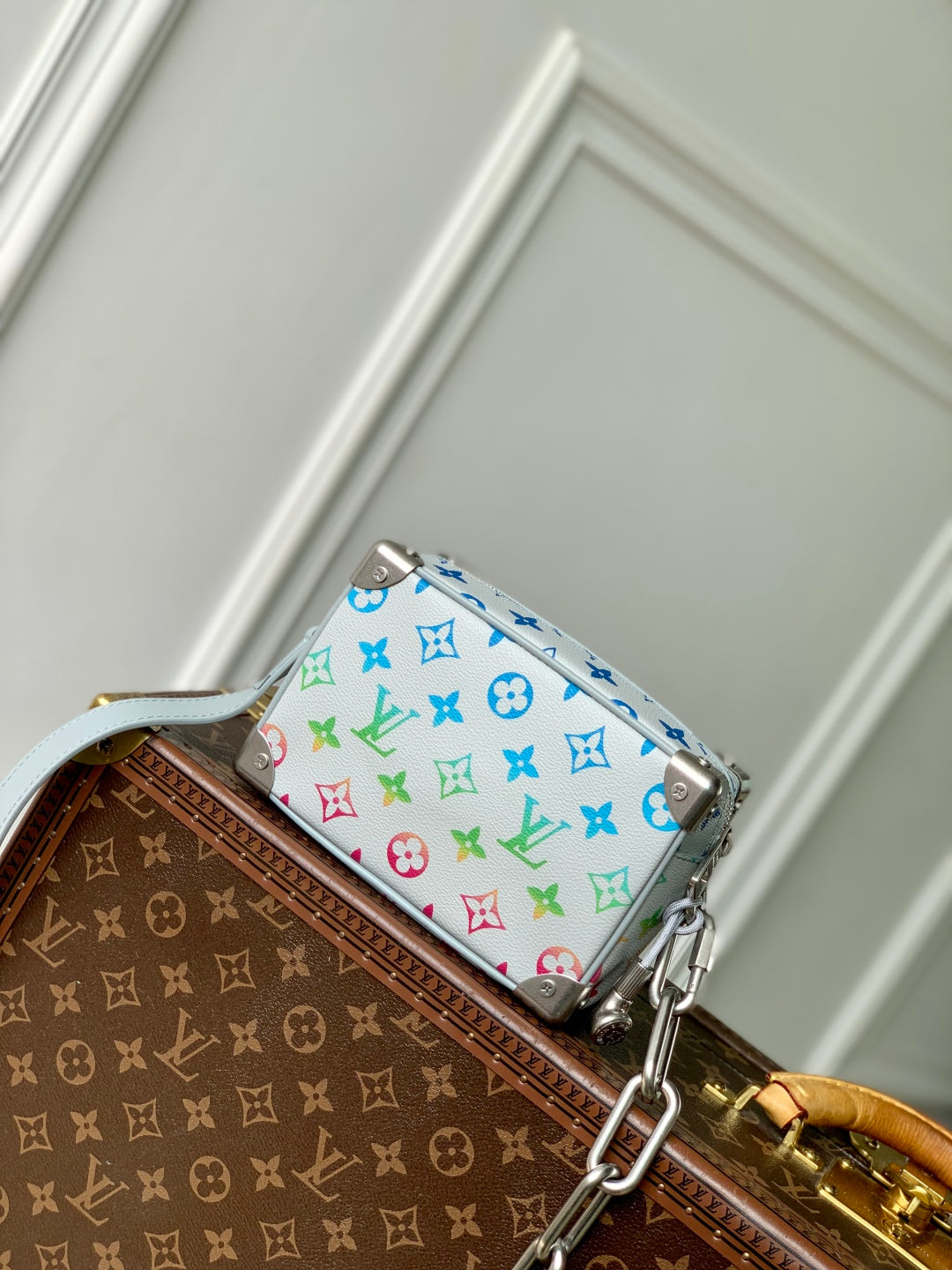MINI SOFT TRUNK 18.5 IN GREY MONOGRAM ECLIPSE CANVAS MULTICOLOR GRADIANT LOGO