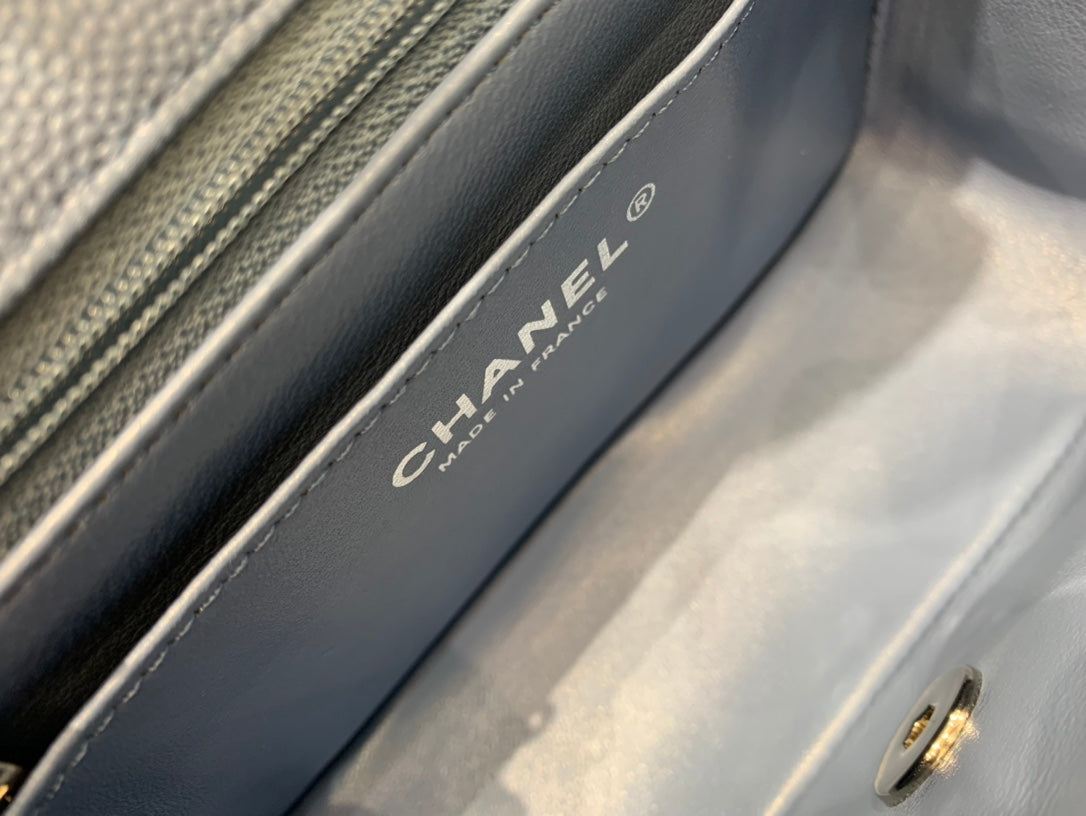 MINI SQUARE FLAP BAG 17CM BLUE CAVIAR SILVER HARDWARE