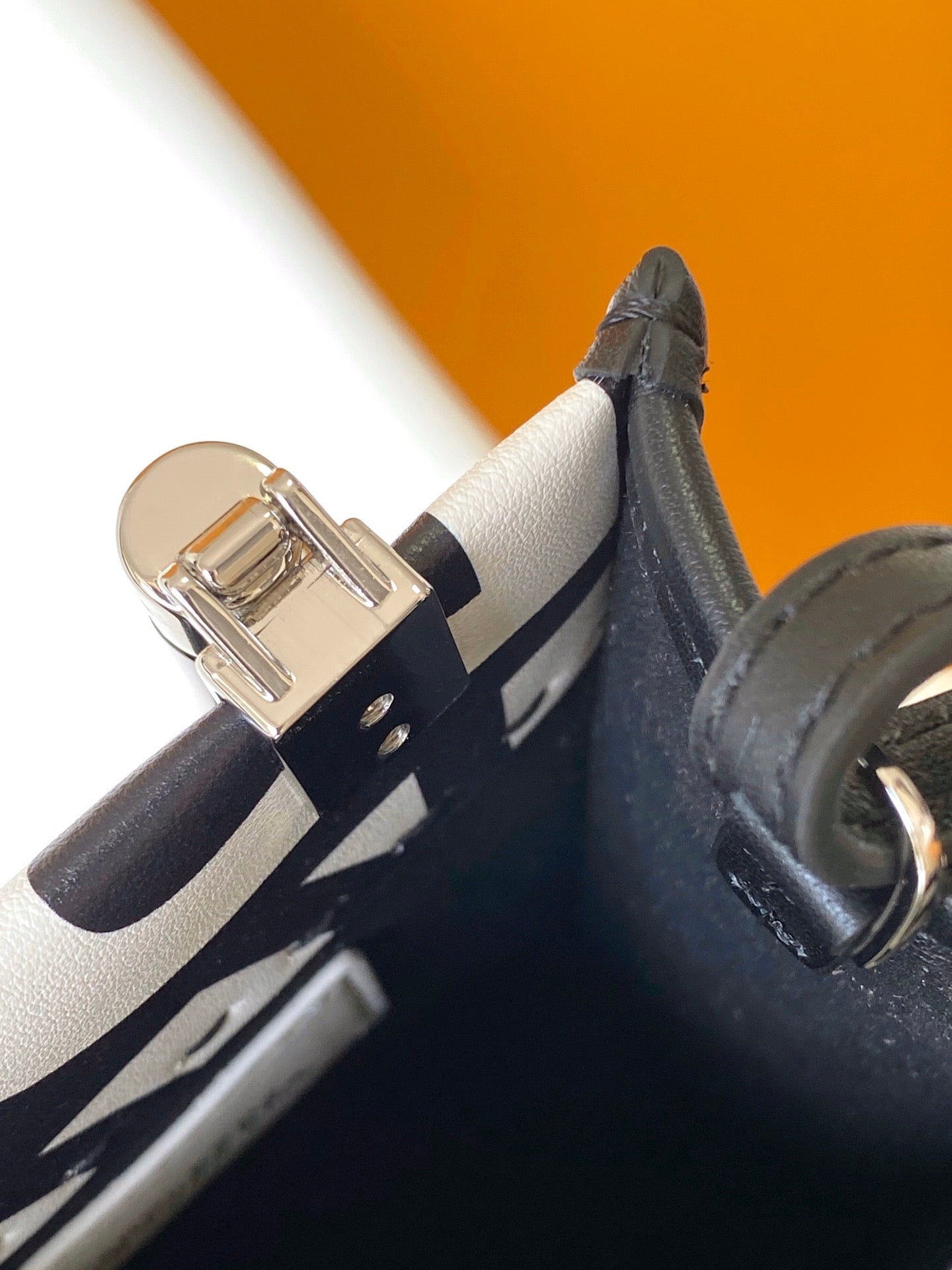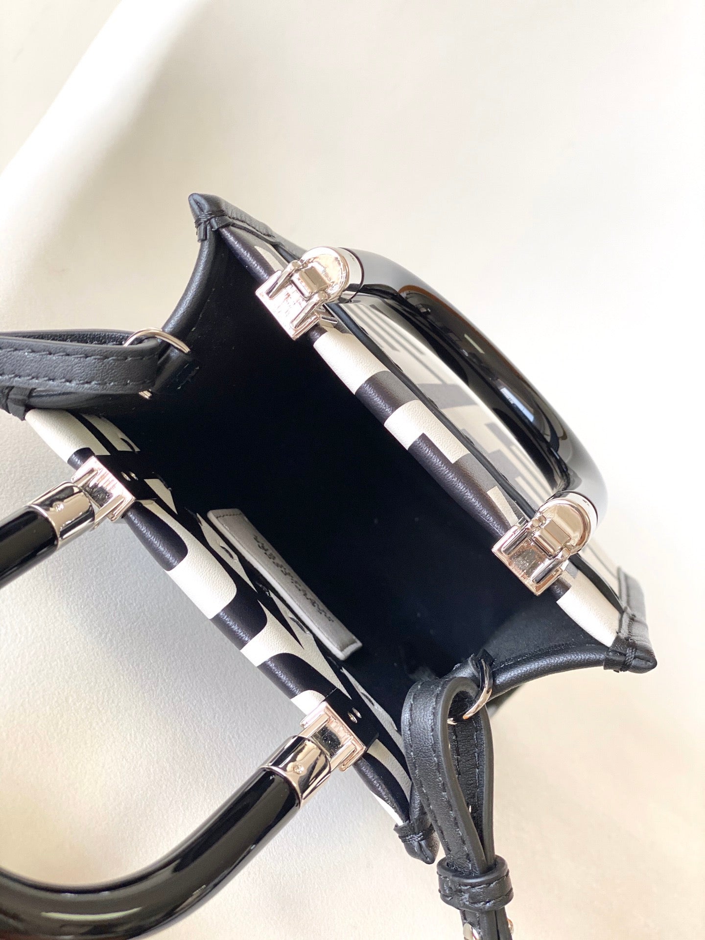 MINI SUNSHINE SHOPPER BAG 18 IN WHITE MIX BLACK SMOOTH CALFSKIN