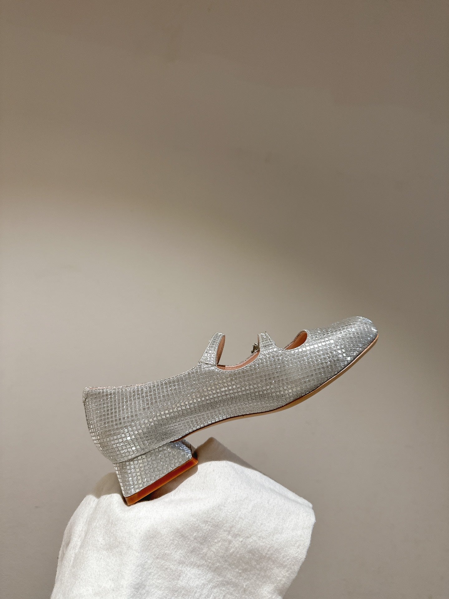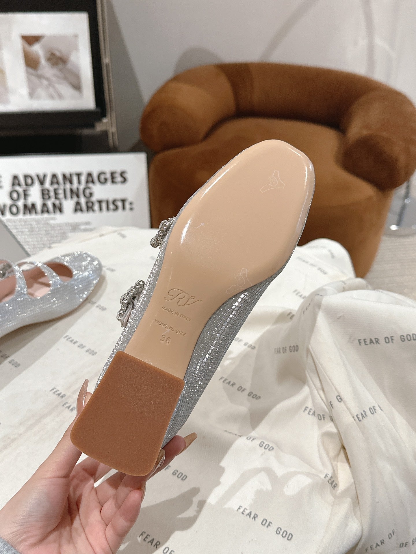 MINI TRES VIVIER STRASS BUCKLE BABIES BALLERINAS IN SILVER CALFSKIN FULLY EMBELLISHED CRYSTALS