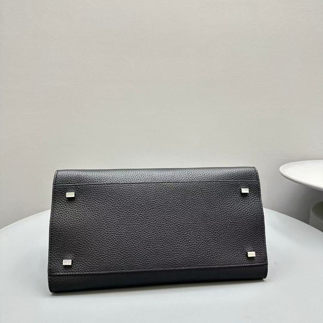 MINIMALIST STRUCTURED SILHOUETTE HANDBAG IN BLACK CALFSKIN