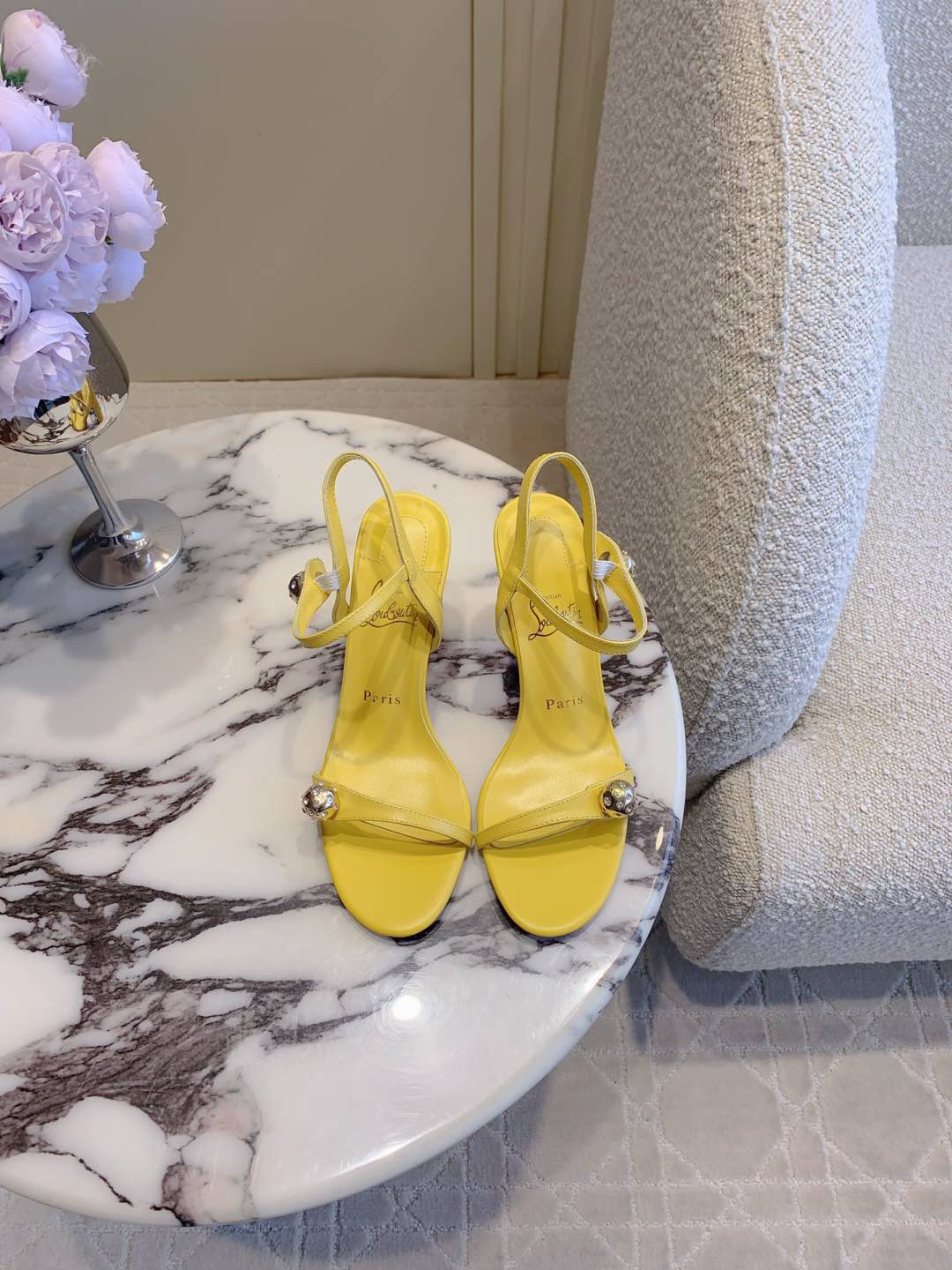MISS JANE SANDAL 90MM IN YELLOW CALFSKIN EMBELLISHED BALL