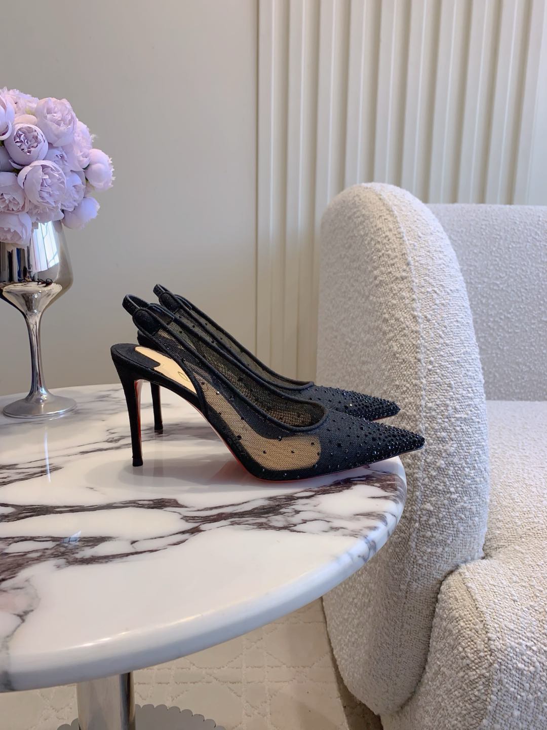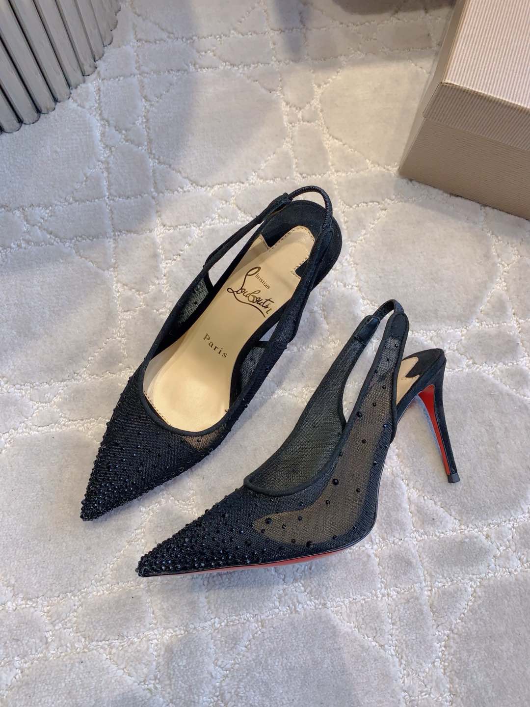 MISS Z SLINGBLACK PUMPS DAZZLING 85MM IN BLACK MESH AND STRASS