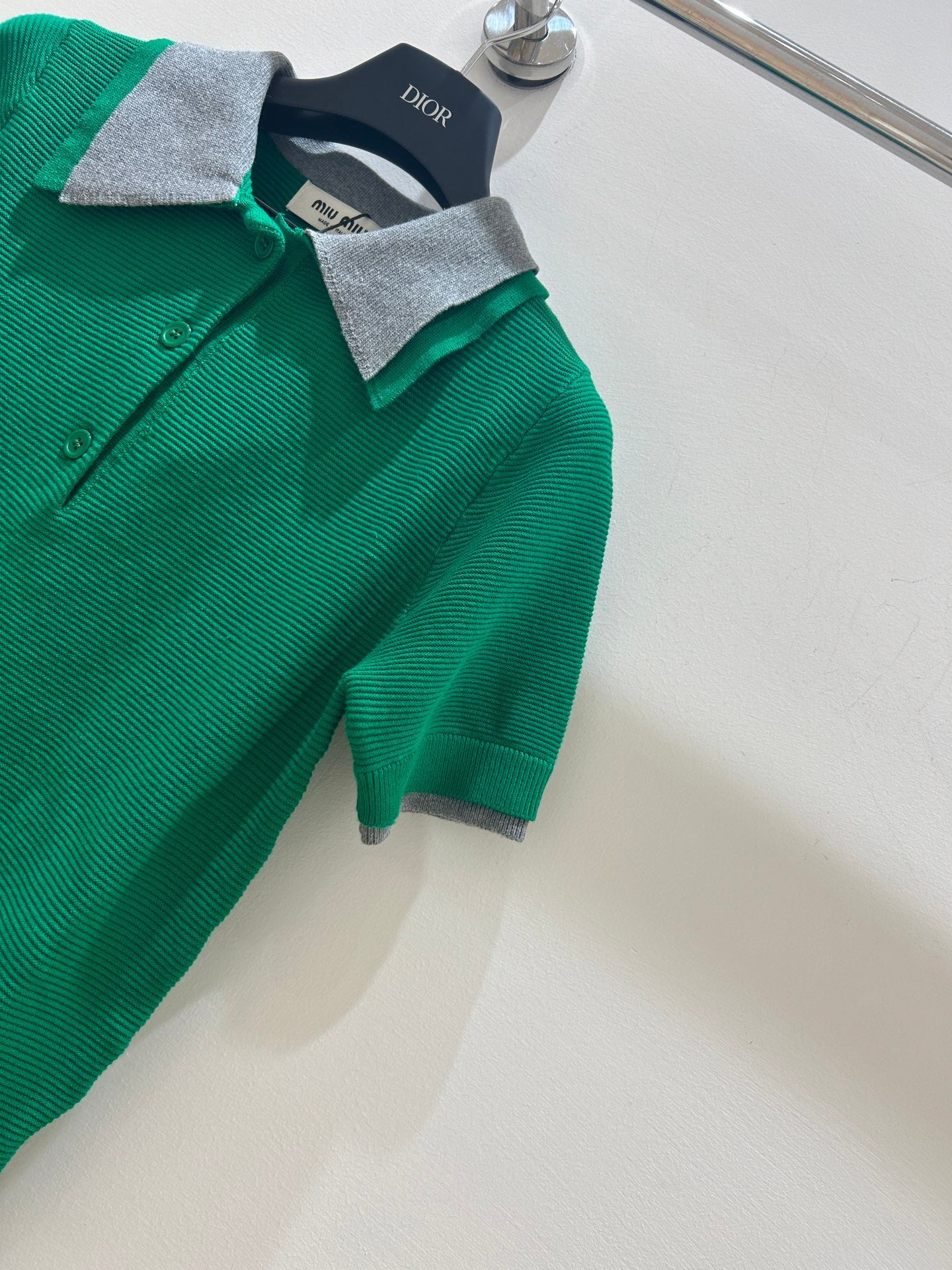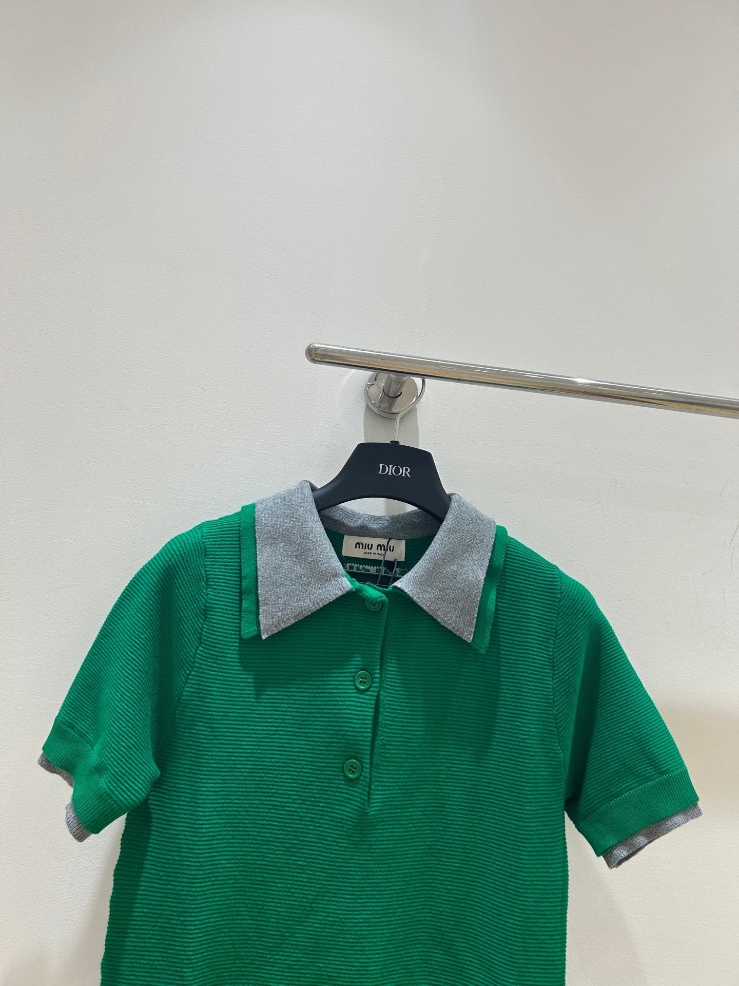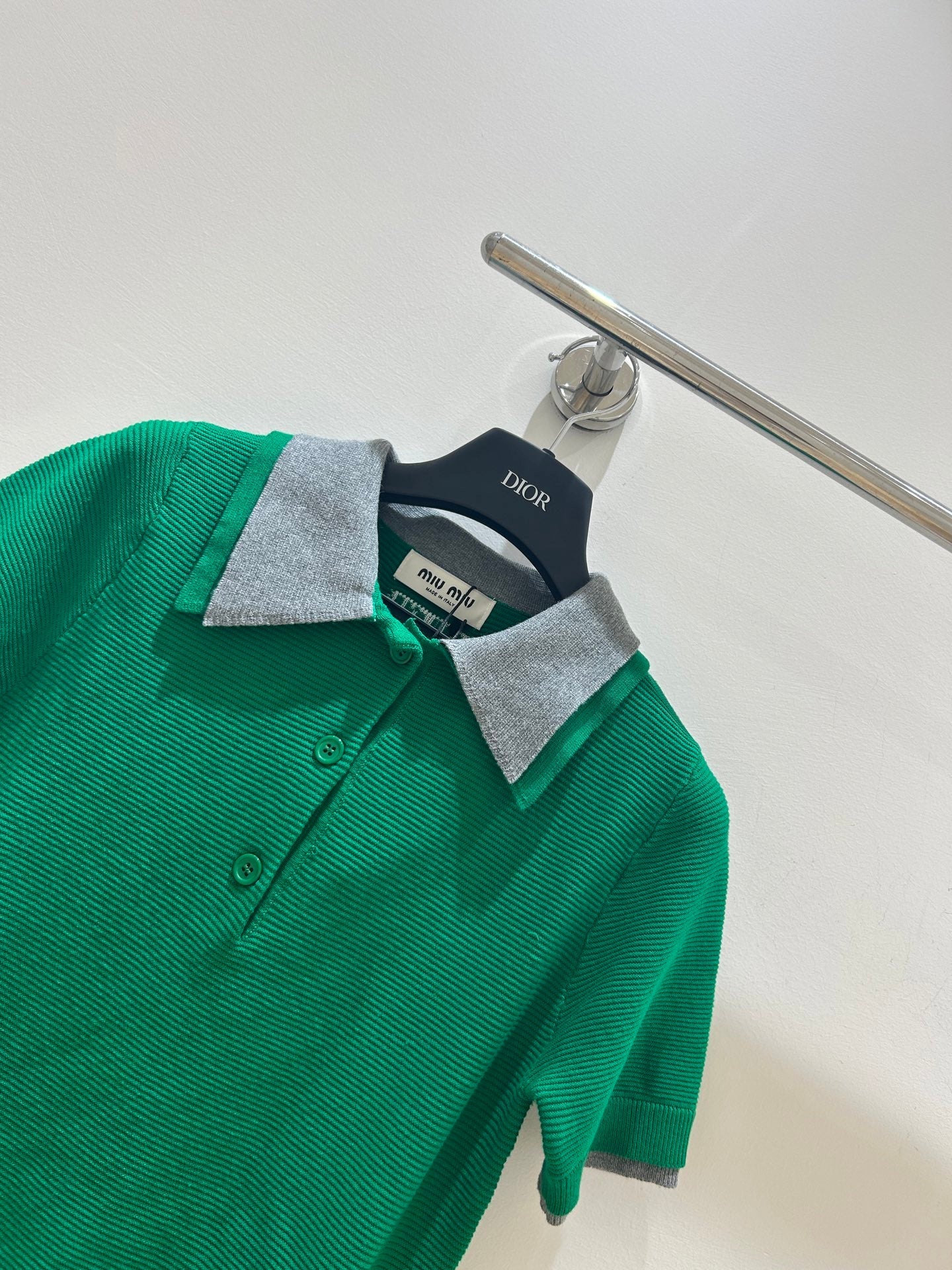 MIUMIU SHORT-SLEEVE KNIT POLO SHIRT STYLE 202
