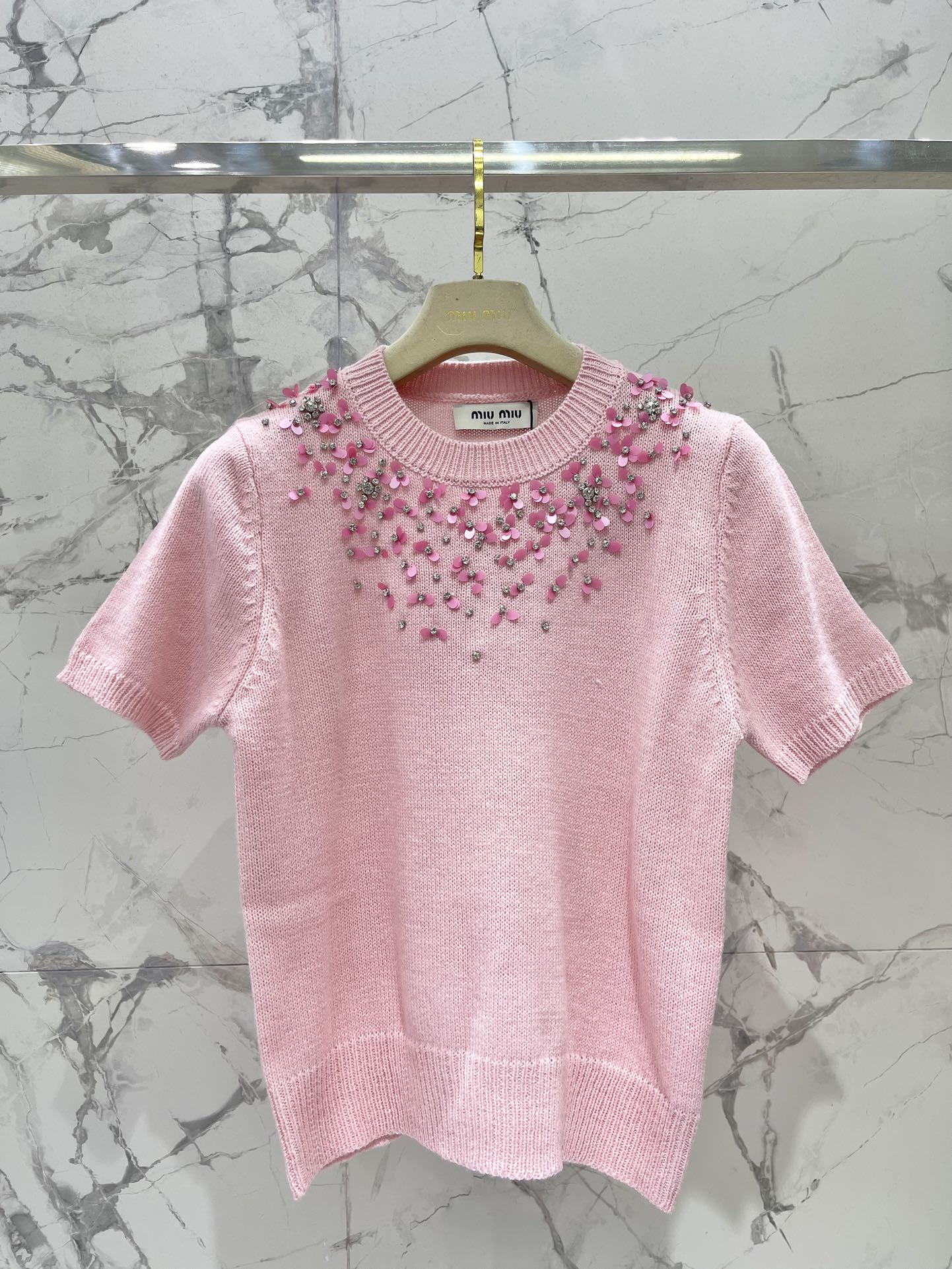 MIUMIU SHORT-SLEEVE KNIT TOP STYLE 298