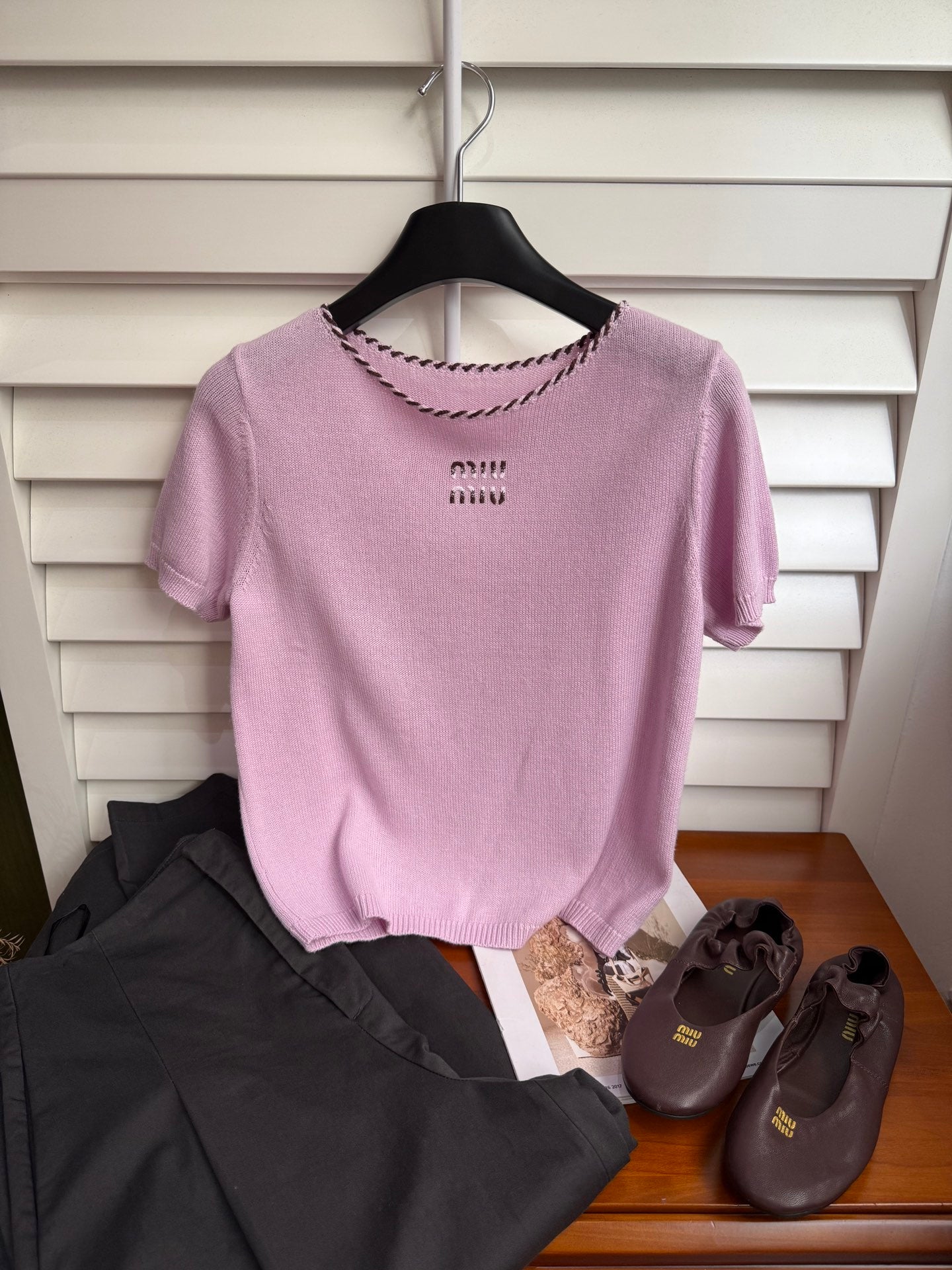 MIUMIU SHORT-SLEEVE KNIT TOP STYLE 347