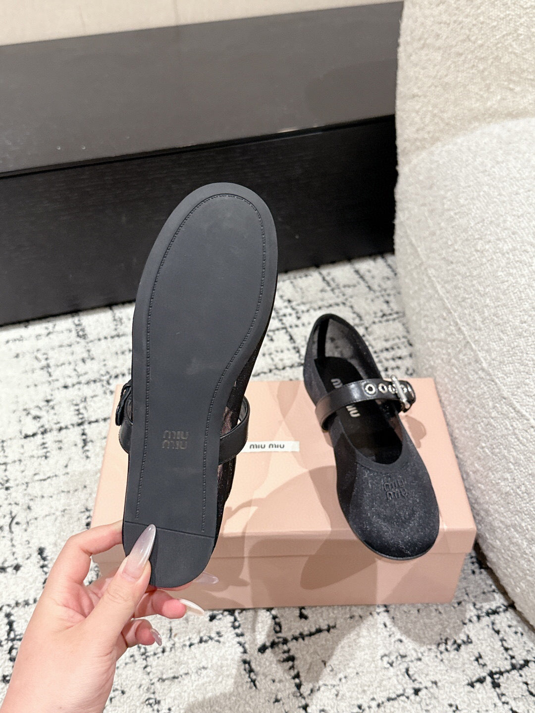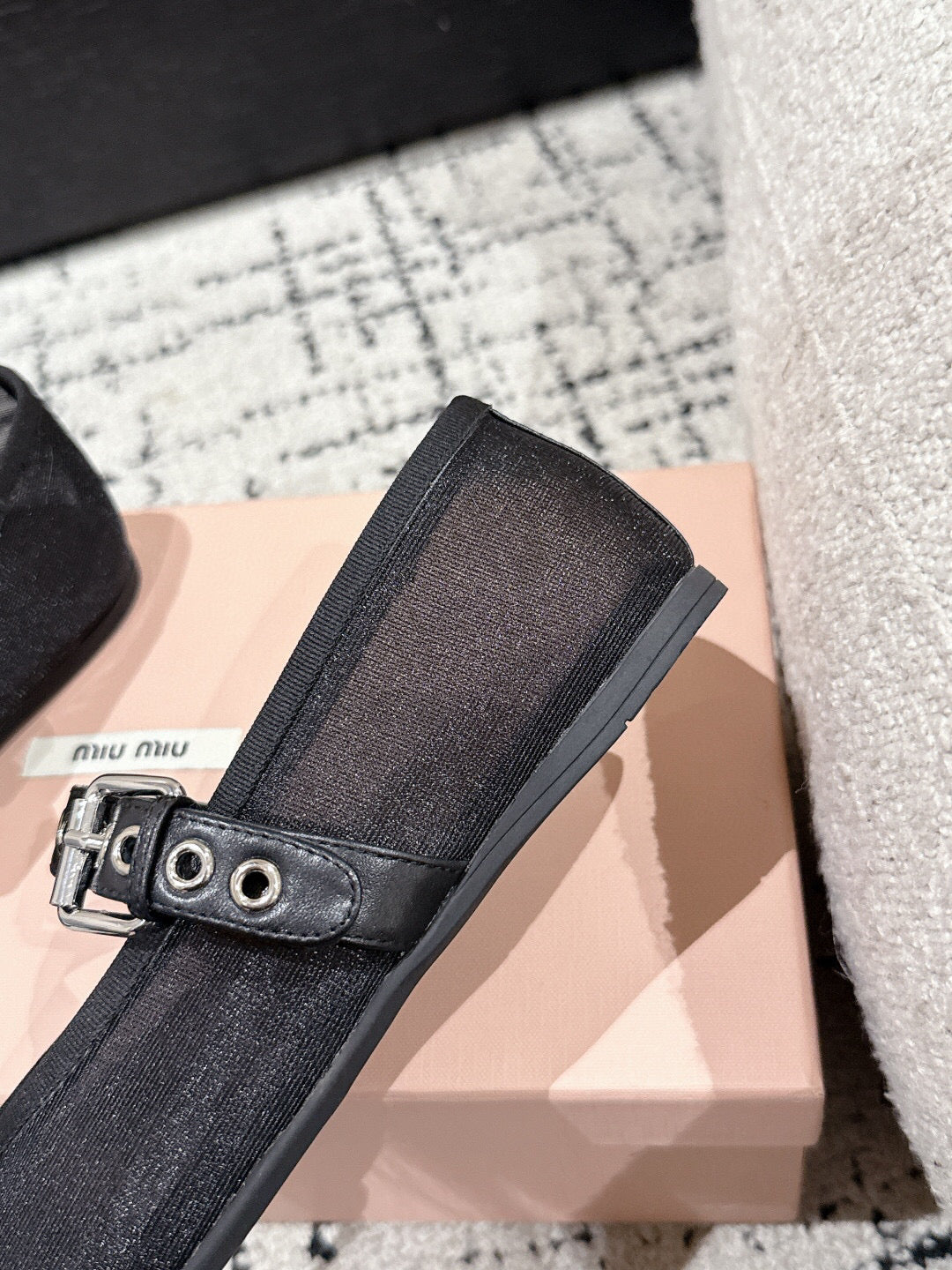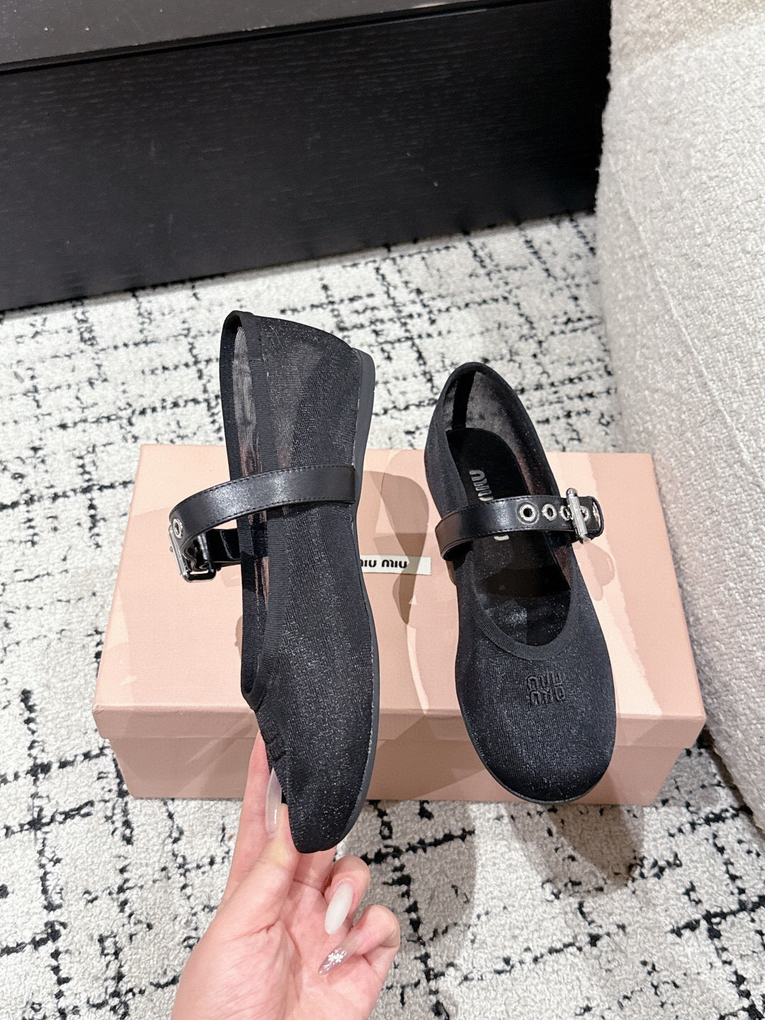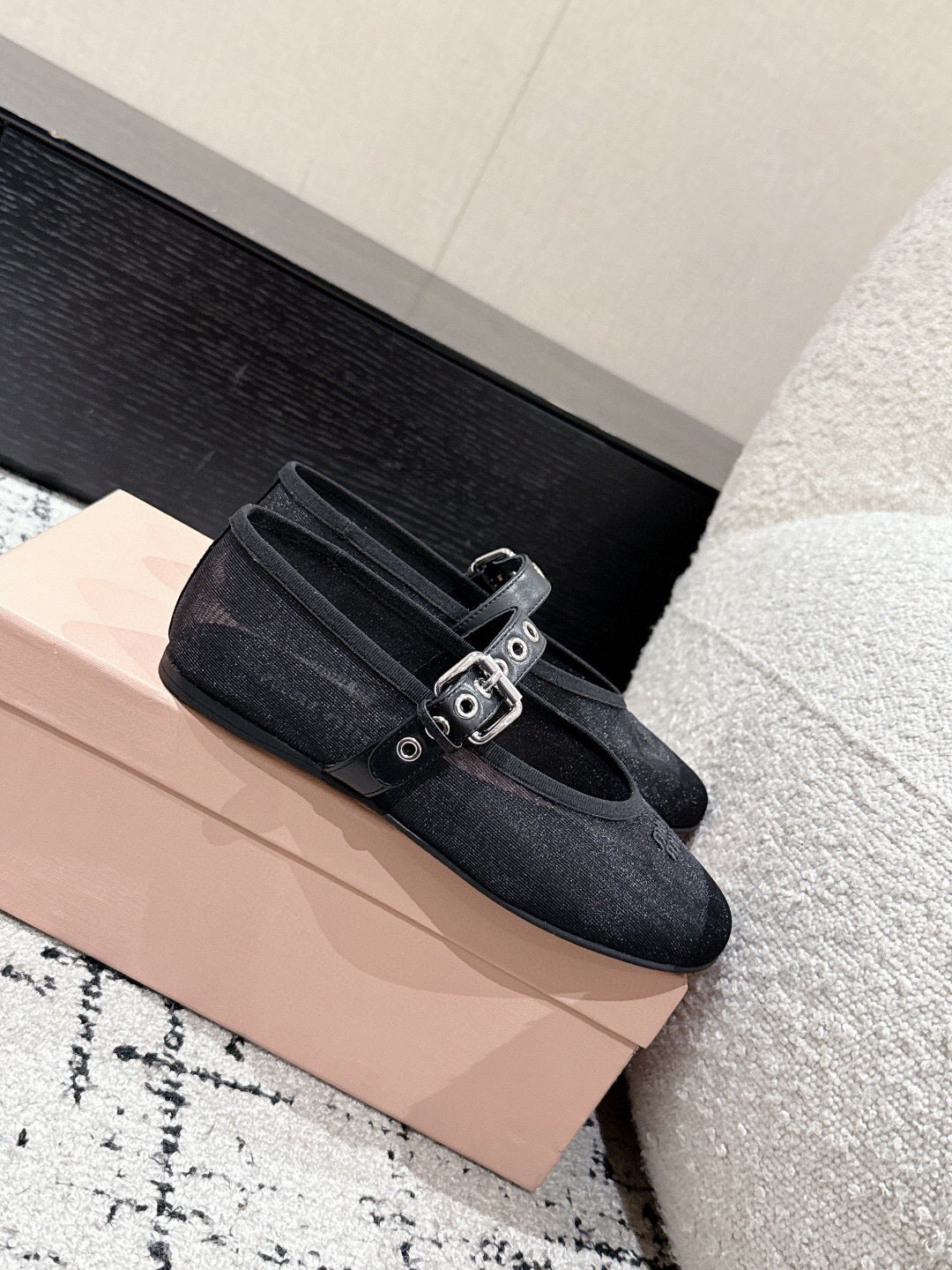 MM BALLET FLATS IN BLACK MESH AND LEATHER
