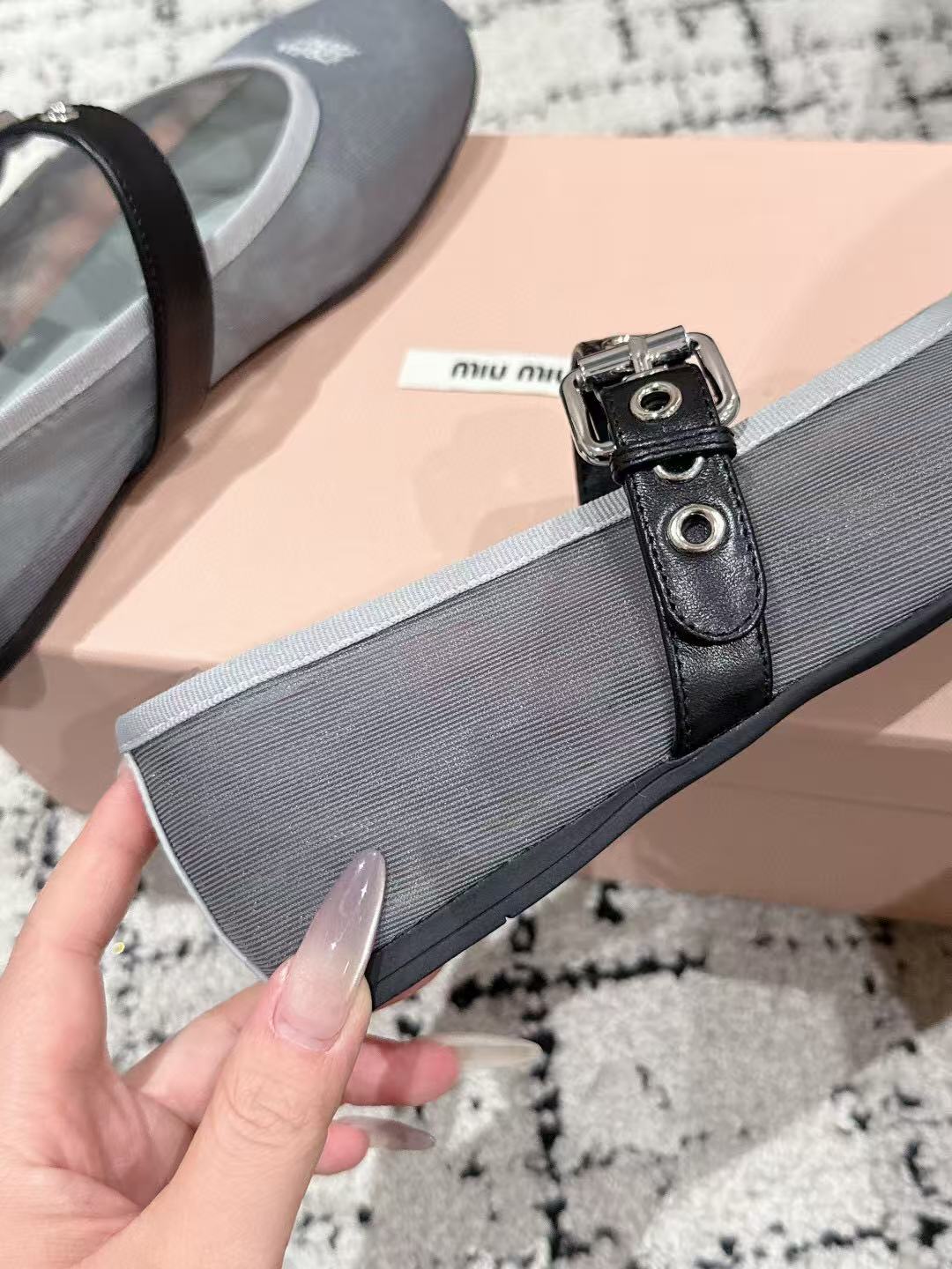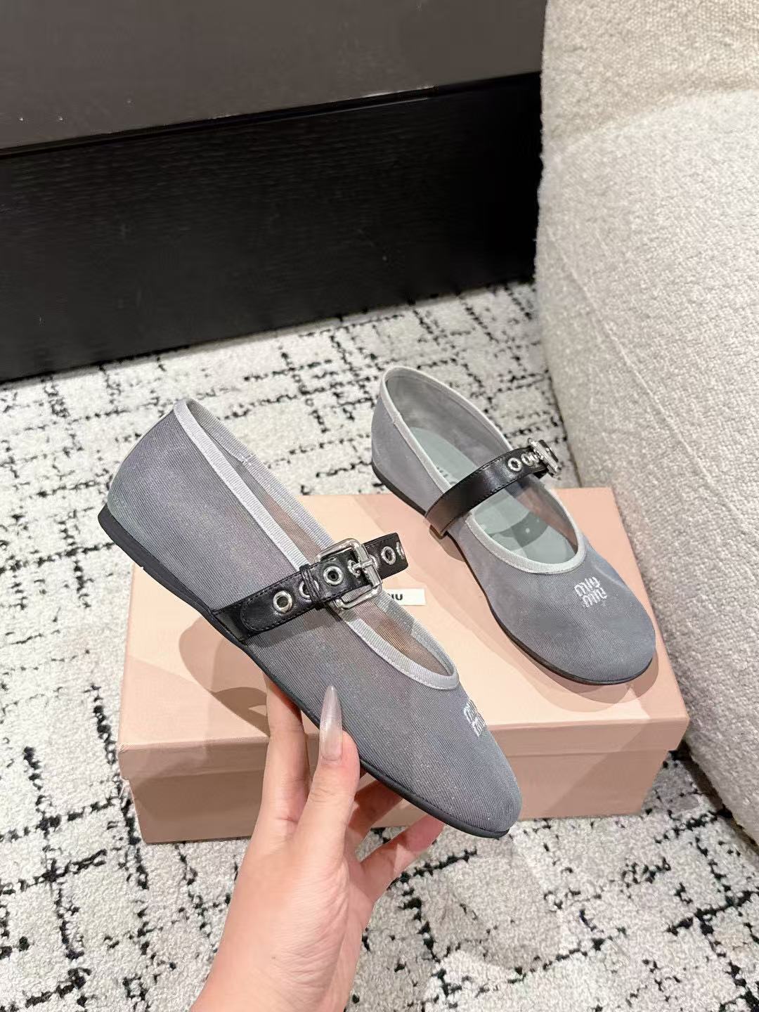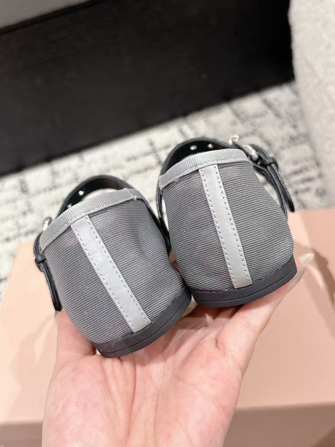 MM BALLET FLATS IN GREY MESH AND LEATHER