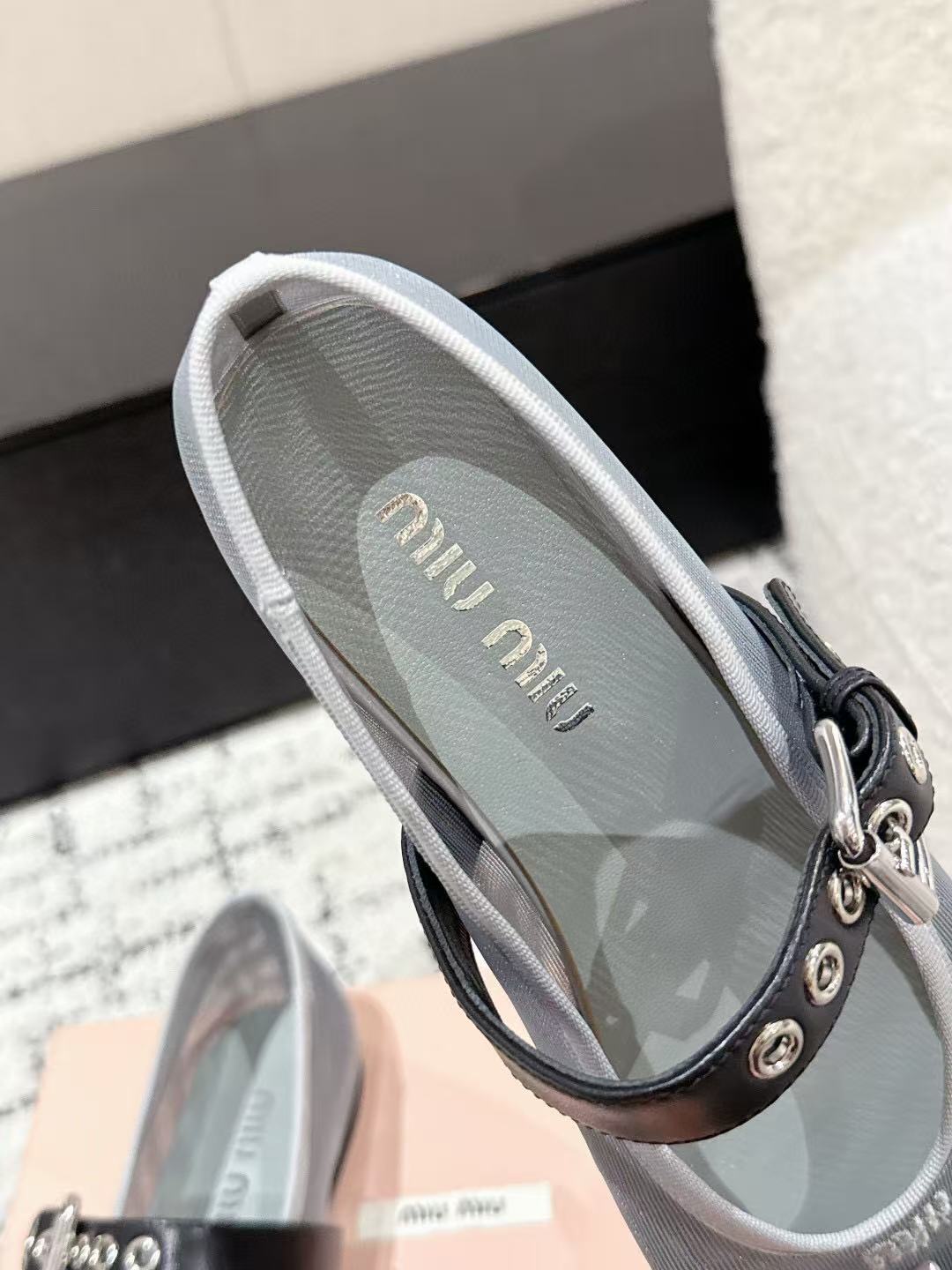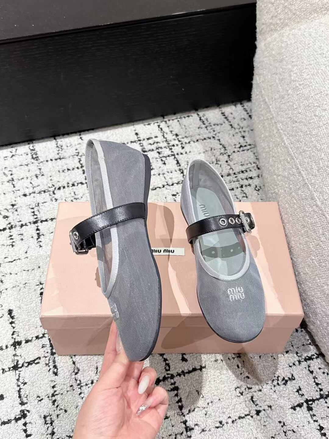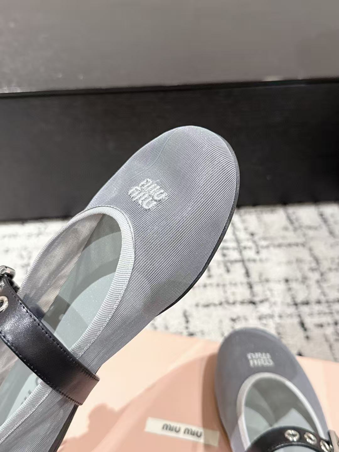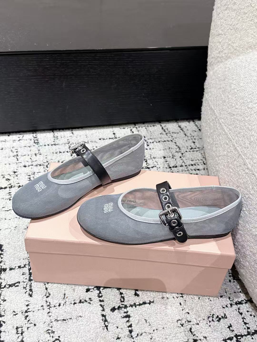 MM BALLET FLATS IN GREY MESH AND LEATHER