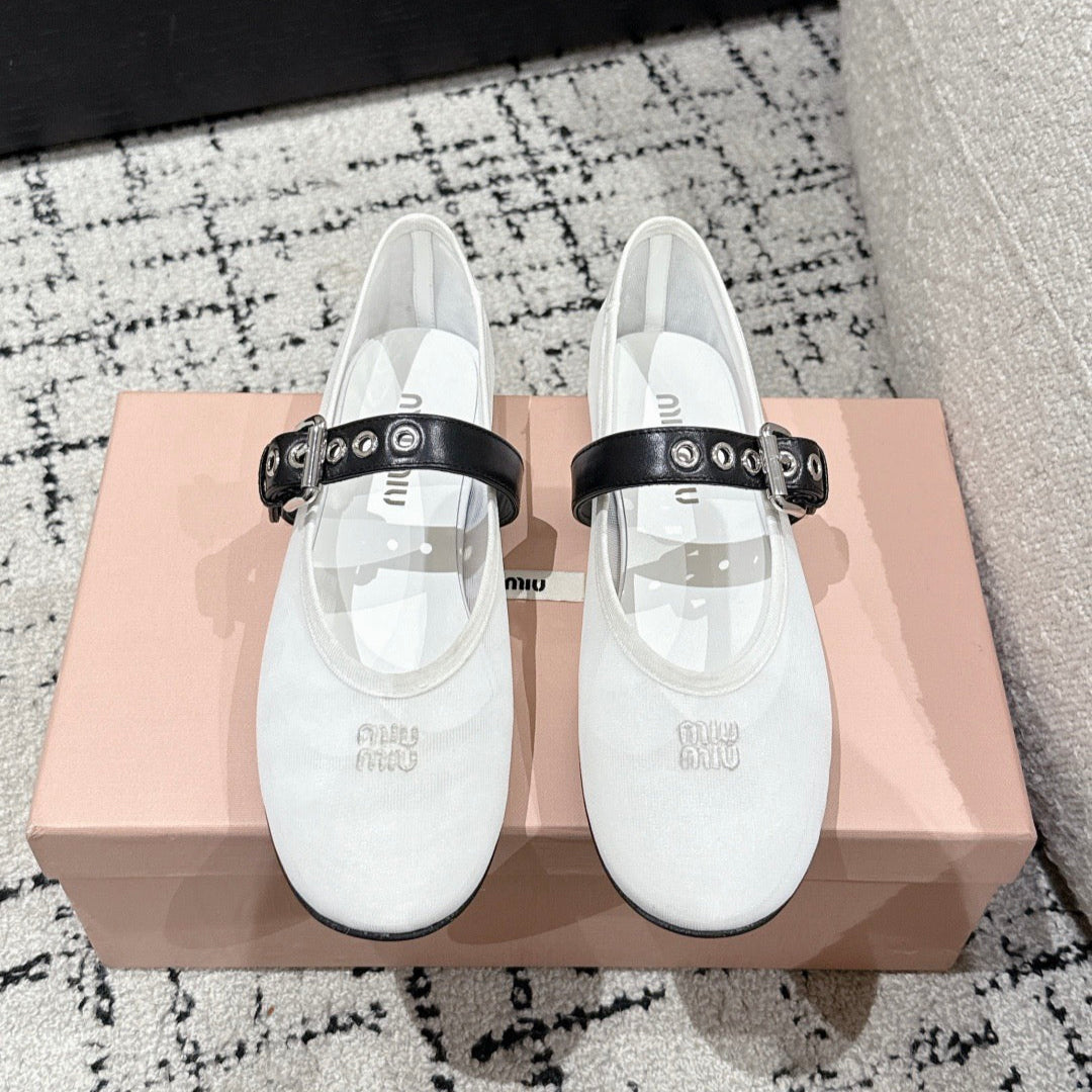 MM BALLET FLATS IN WHITE MESH AND BLACK LEATHER