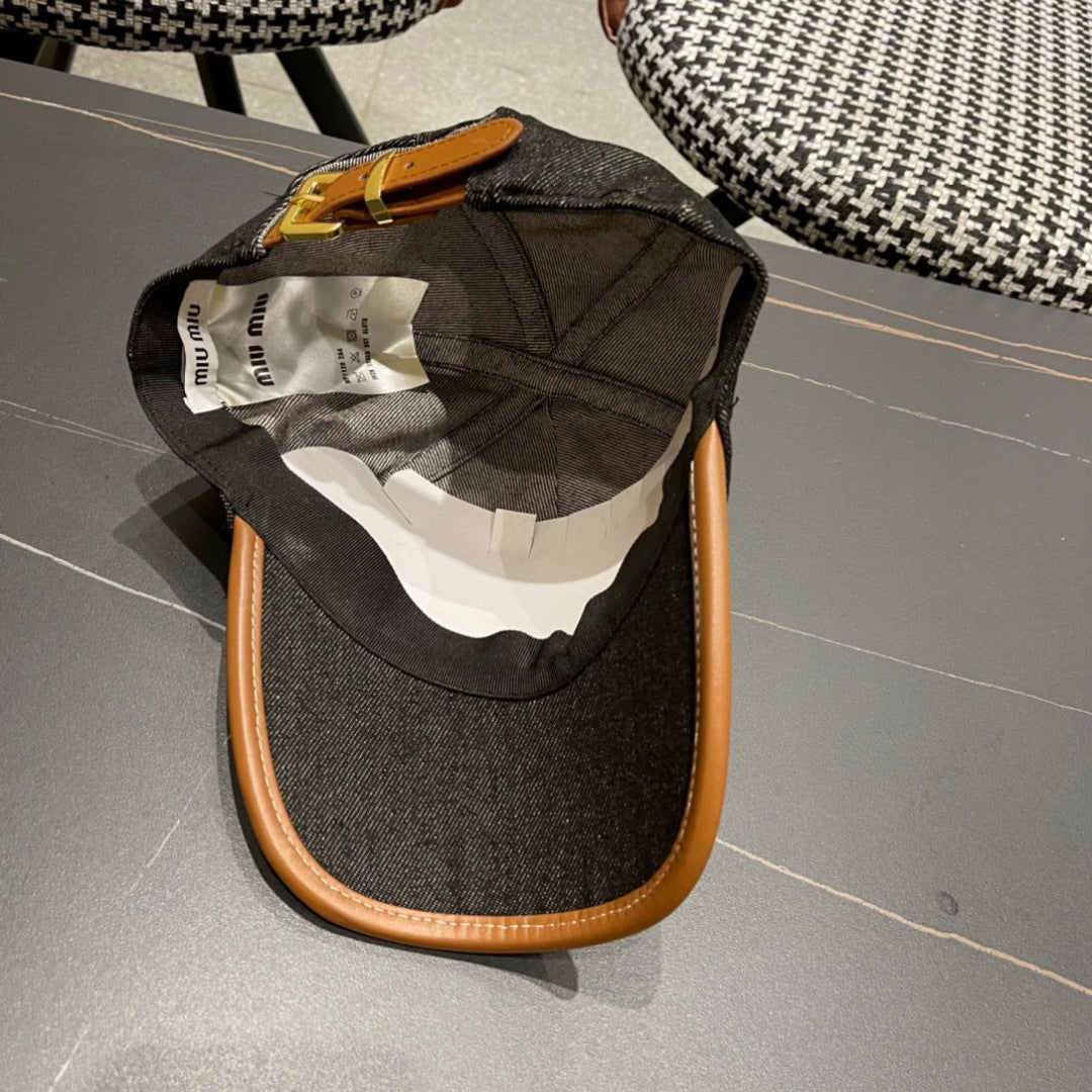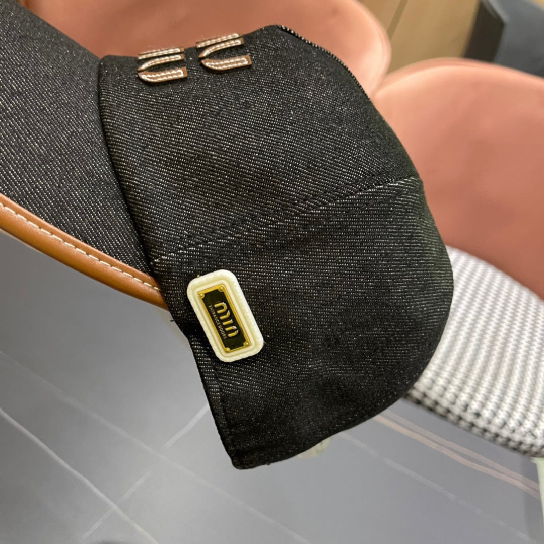 MM BASEBALL CAP IN BLACK DENIM AND CALFSKIN
