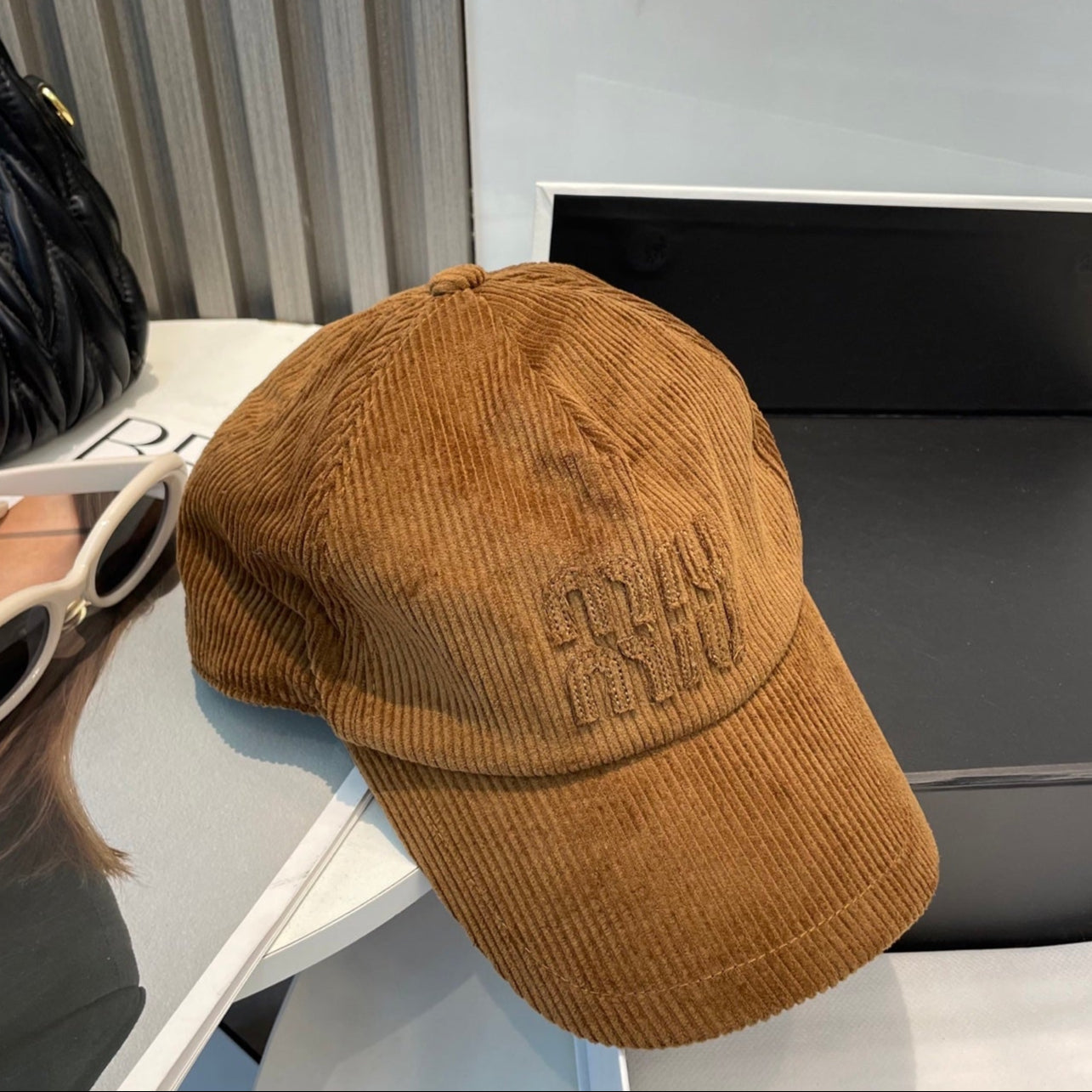 MM BASEBALL CAP IN BURNT ORANGE VELVET