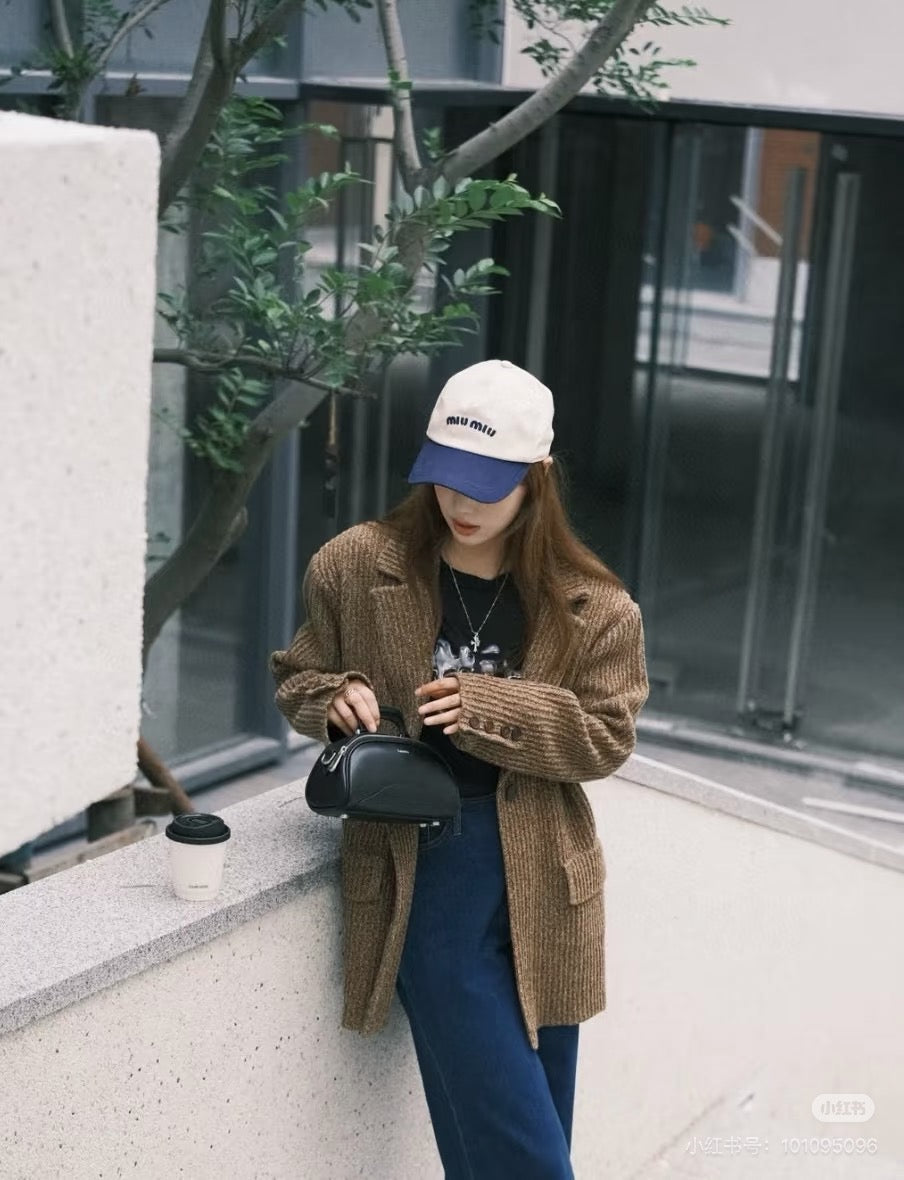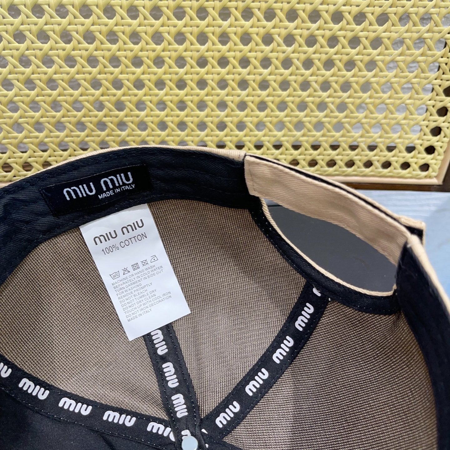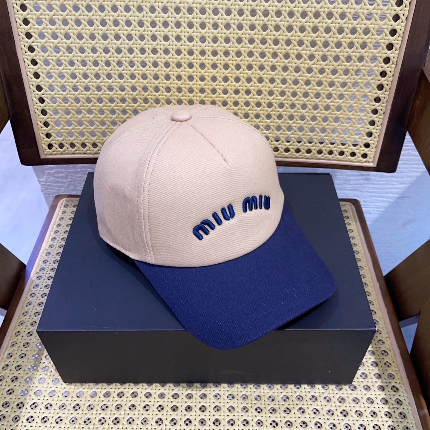 MM BASEBALL CAP IN LIGHT BEIGE AND NAVY BLUE FABRIC WITH LOGO EMBROIDERY