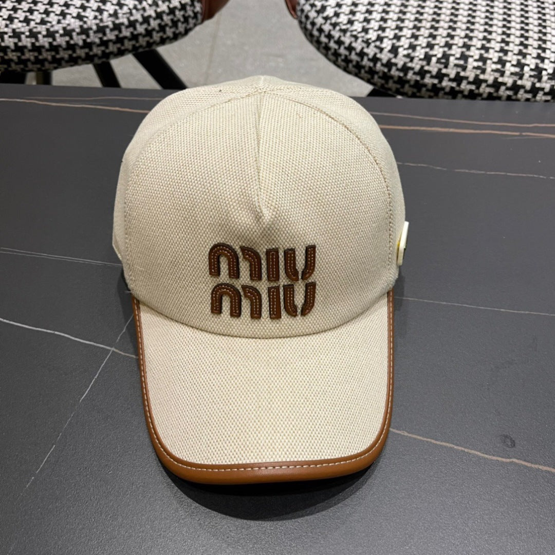 MM BASEBALL CAP IN LIGHT BEIGE FABRIC AND CALFSKIN