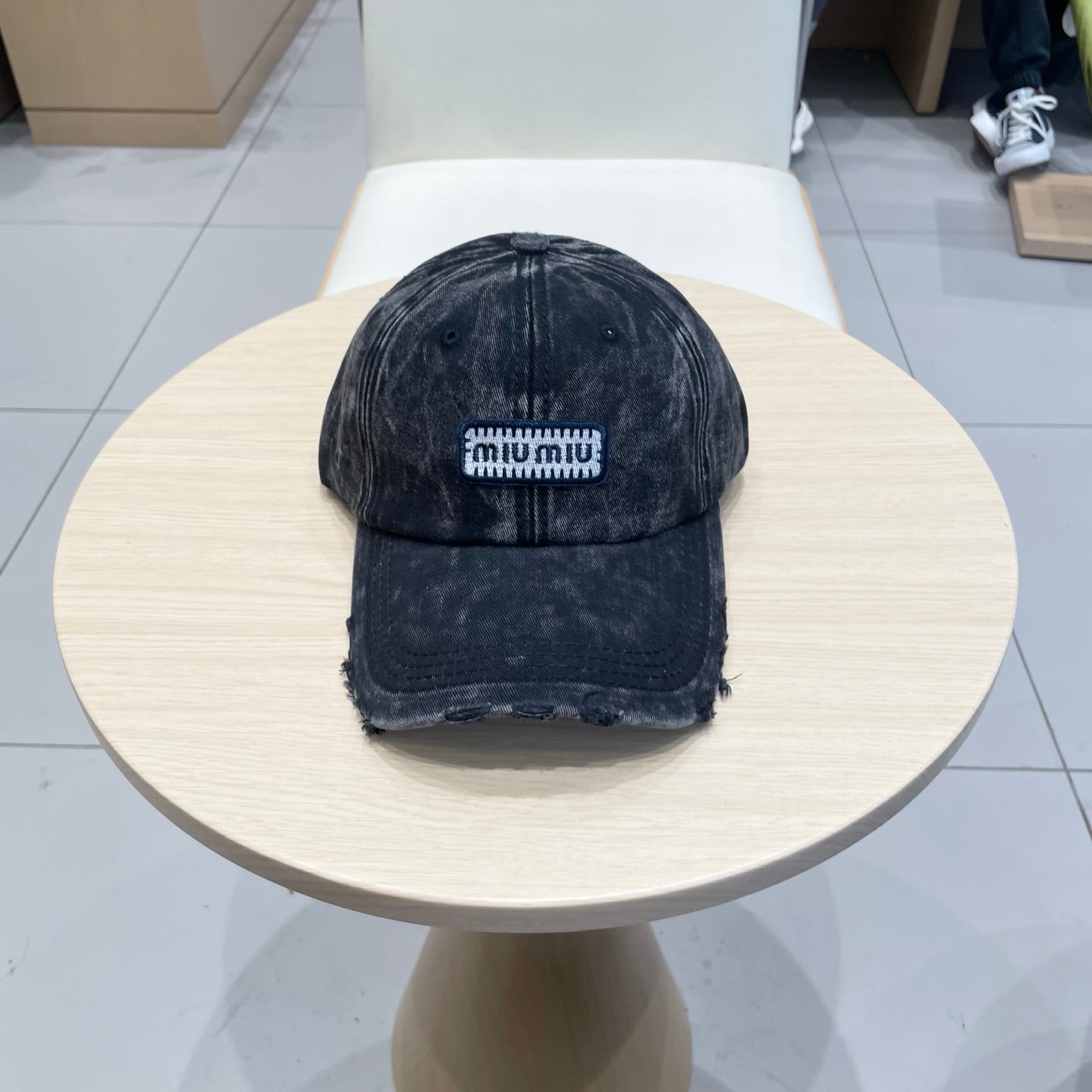 MM DISTRESSED FABRIC BASEBALL CAP IN BLACK WITH EMBROIDERED LOGO