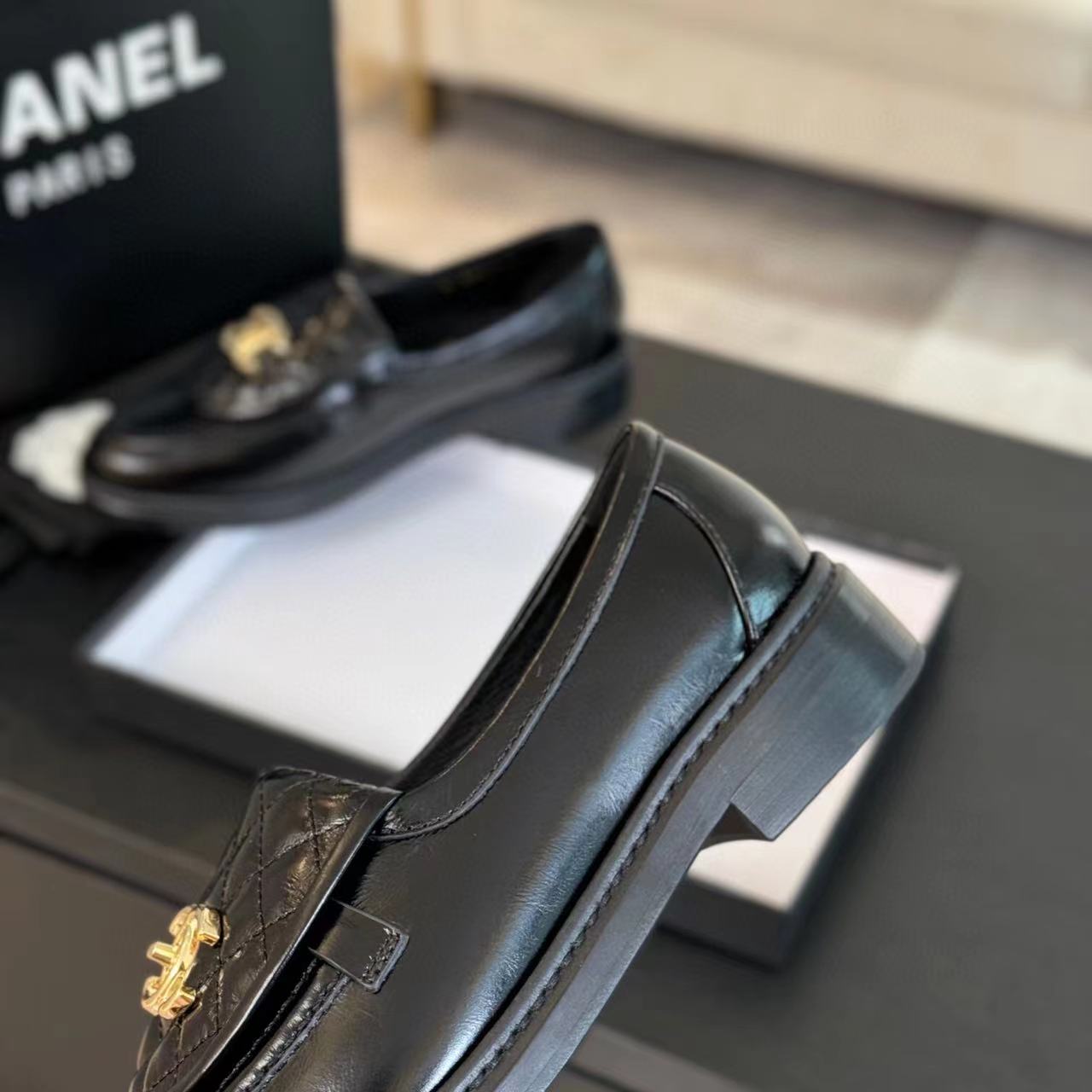 MOCCASINS BLACK QUILTED LAMBSKIN GOLD HARDWARE