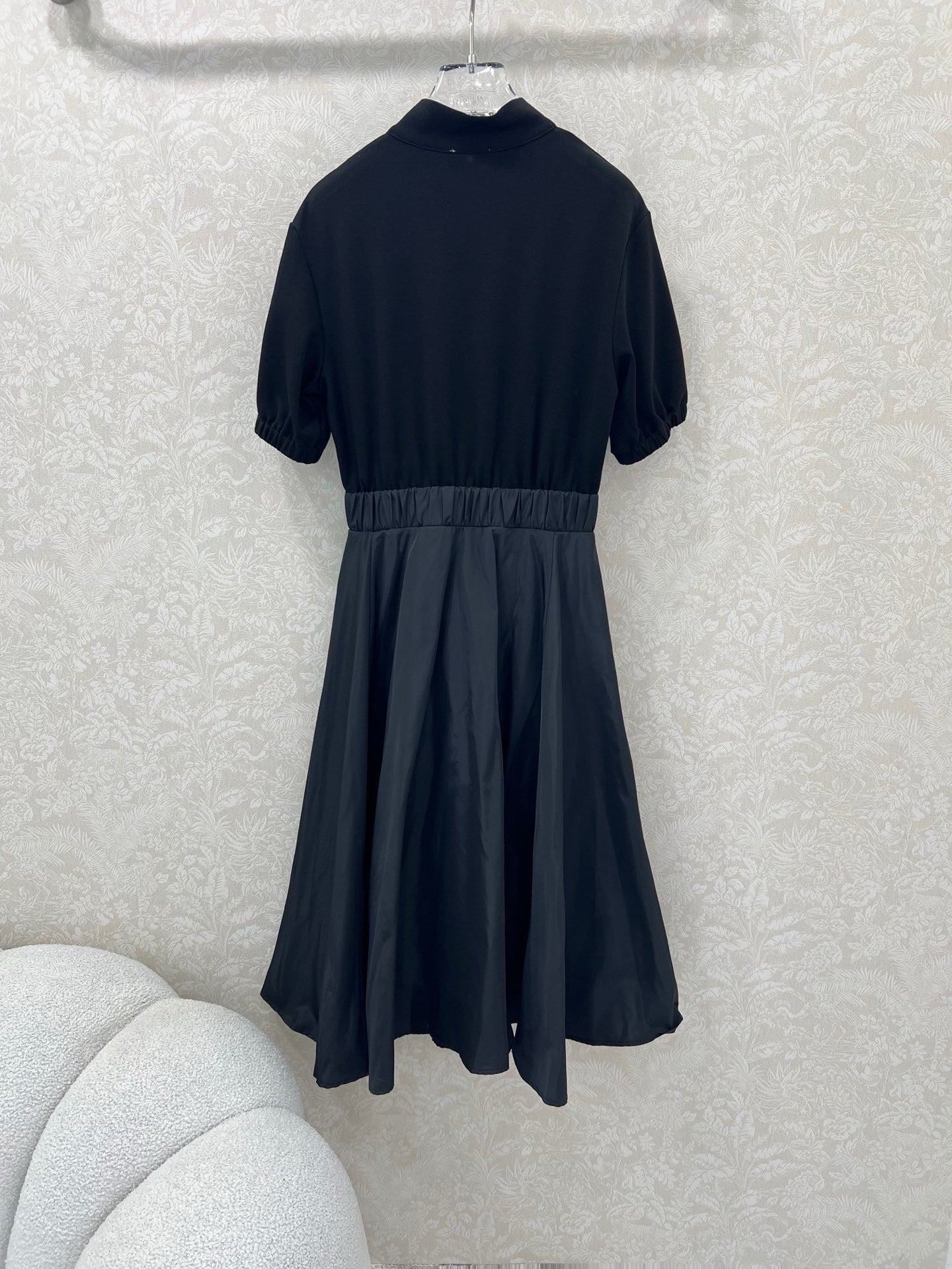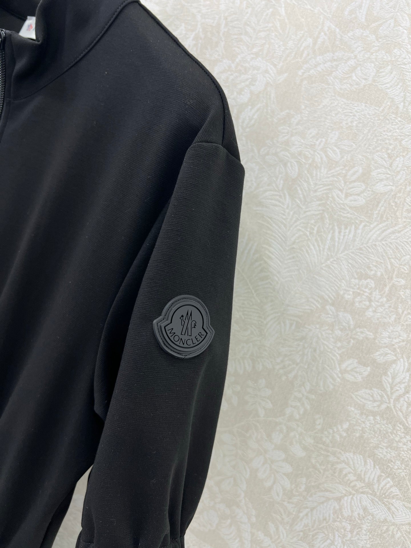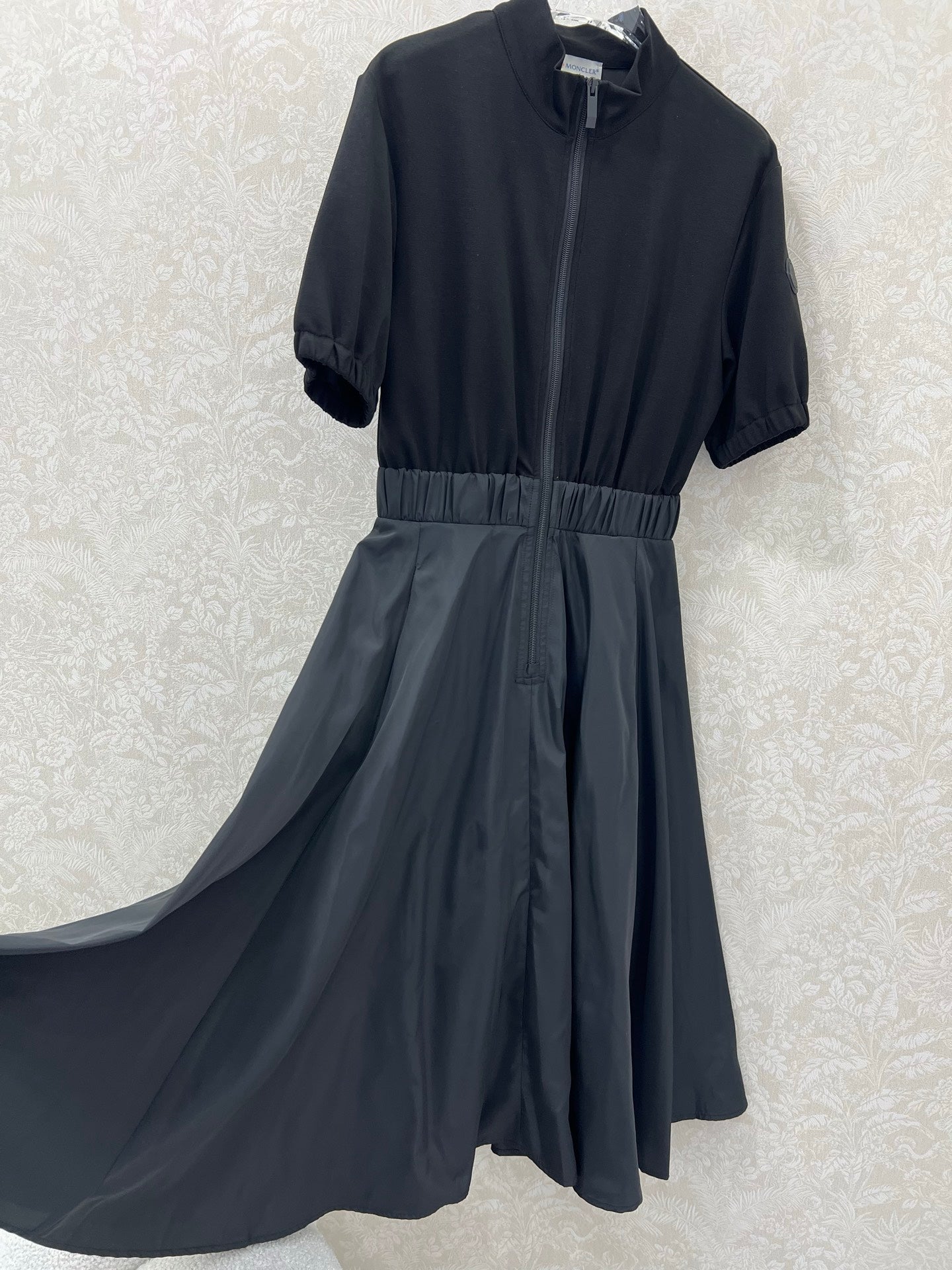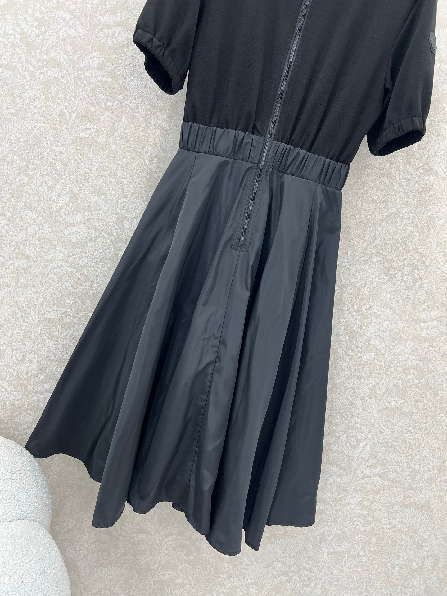 MONCLER SHORT-SLEEVE LONG DRESS WITH STAND COLLAR 275248