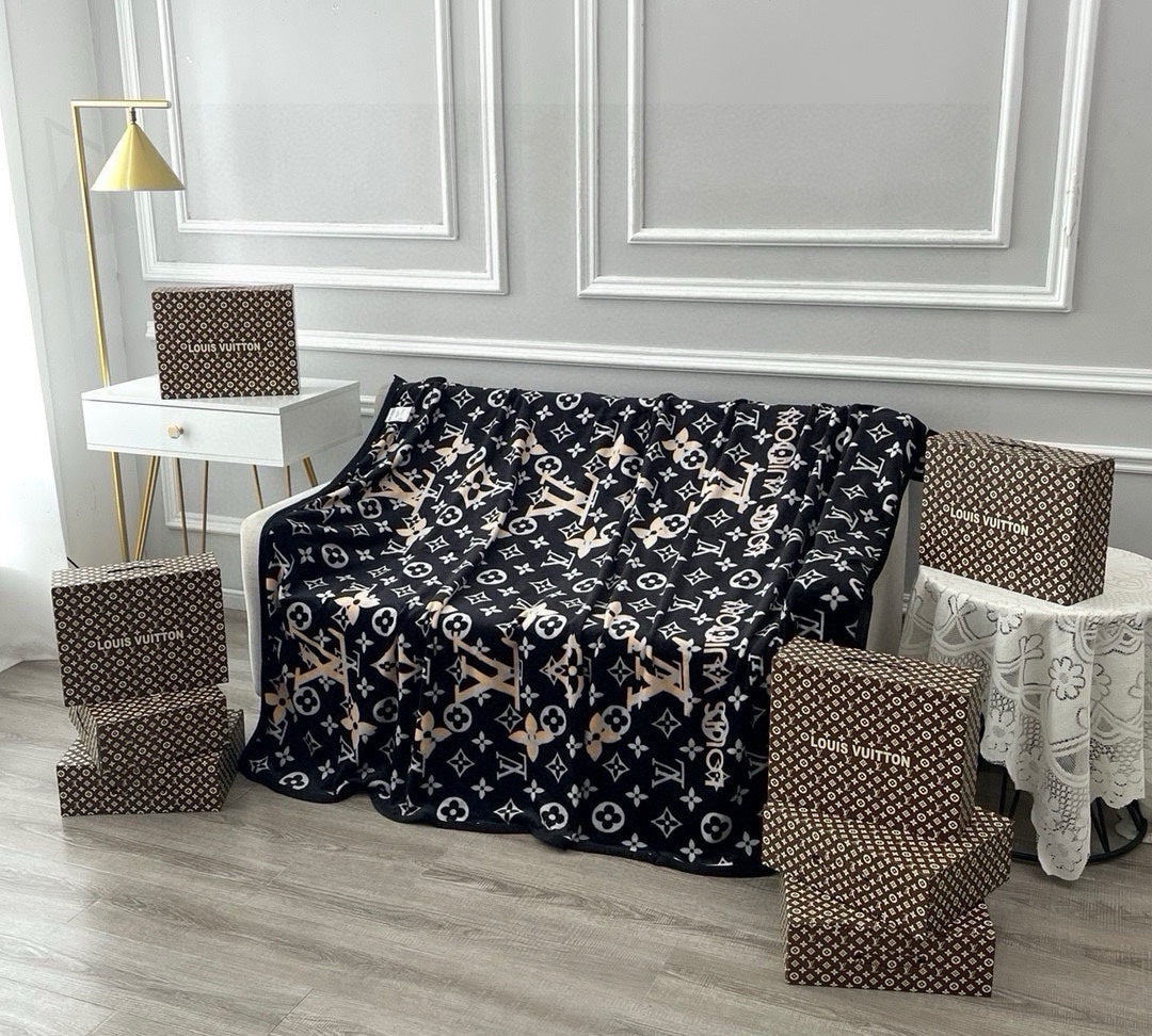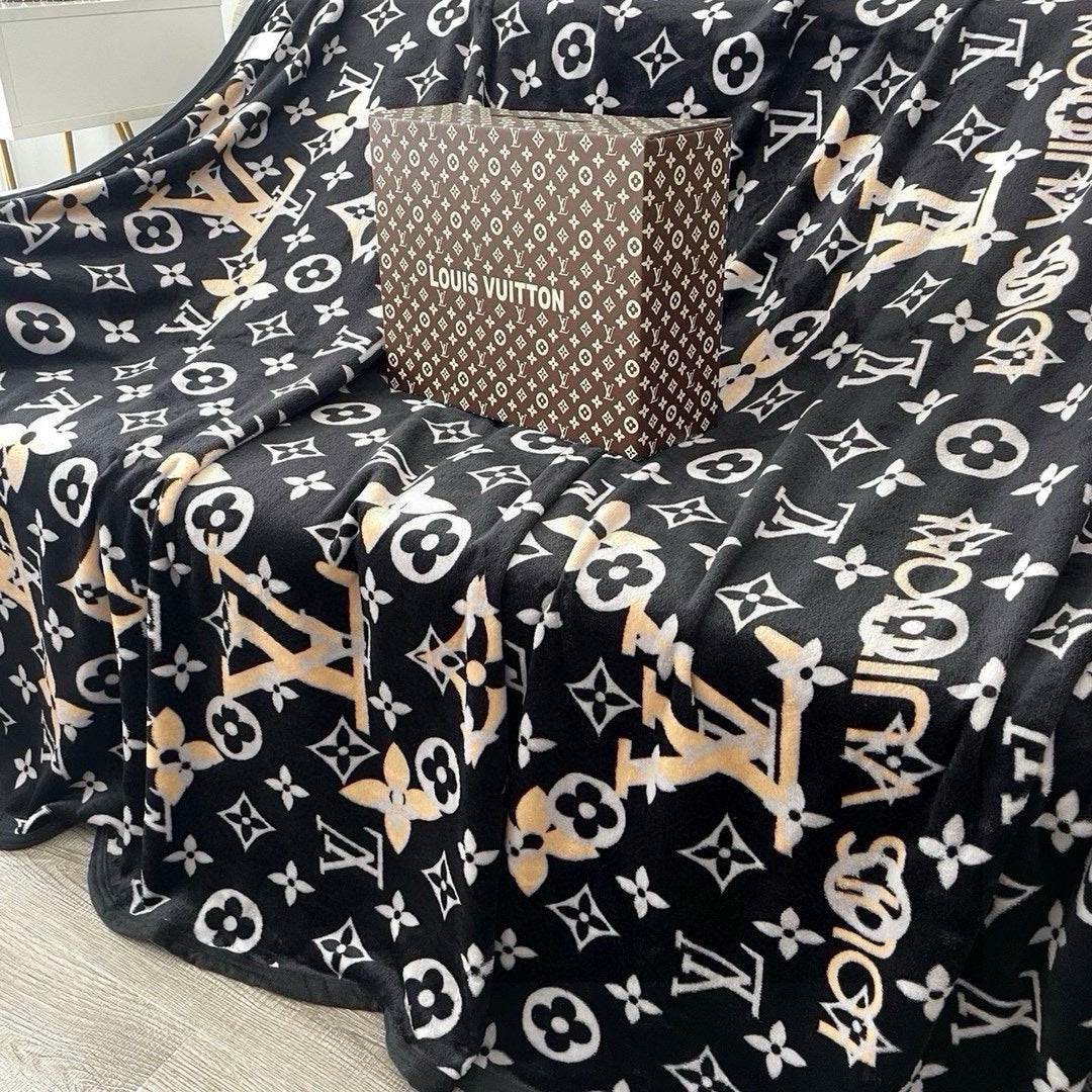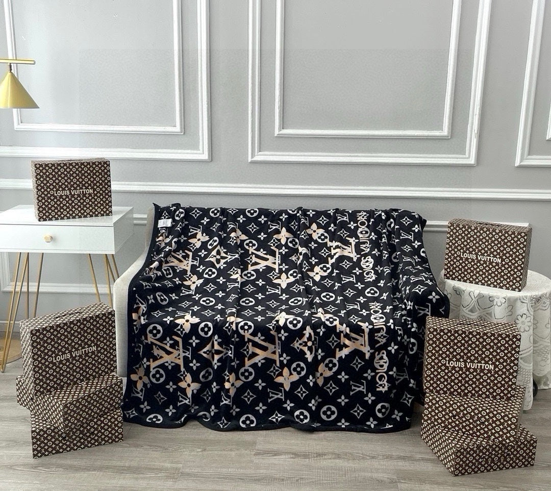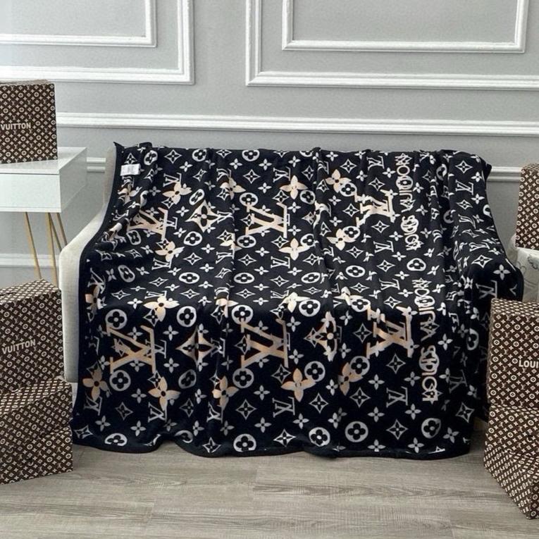 MONOGRAM BLANKET IN BLACK LAMB FUR 418573