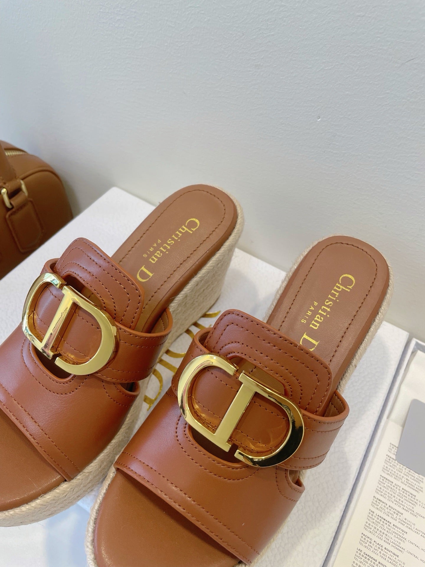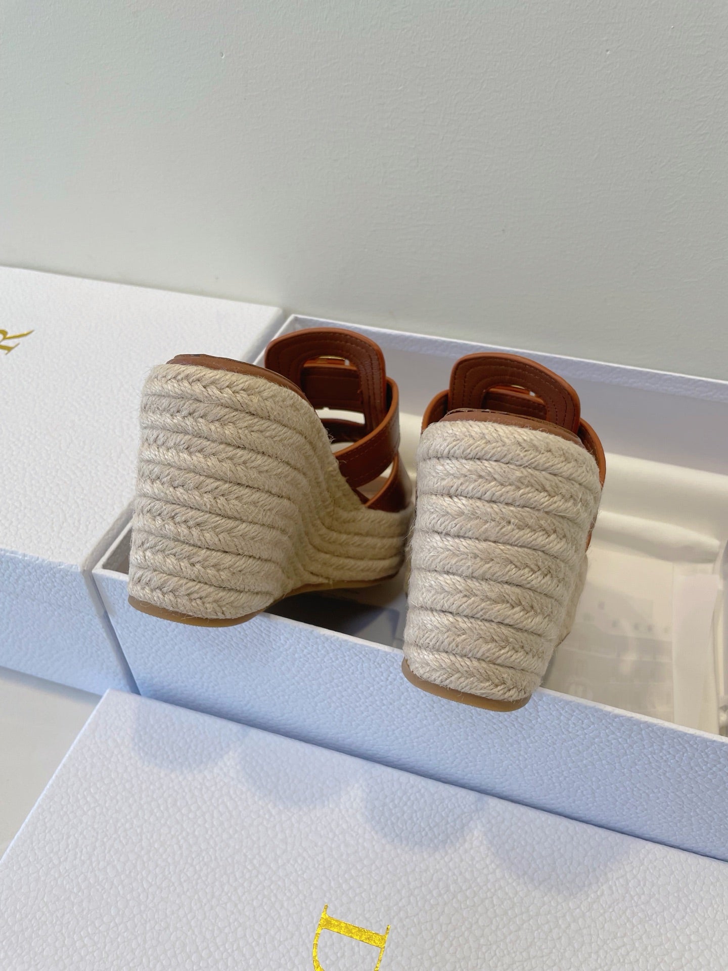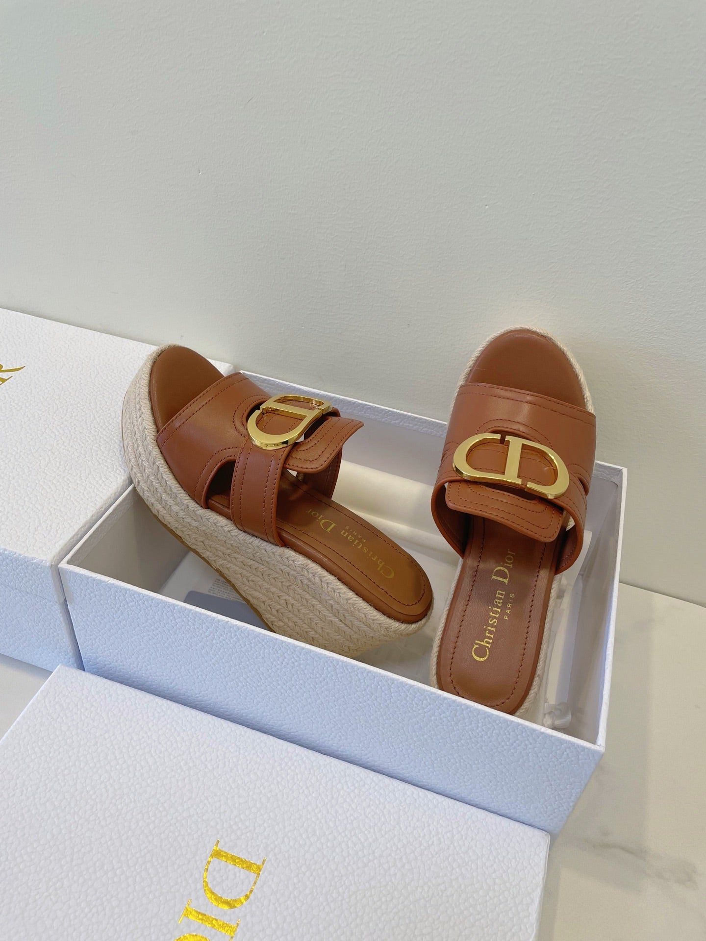 MONTAIGNE WEDGE SLIDE 95MM IN BROWN CALFSKIN