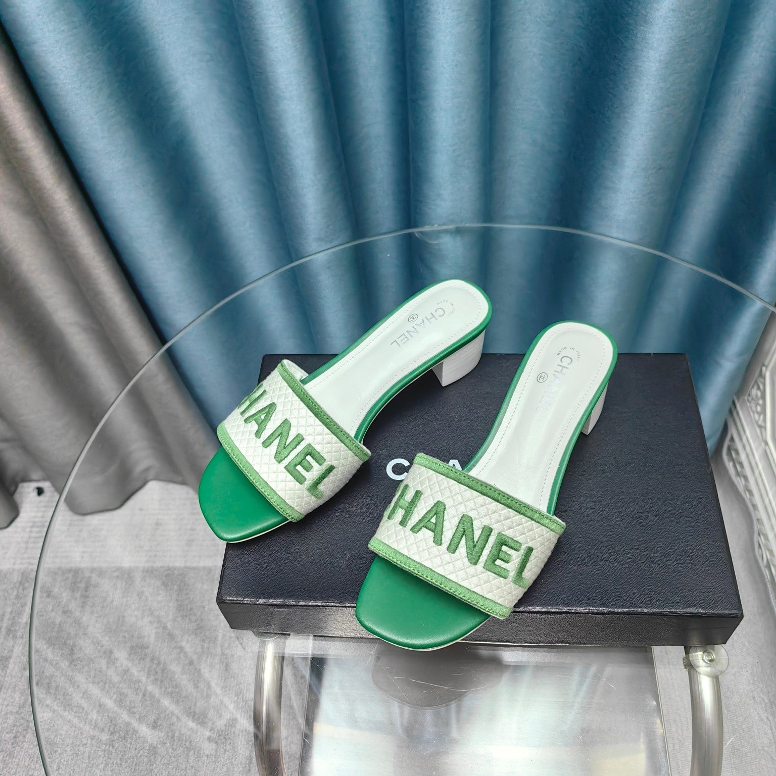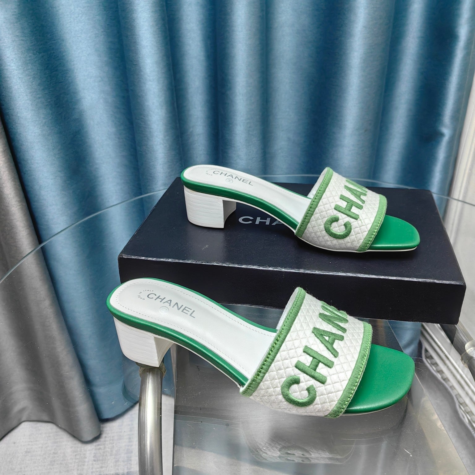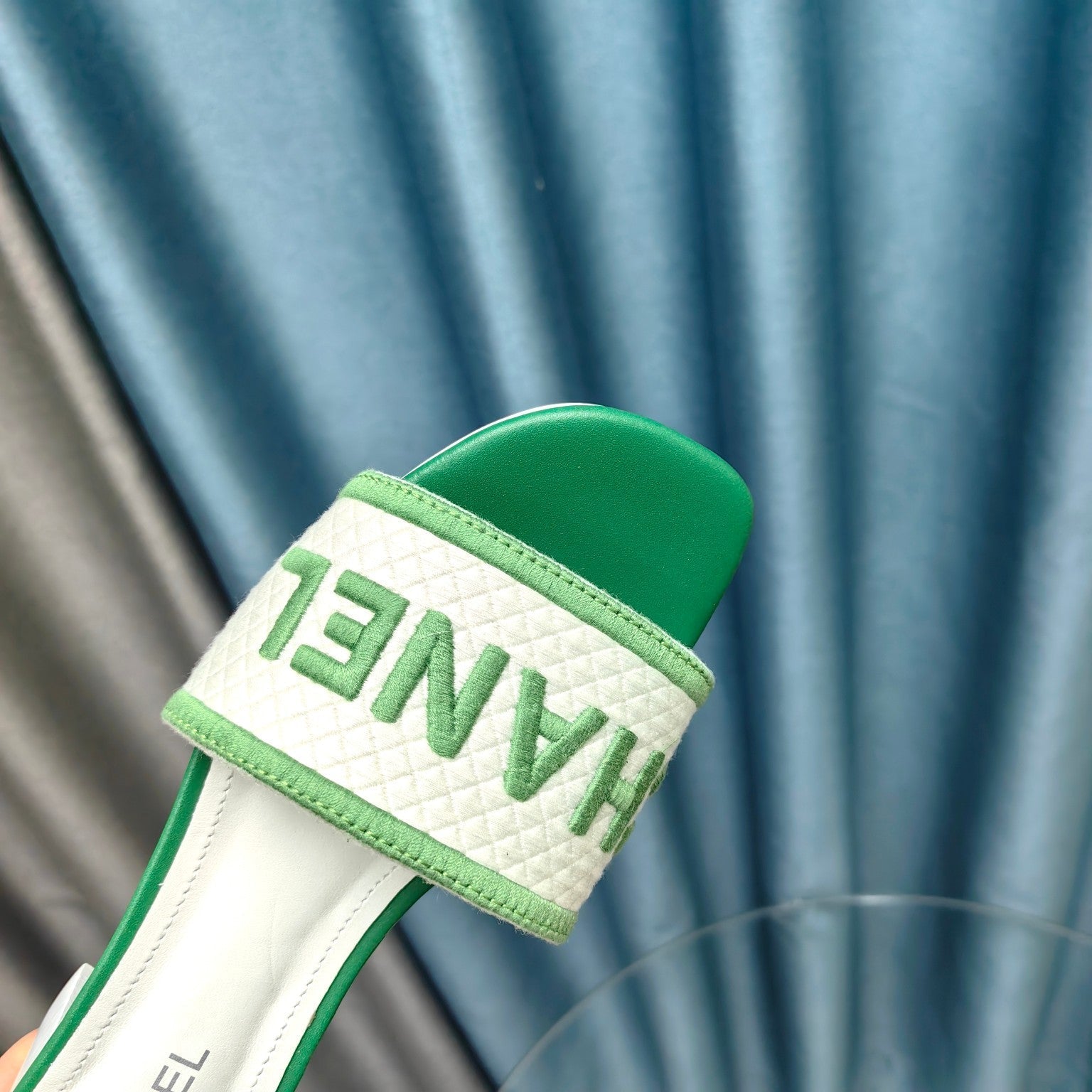 MULE SANDAL 45 WHITE MIX LIGHT GREEN FABRIC EMBROIDERY