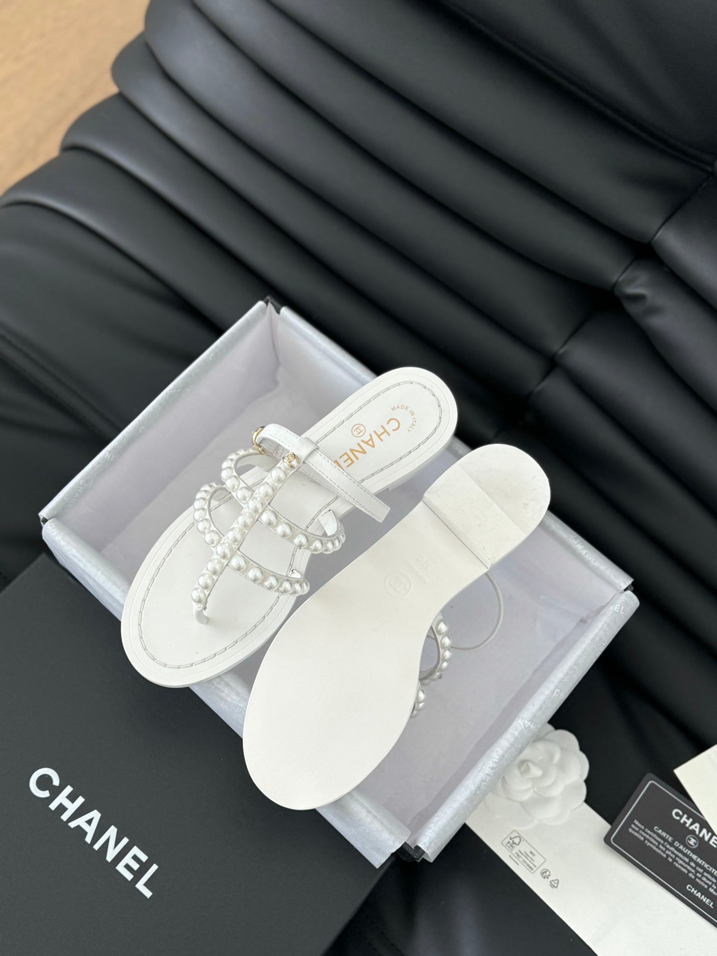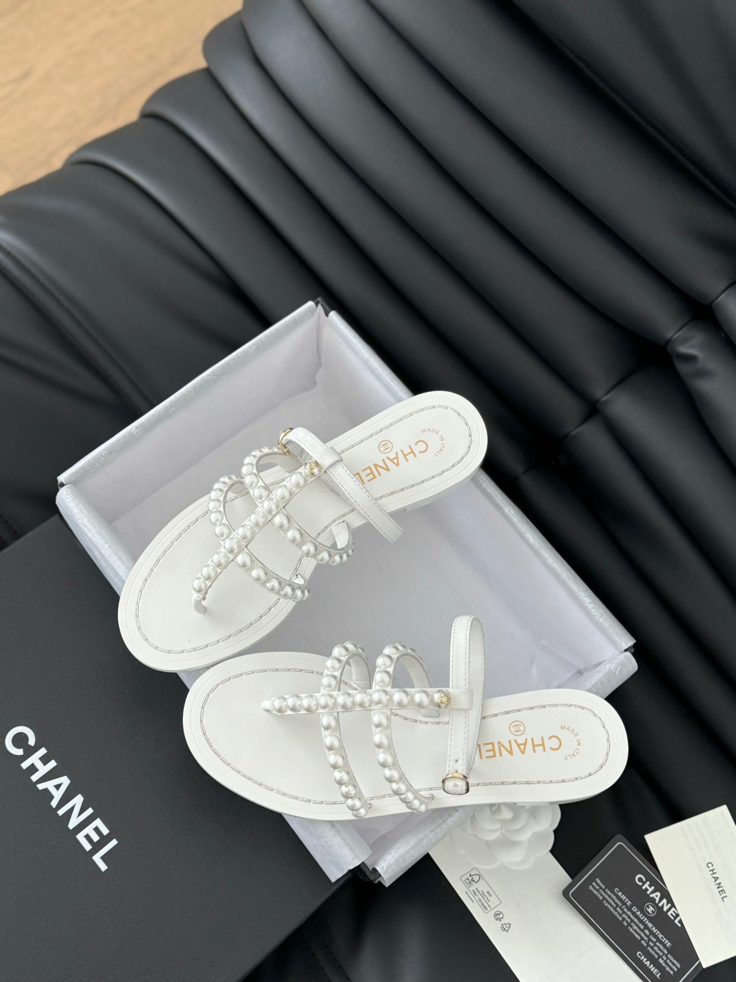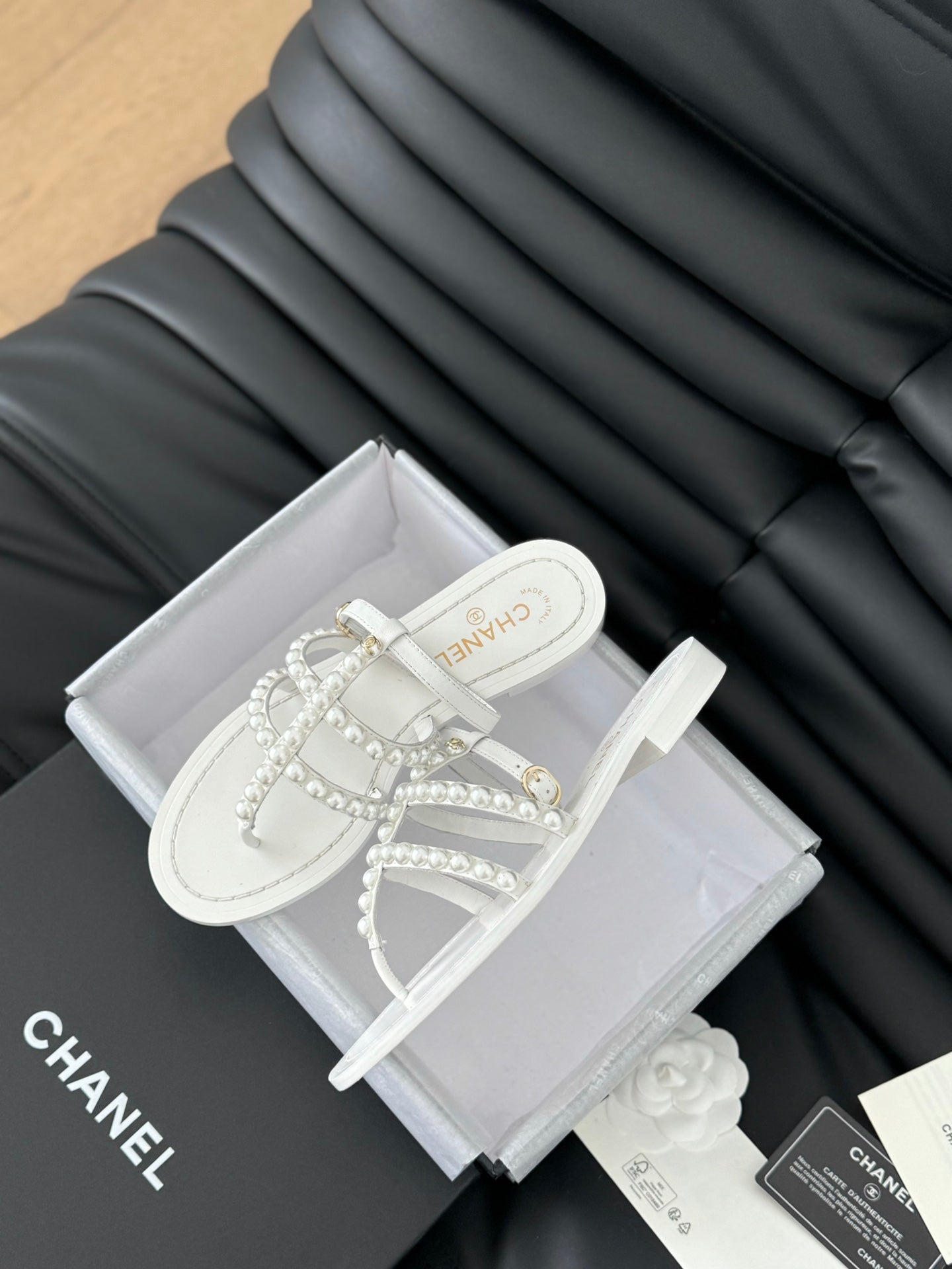 MULE SLIPPERS WITH PEARL CHAIN IN WHITE LAMBSKIN