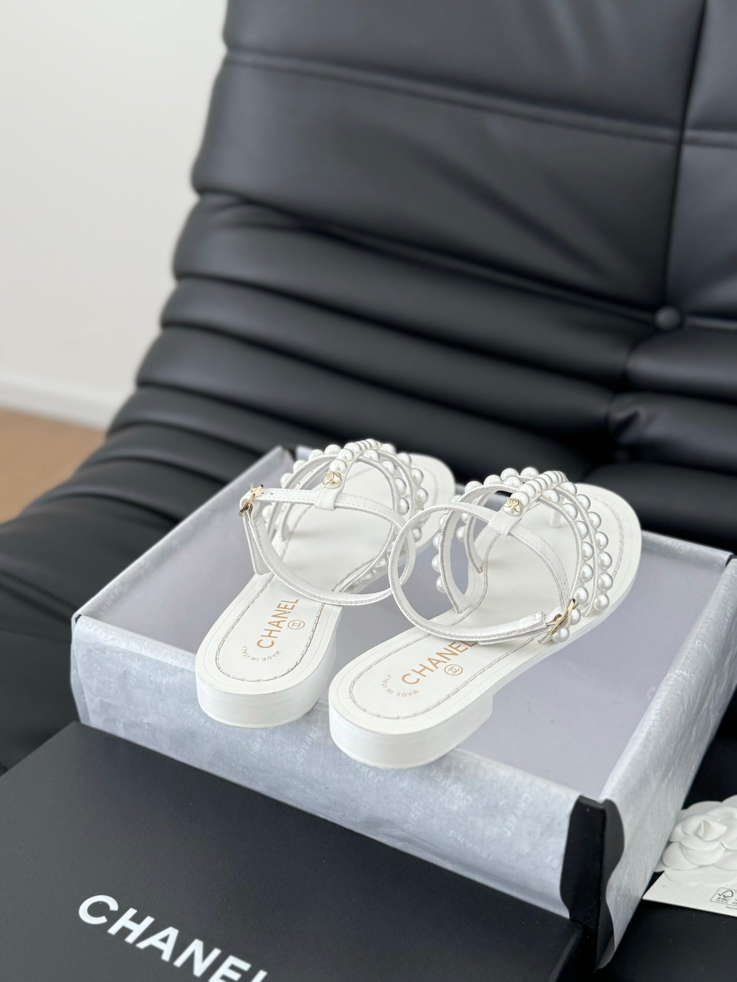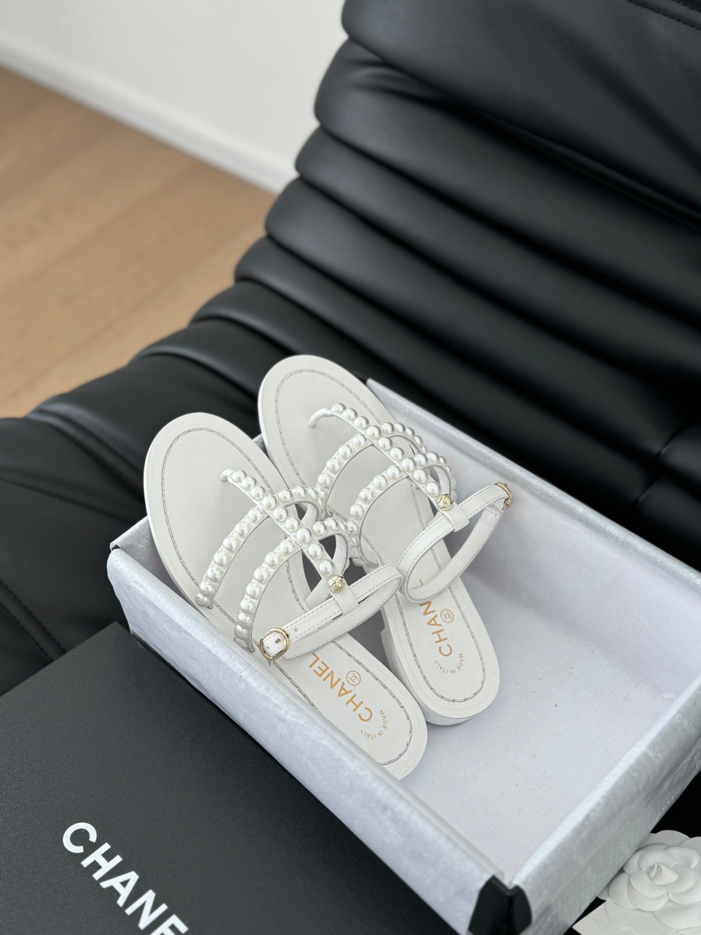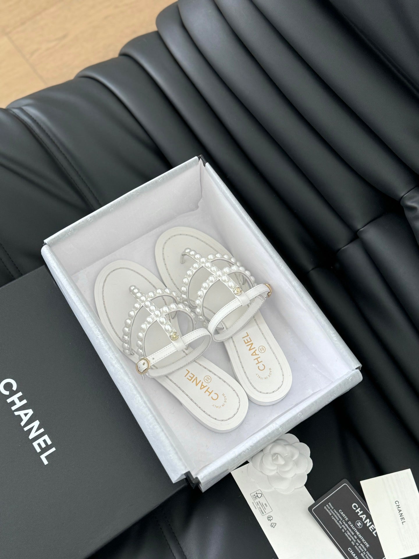 MULE SLIPPERS WITH PEARL CHAIN IN WHITE LAMBSKIN